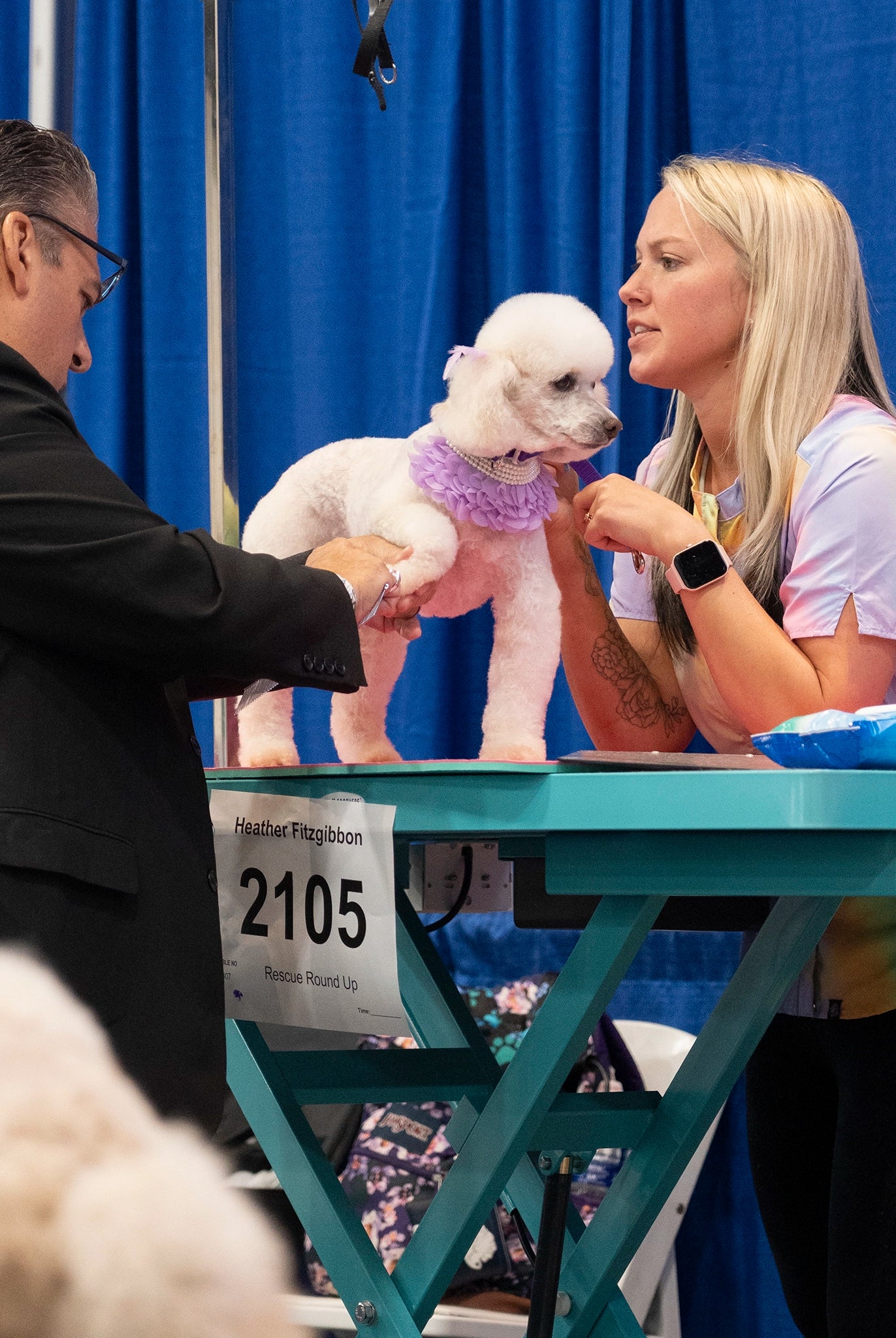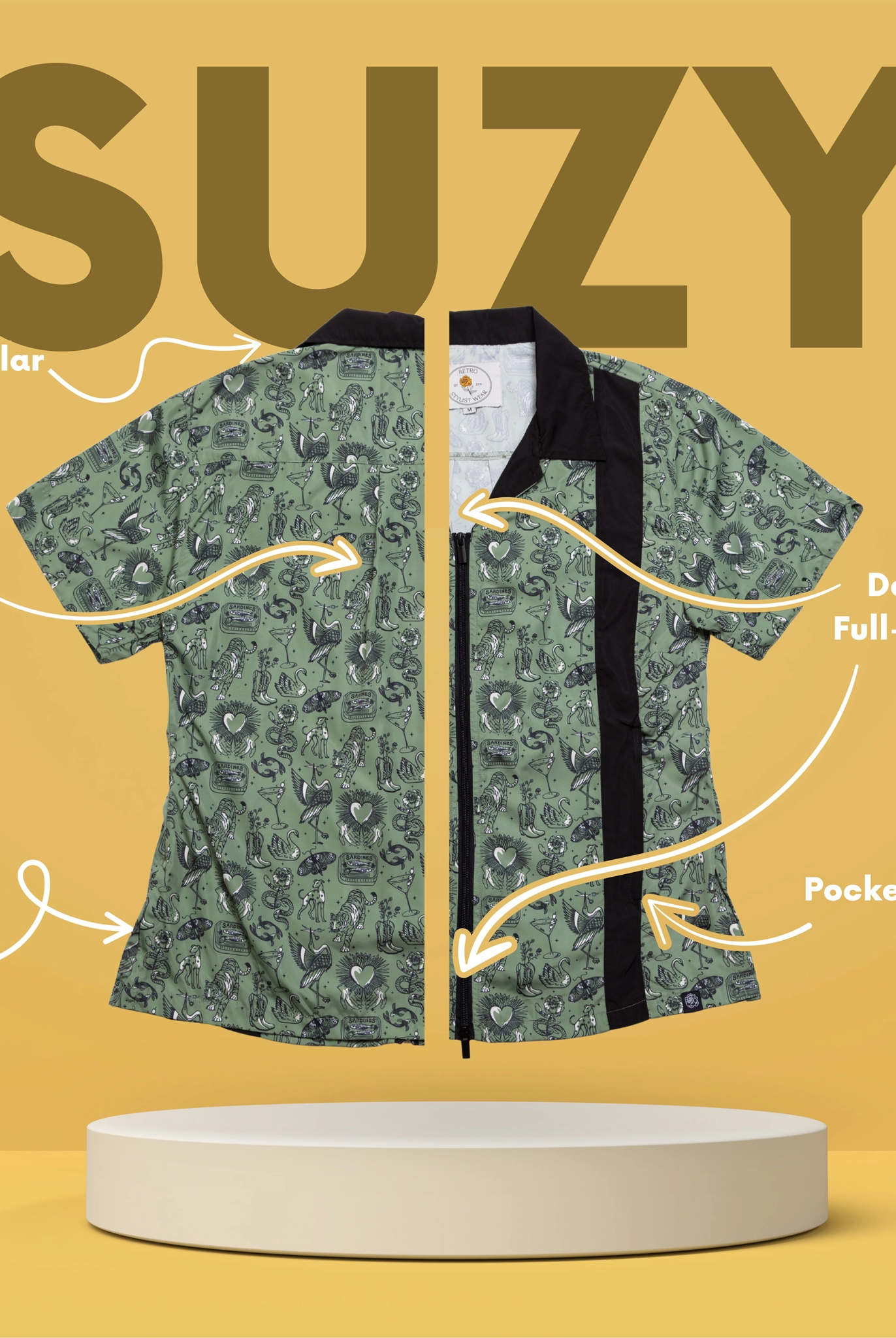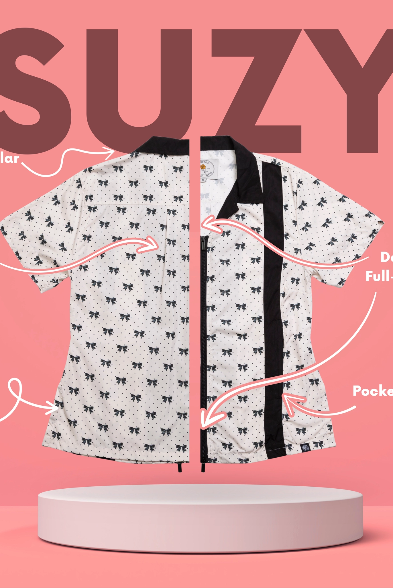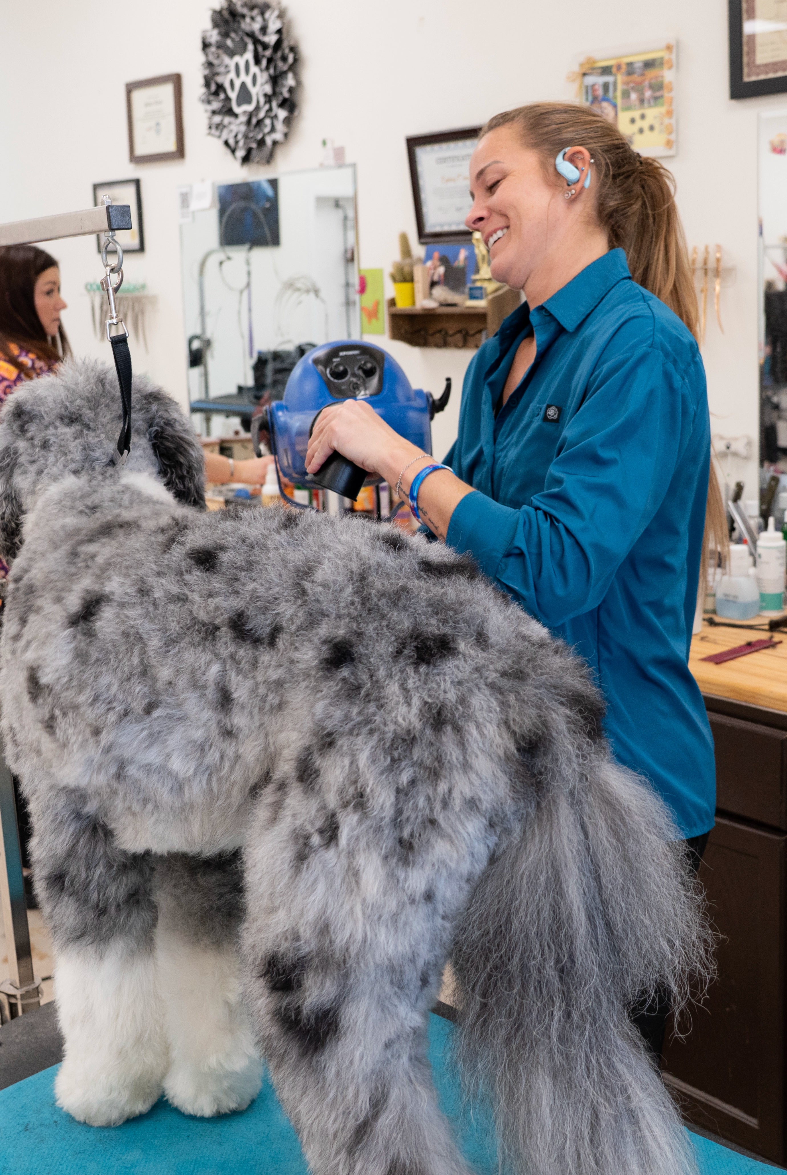 - Suzy and Charlotte: Fitted women's dog grooming smocks that are true to size. If you have a curvier figure, consider sizing up.