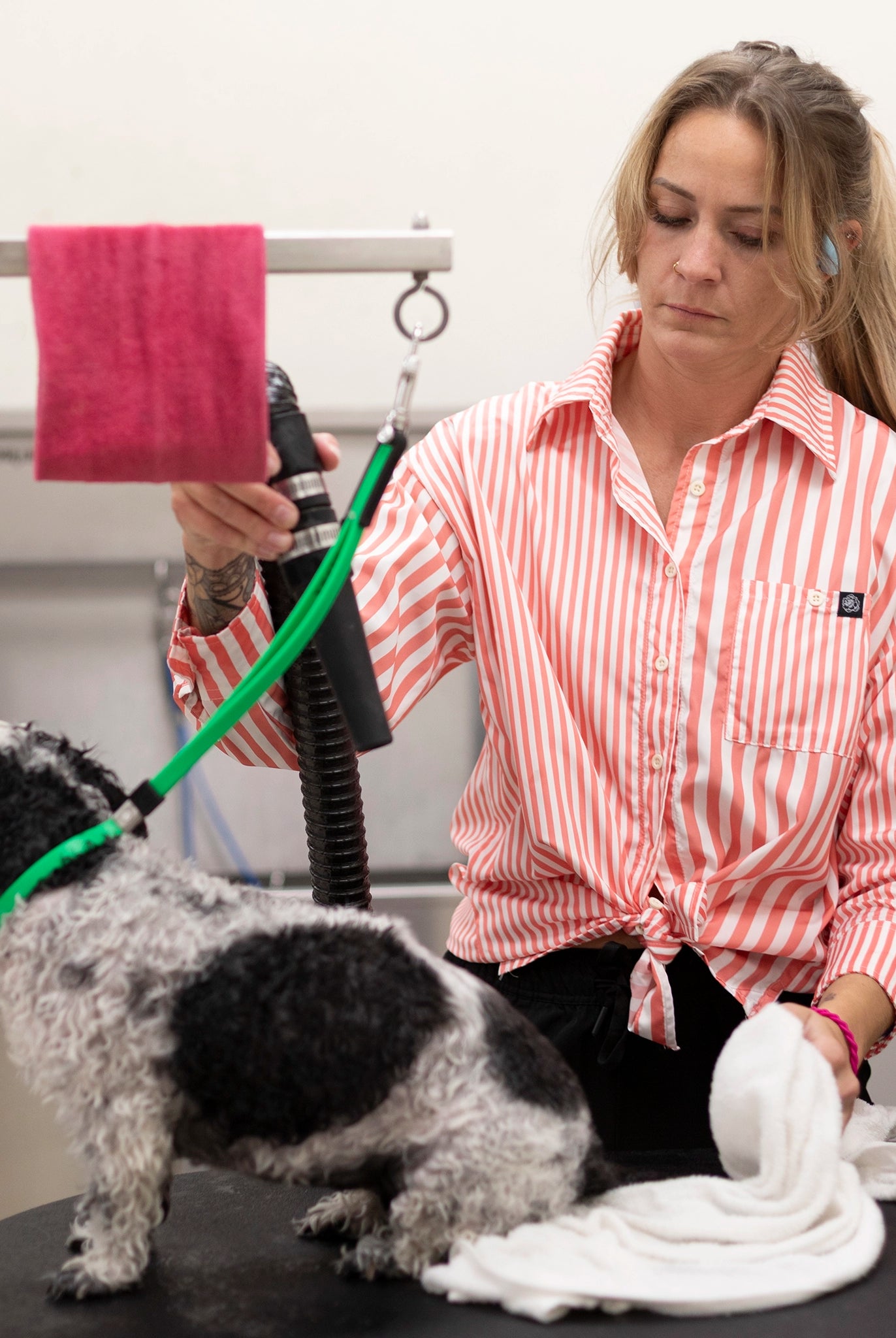 What if your grooming clothes could be your going-out clothes? Stay fresh and clean to go straight from the pet salon to your evening plans!