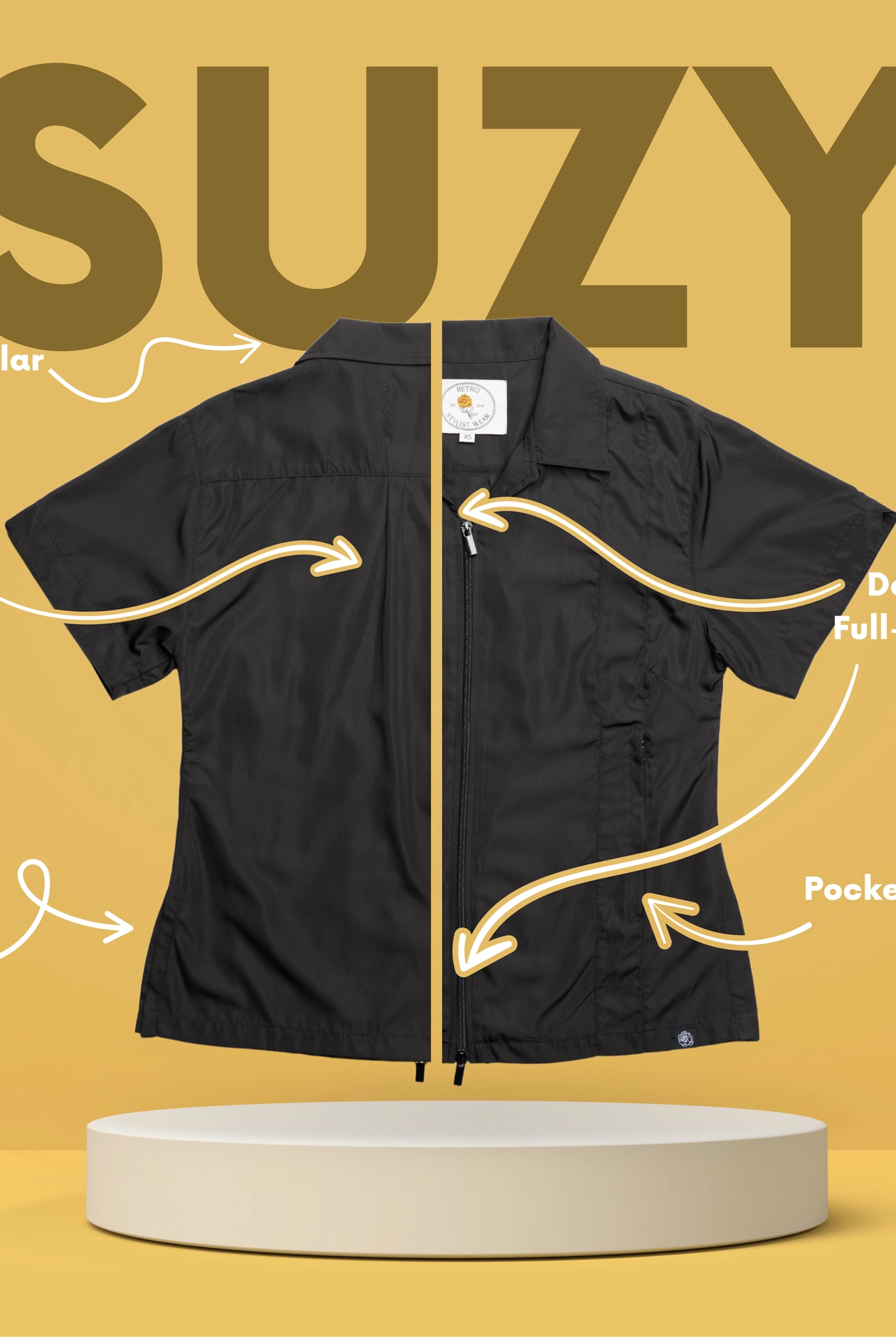 I searched everywhere for smocks that were both functional and stylish, but I couldn't find any with vertical zippered pockets, longer length, side slits, and durable zippers. So, I decided to create them! Now, after wearing my work uniforms, people constantly tell me they never realized how uncomfortable their other work clothes were. Discover what it’s like to feel and look great at work again!
