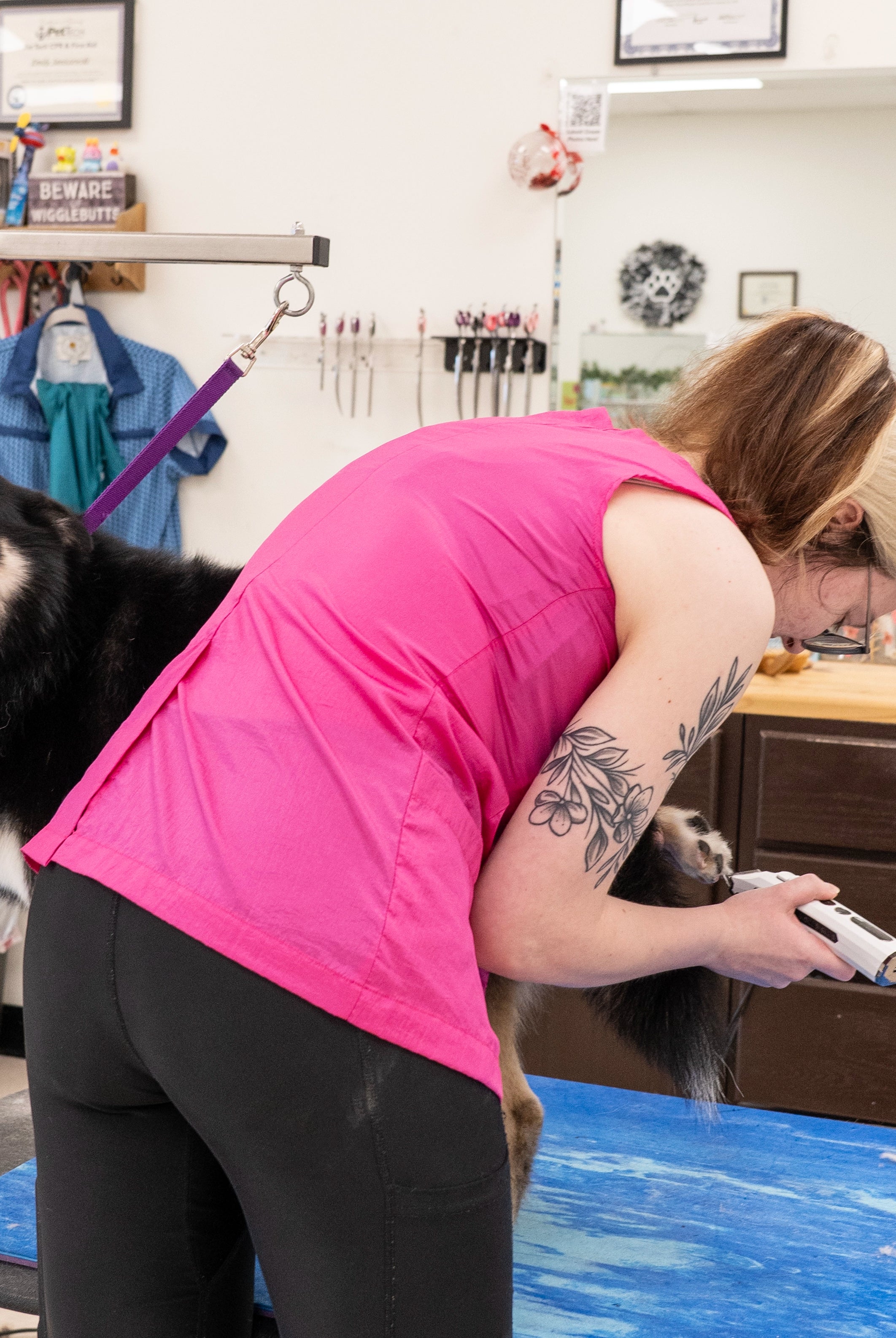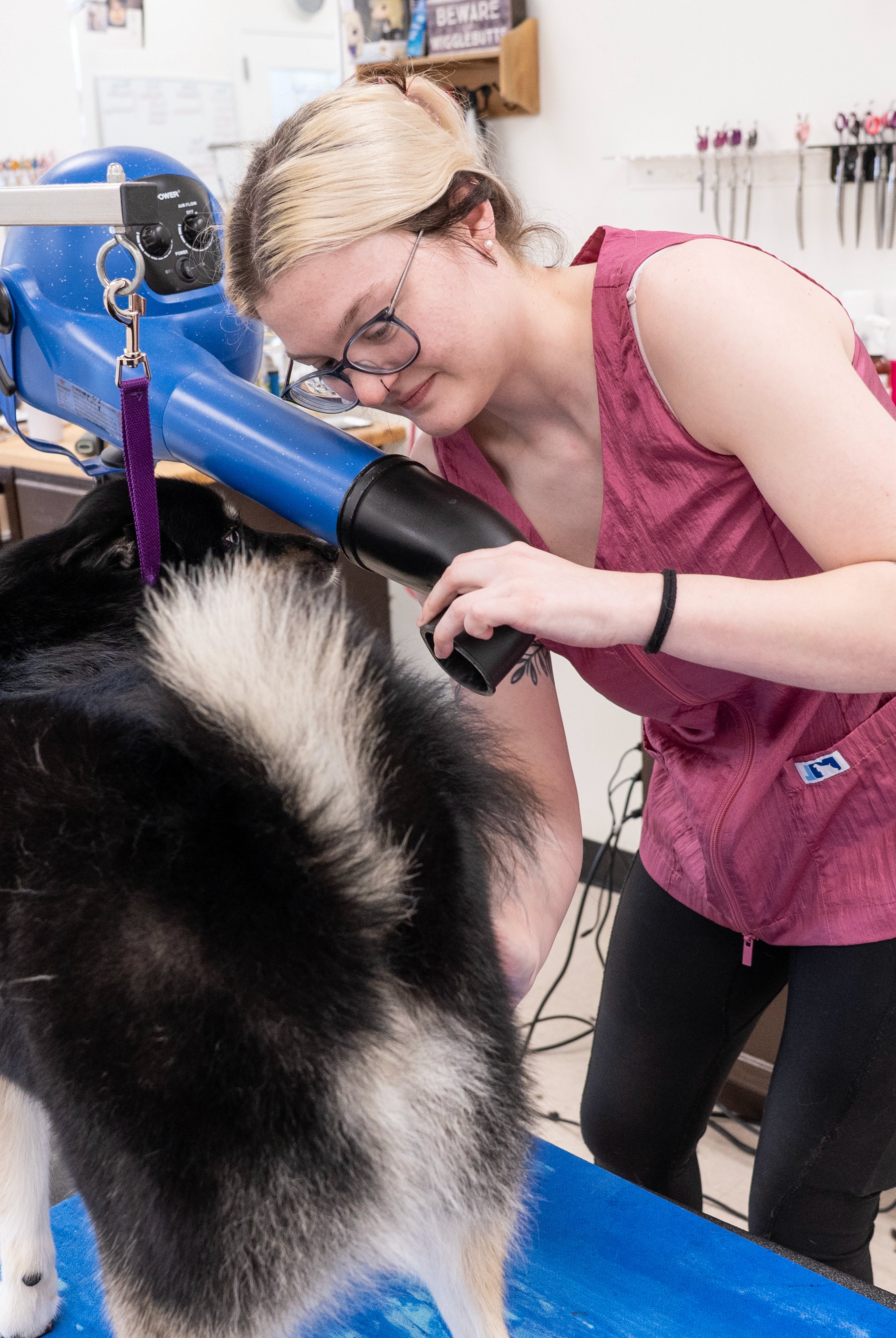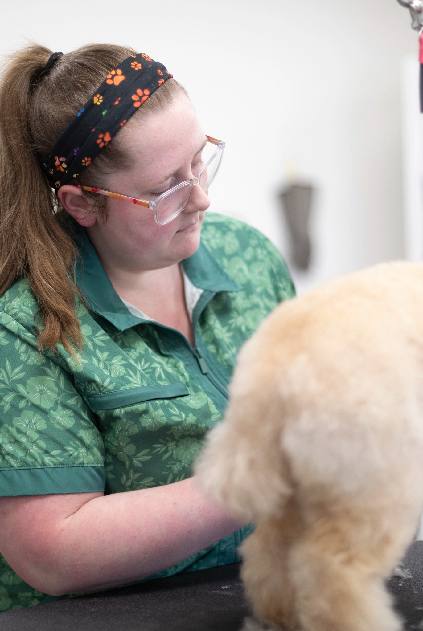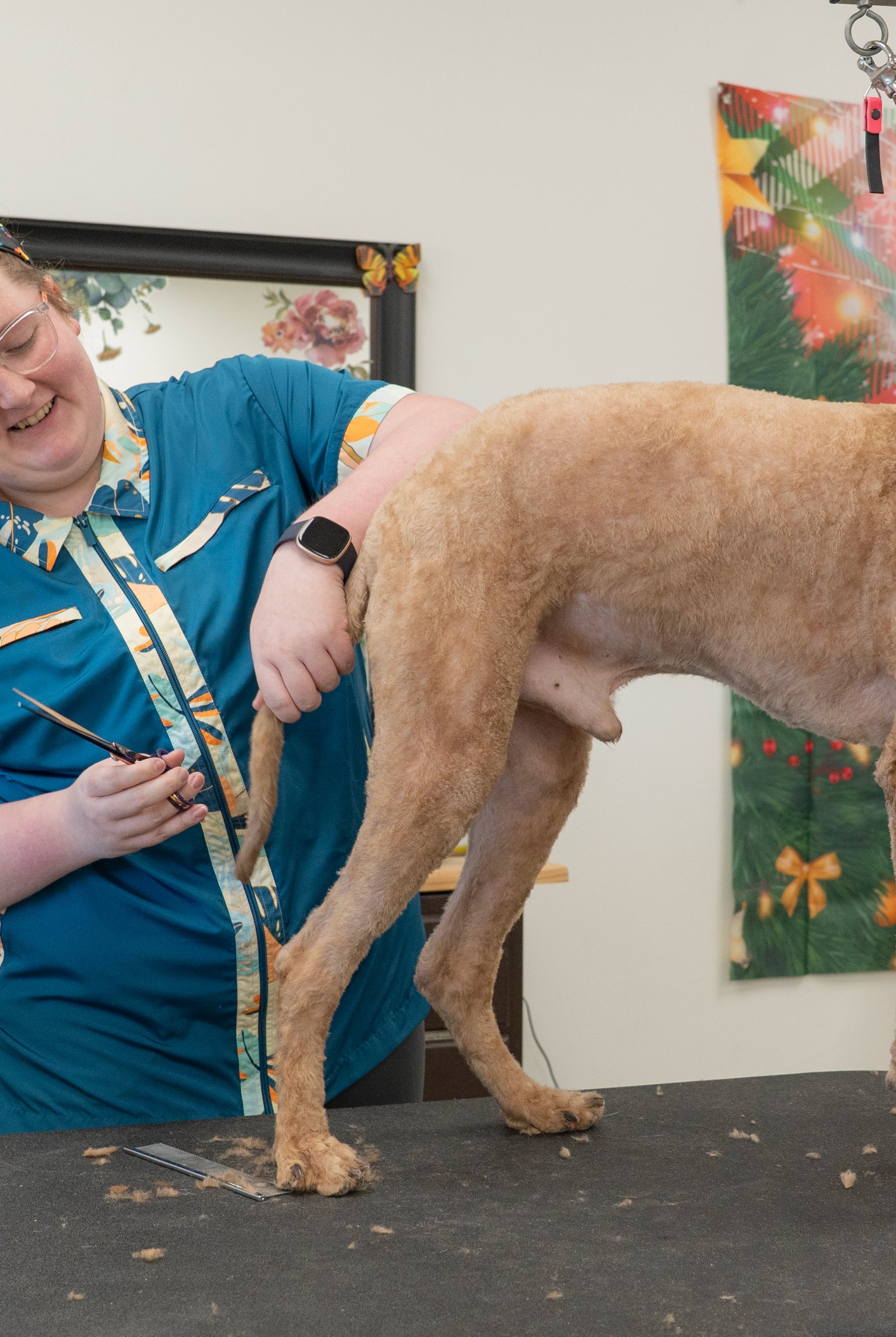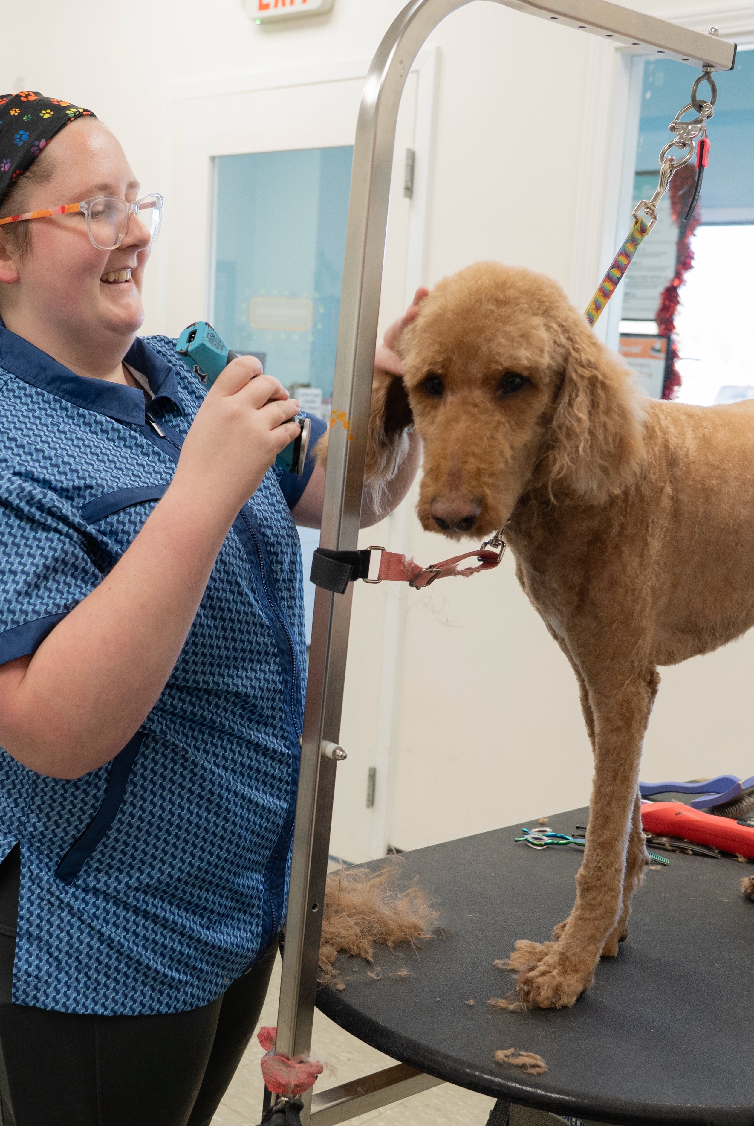 - Suzy and Charlotte: Fitted women's dog grooming smocks that are true to size. If you have a curvier figure, consider sizing up.