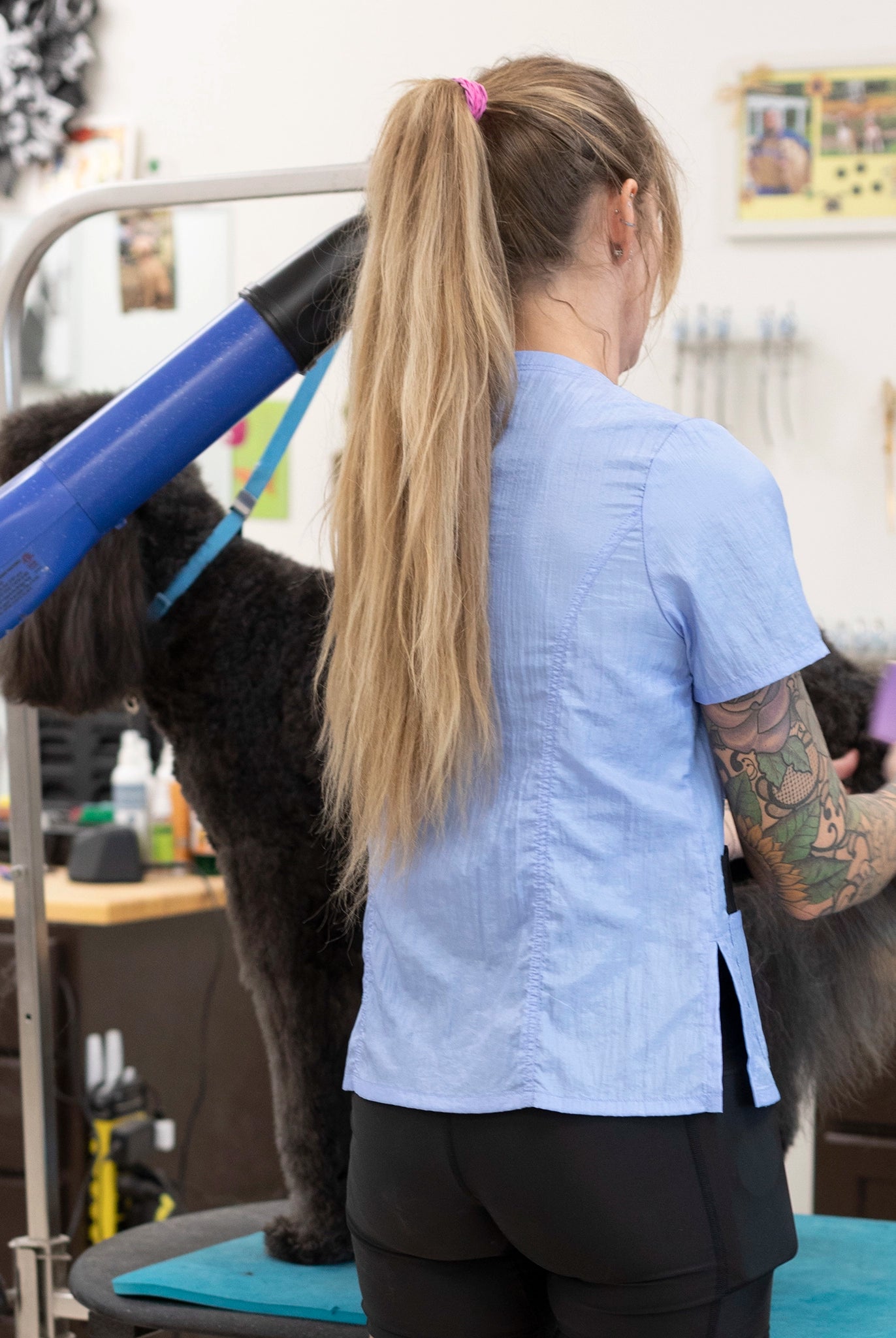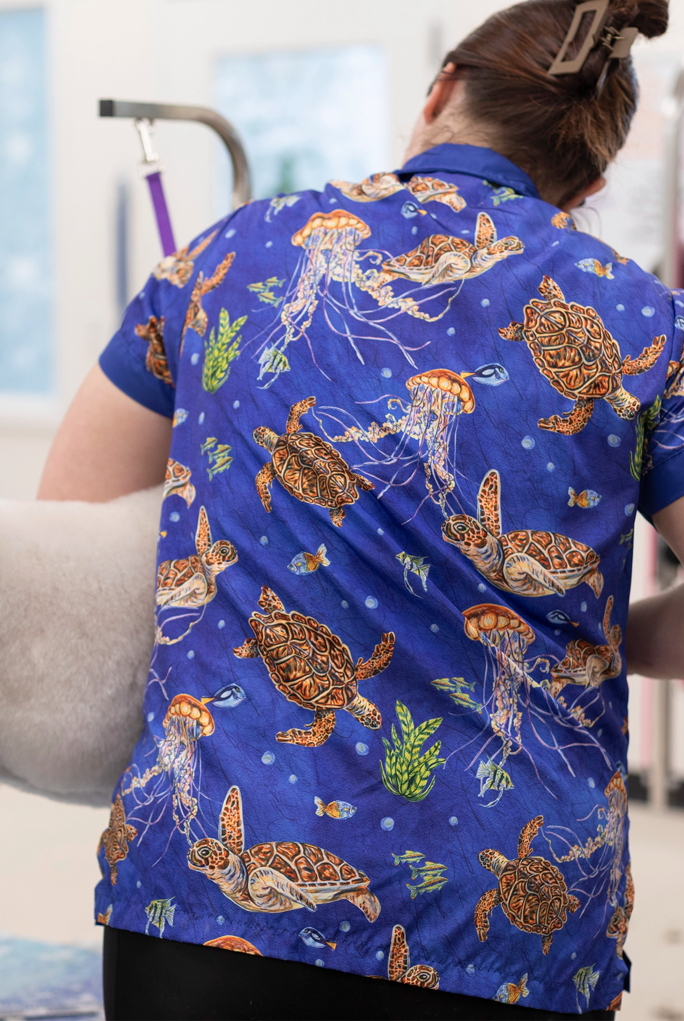 At Retro Stylist Wear, we pride ourselves on our extensive research into fabrics that are functional and practical for the daily work of pet groomers. Before we release any style, our pet groomer apparel undergoes rigorous testing in our salons to ensure it meets our high standards.