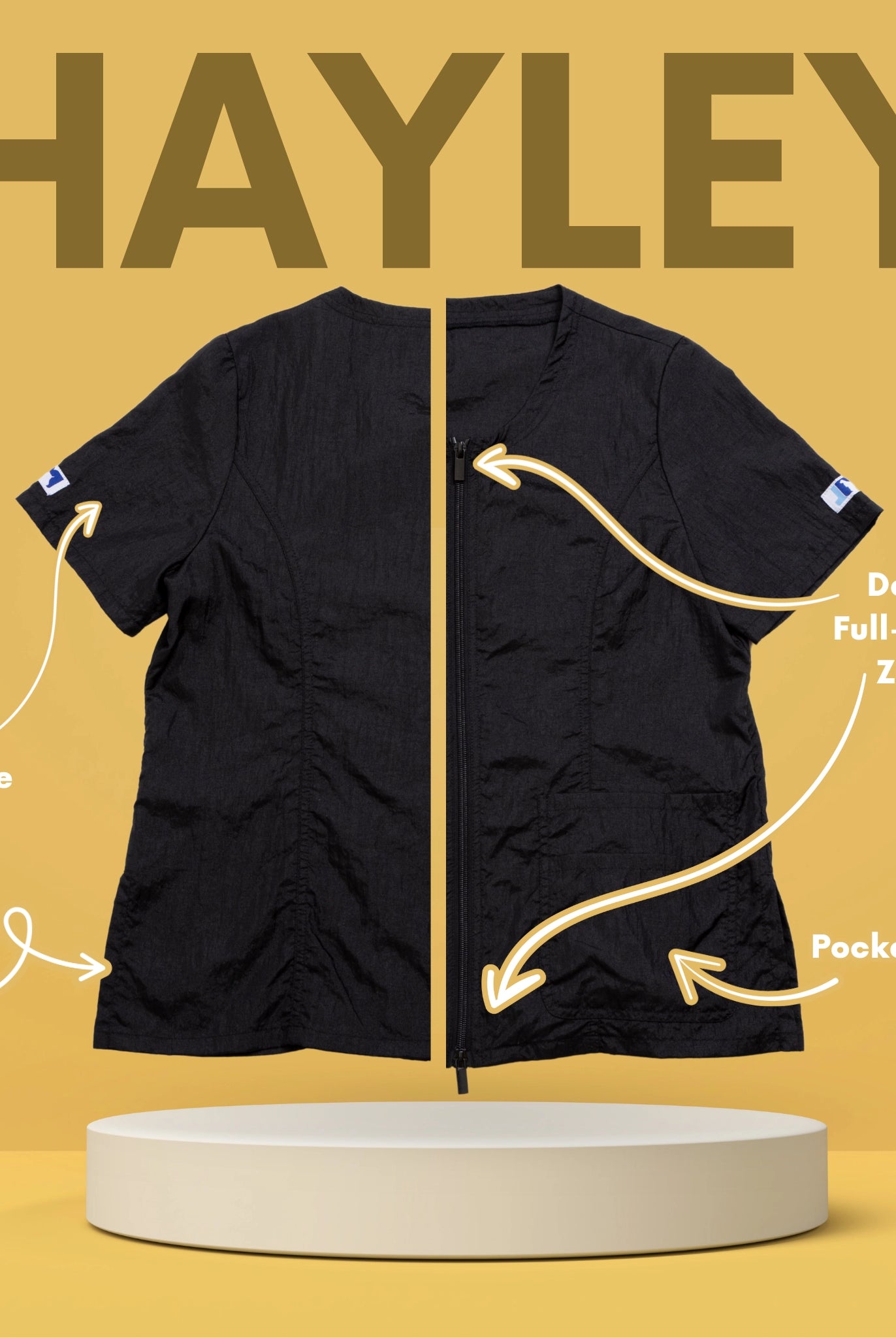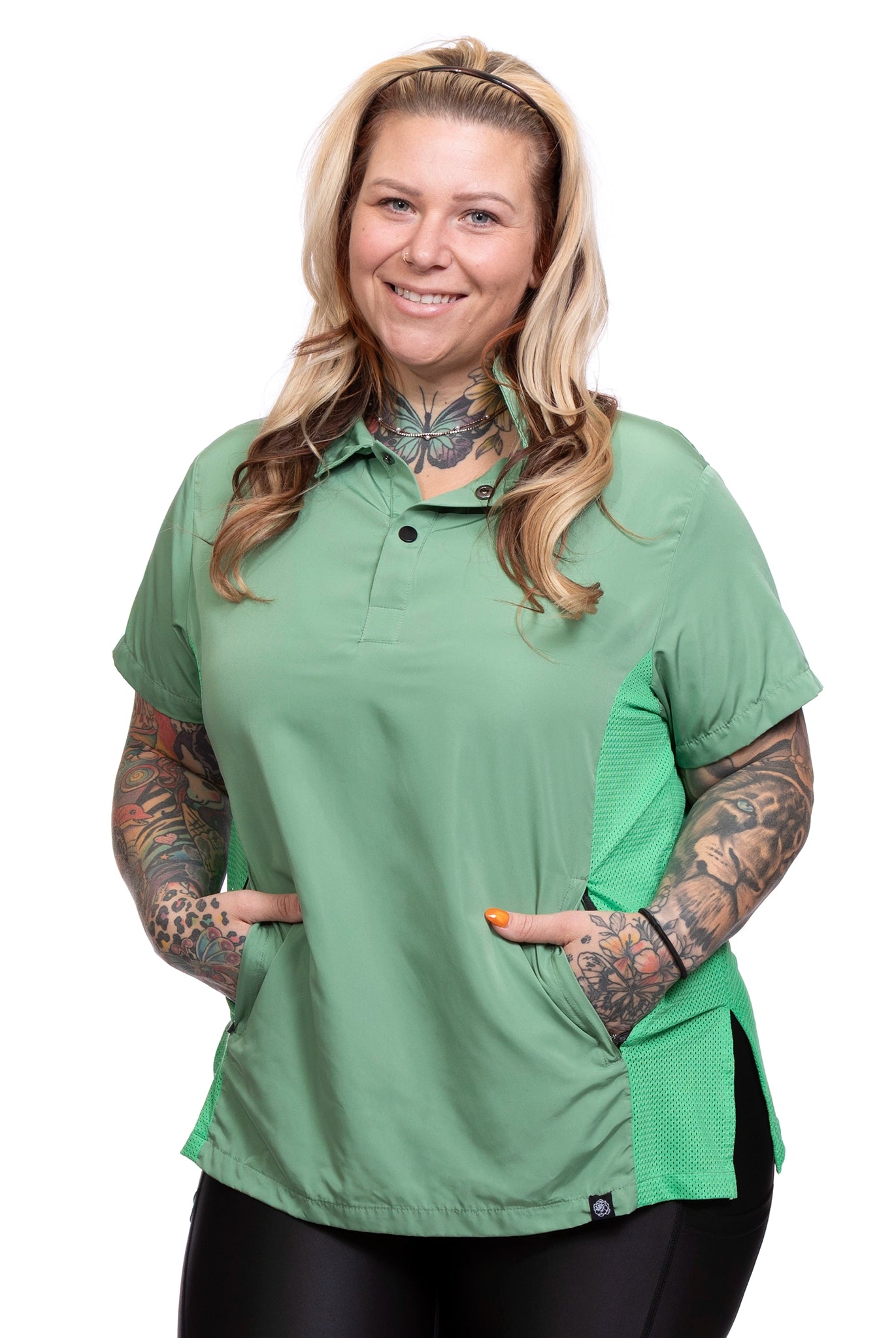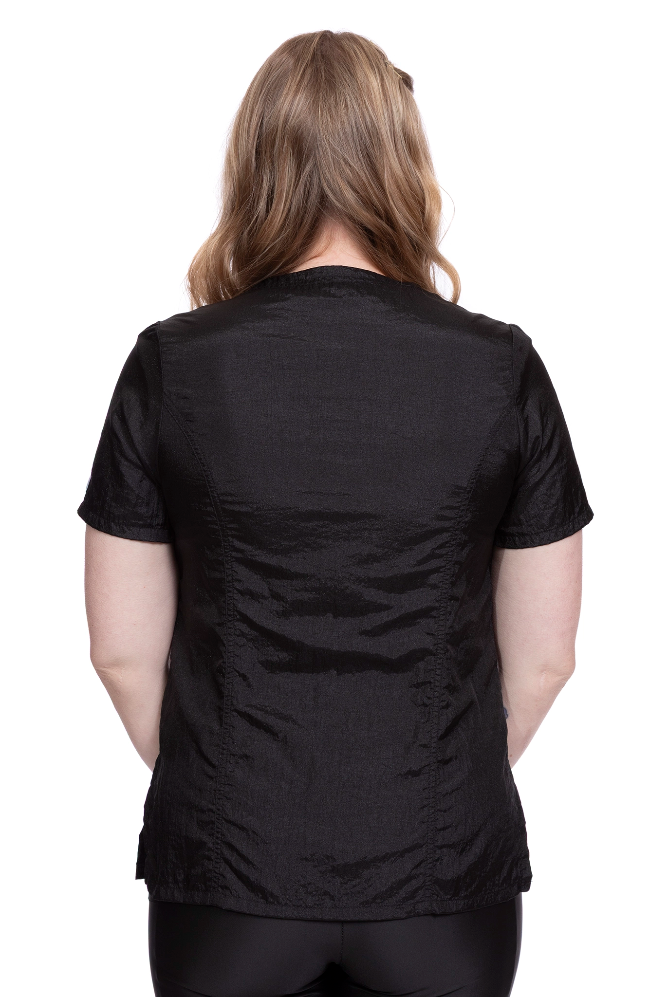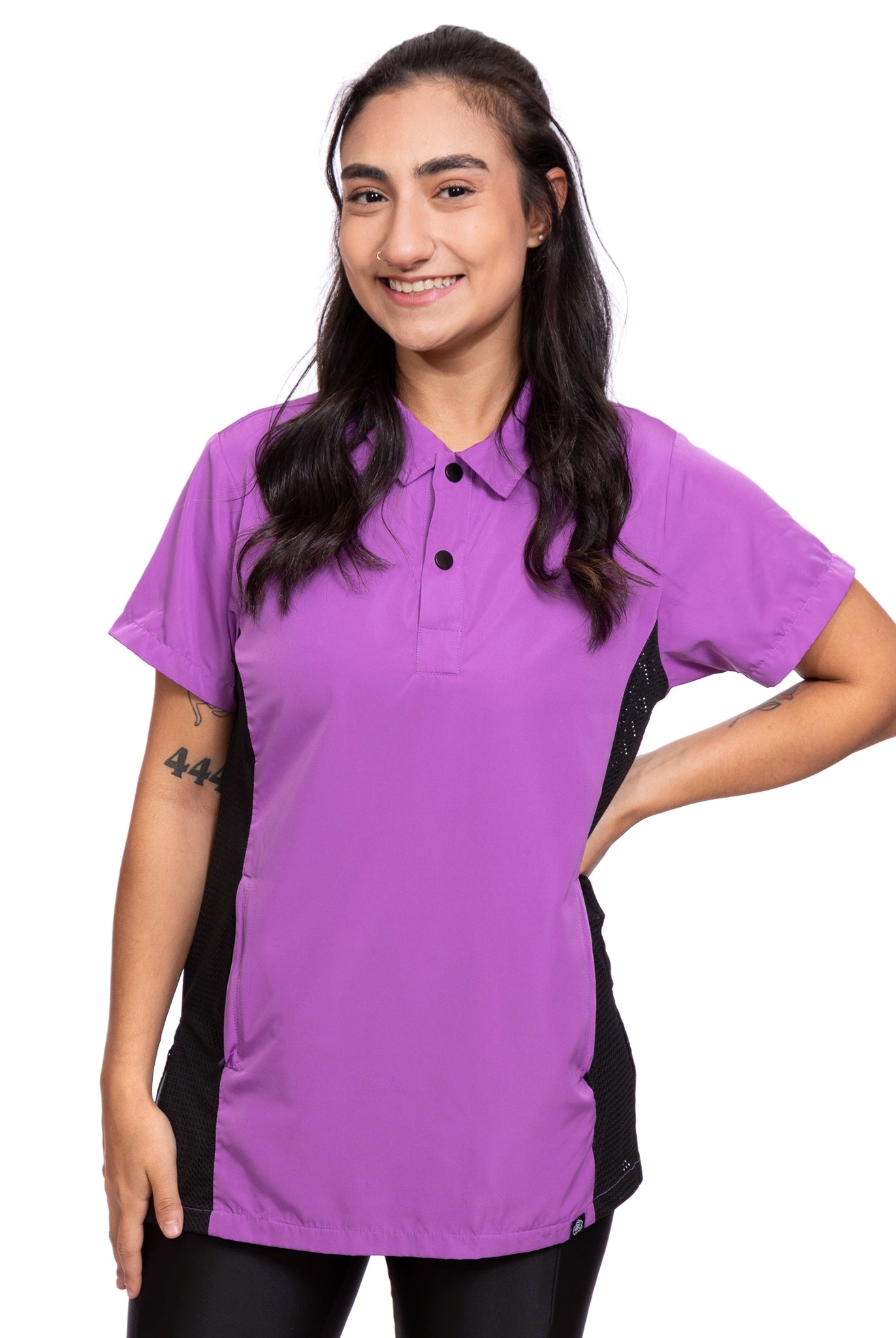 Our athletic line FabFlex fabric combines 82% polyester and 18% spandex, providing the perfect balance of durability and stretch. This blend ensures that hair and water fall right off, keeping you comfortable and efficient throughout your day.