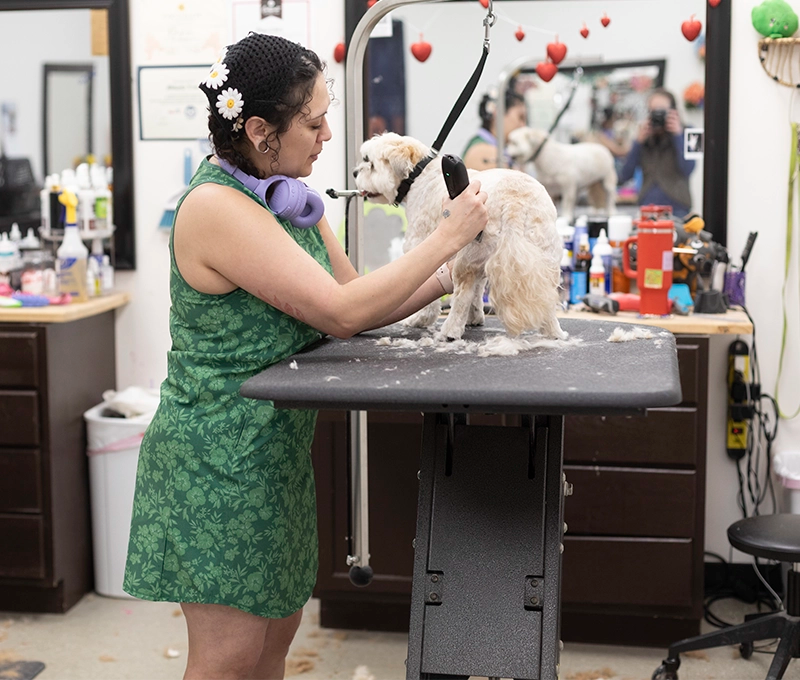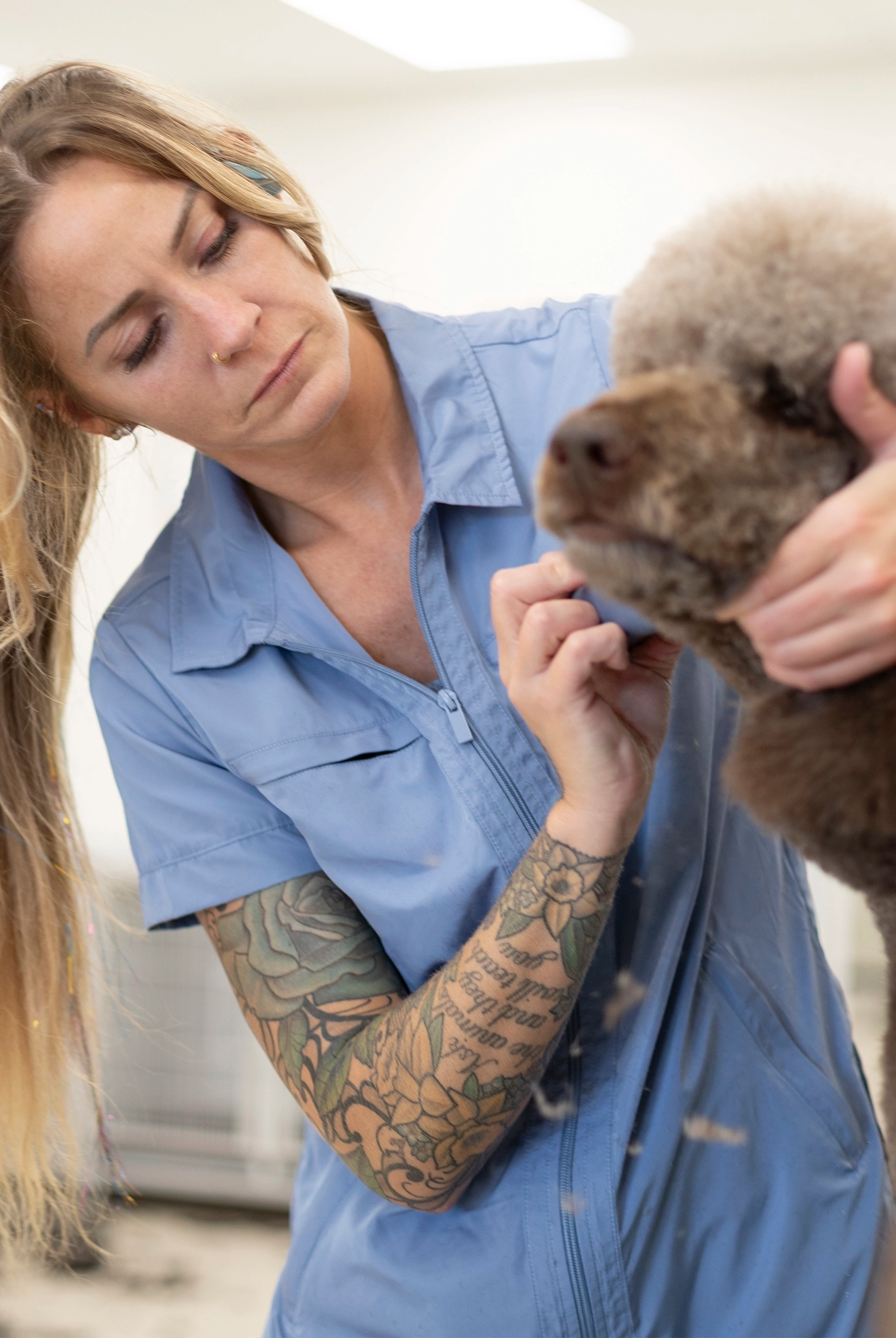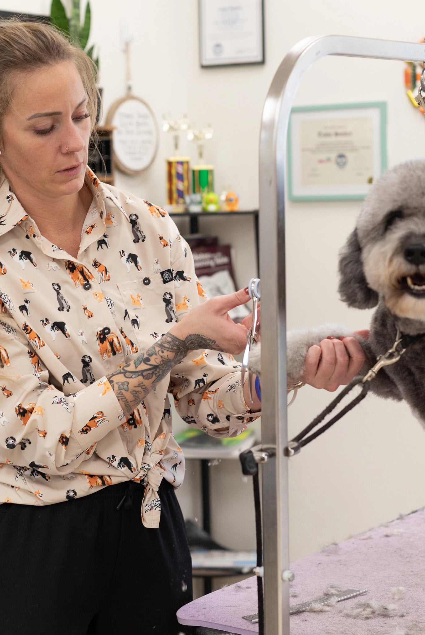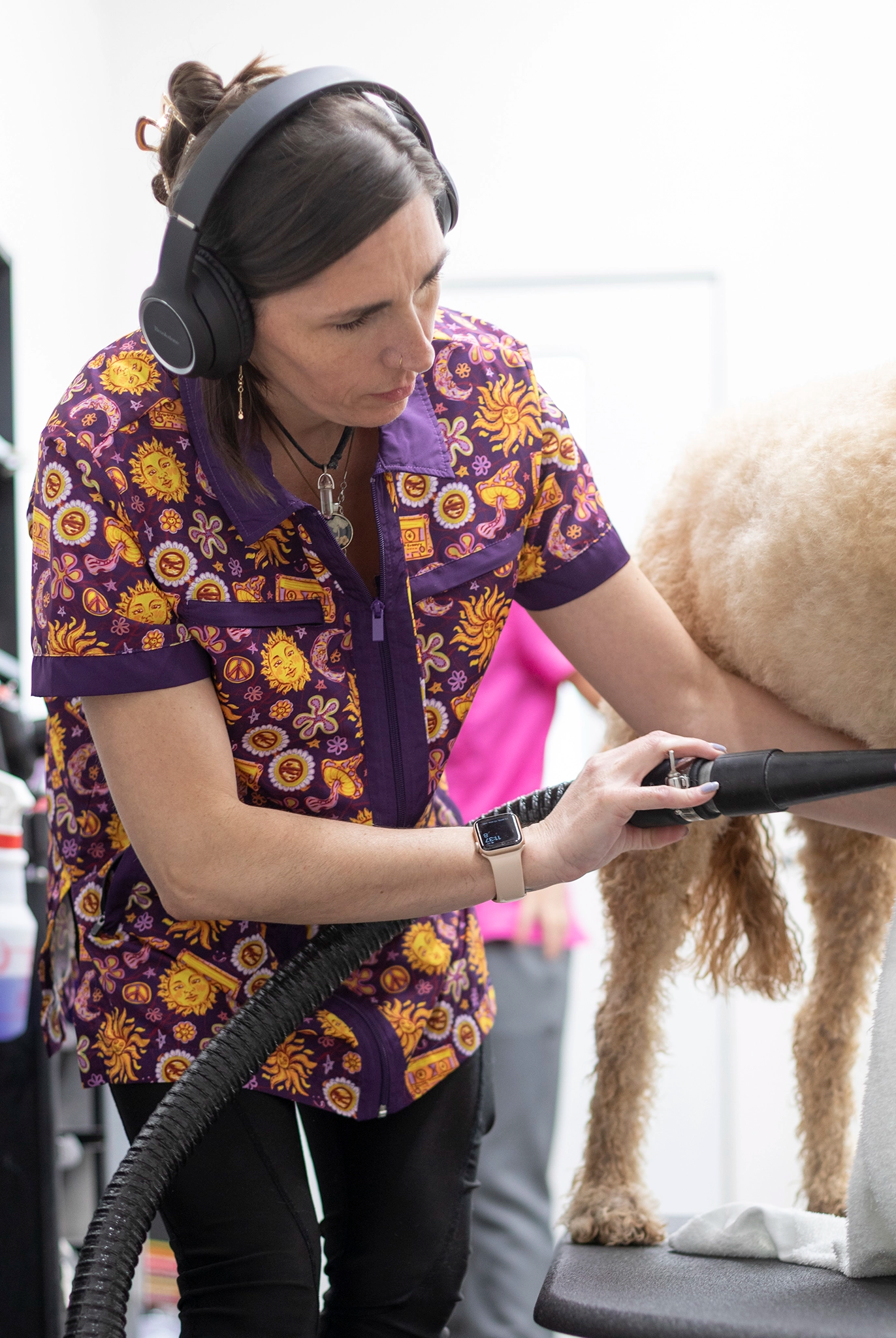 What if your grooming clothes could be your going-out clothes? Stay fresh and clean to go straight from the pet salon to your evening plans!