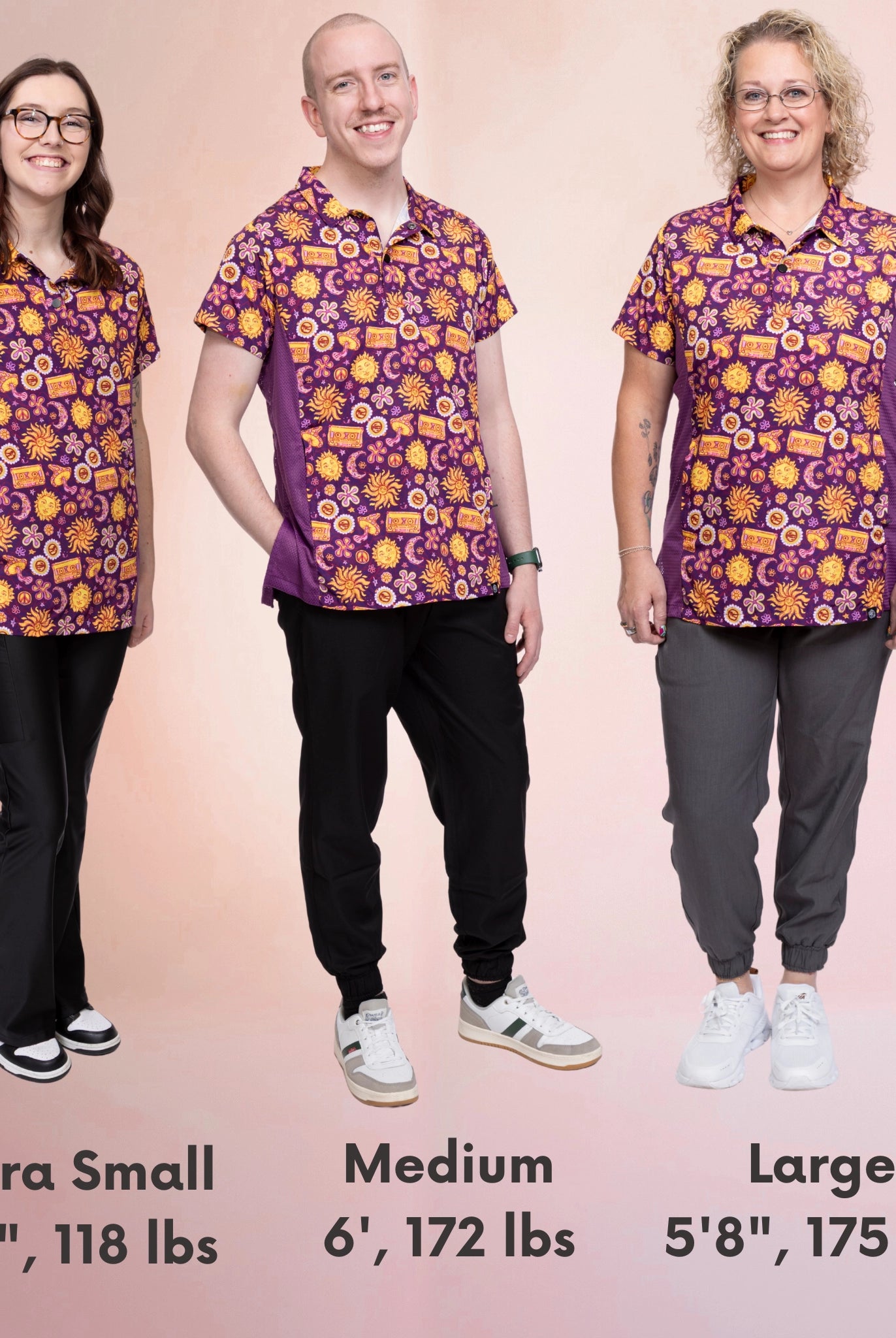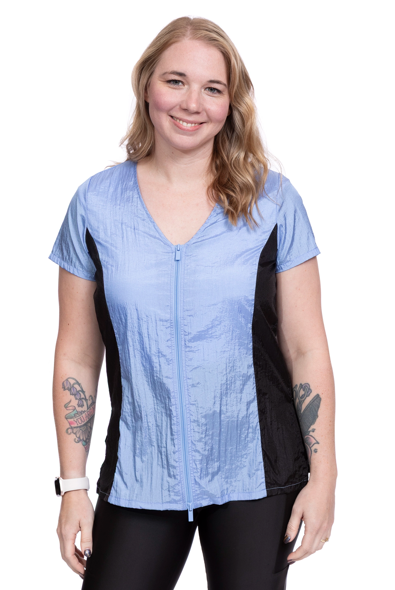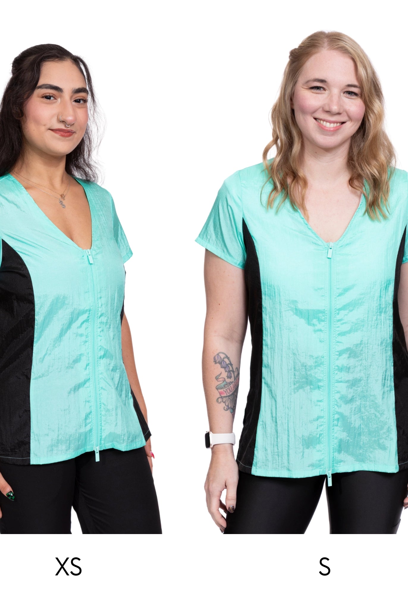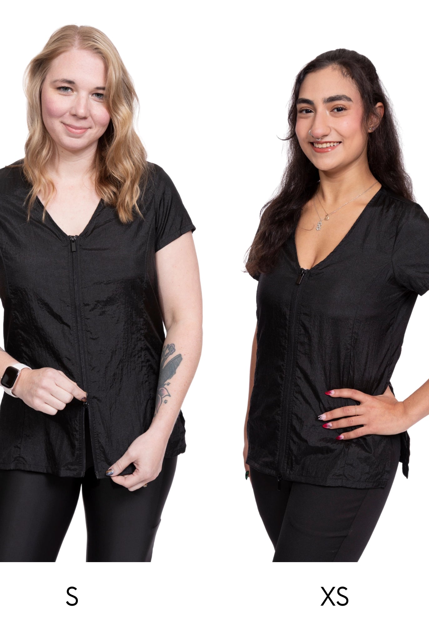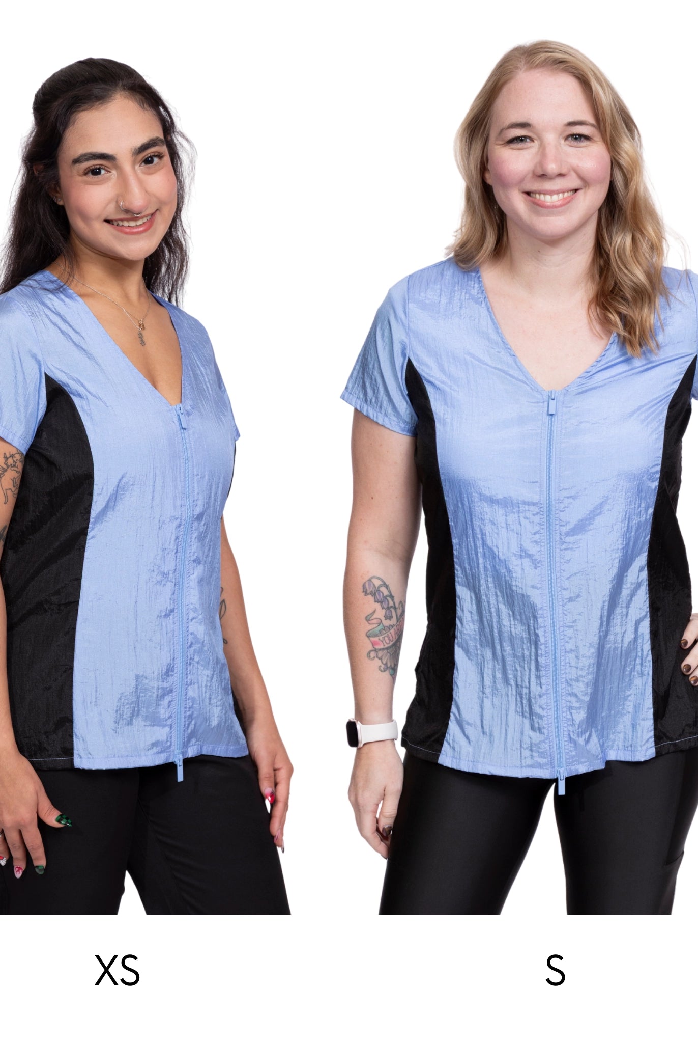 - Joan and Jacqueline: Crafted from athletic material with added stretch, these smocks are true to size.