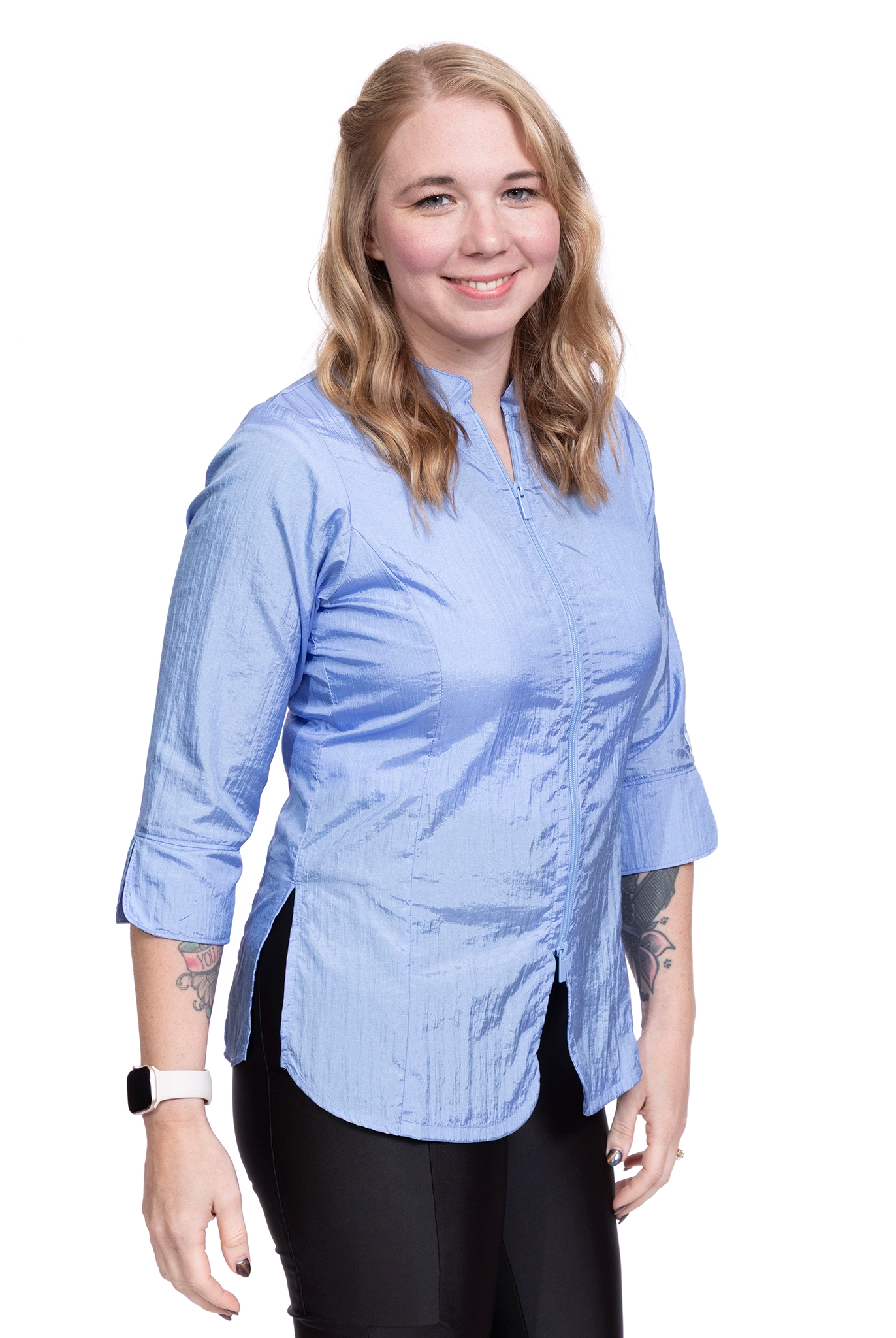 I searched everywhere for smocks that were both functional and stylish, but I couldn't find any with vertical zippered pockets, longer length, side slits, and durable zippers. So, I decided to create them! Now, after wearing my work uniforms, people constantly tell me they never realized how uncomfortable their other work clothes were. Discover what it’s like to feel and look great at work again!