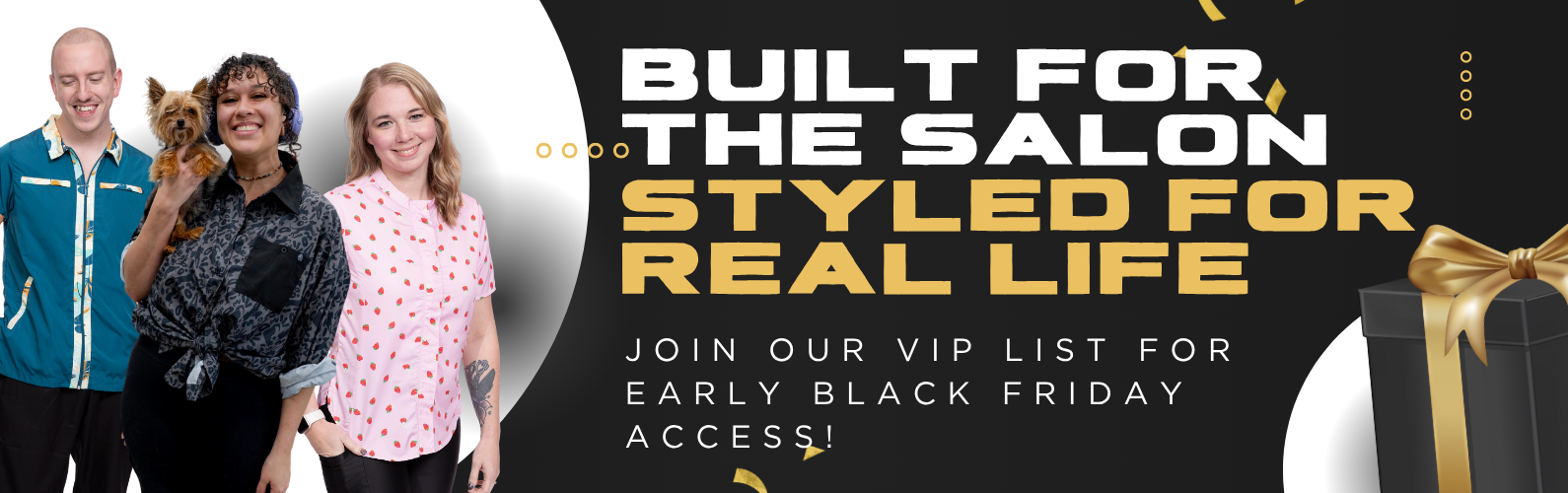 You don’t have to be a dog or cat groomer to take advantage of amazing styles and high-quality design. Retro Stylist Wear is perfect for those working with pets or humans. Hair stylists, barbers and estheticians can all benefit from our durable, breathable, water- and hair-resistant clothing. Look your best while feeling your best.