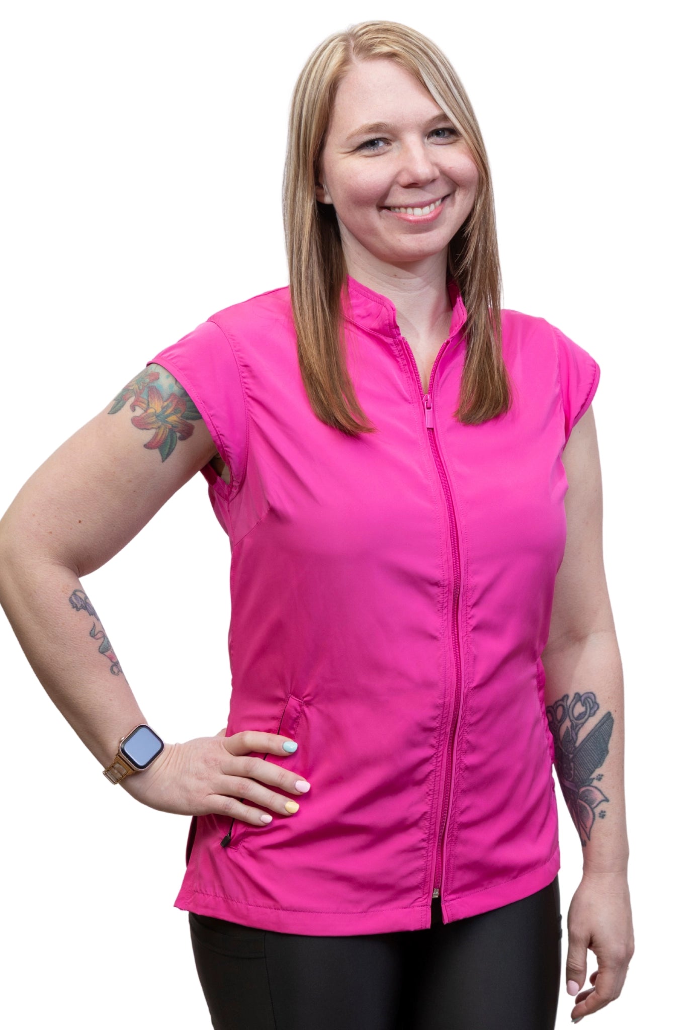 Our athletic line FabFlex fabric combines 82% polyester and 18% spandex, providing the perfect balance of durability and stretch. This blend ensures that hair and water fall right off, keeping you comfortable and efficient throughout your day.