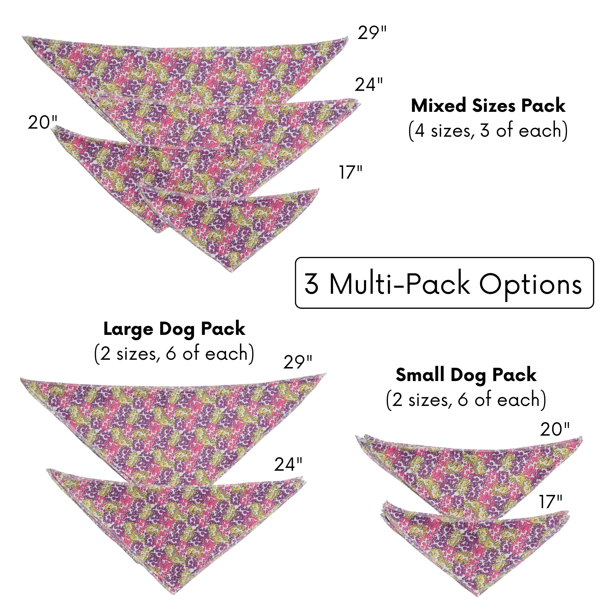 Each pack includes 12 bandanas, pre-cut in sizes 17", 20", 24", and 29". Finished hems help prevent fraying while maintaining a neat, professional look over time.