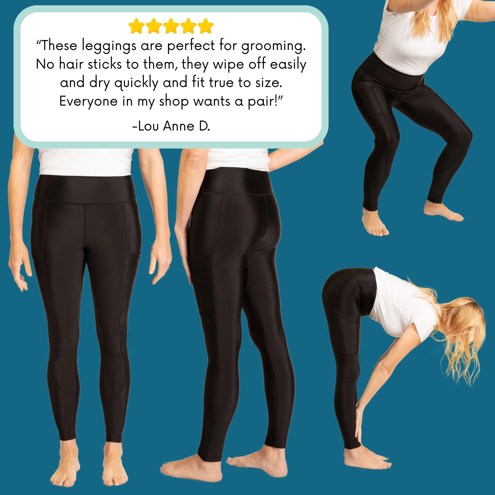 Amazing at being completely hair proof ! They do run long, but also have short legs. The material feels nice but i do feel like i am hiking then up alot. But they looks so nice and really keep the hair off!! Would purchase again but might get non bootcut leggings