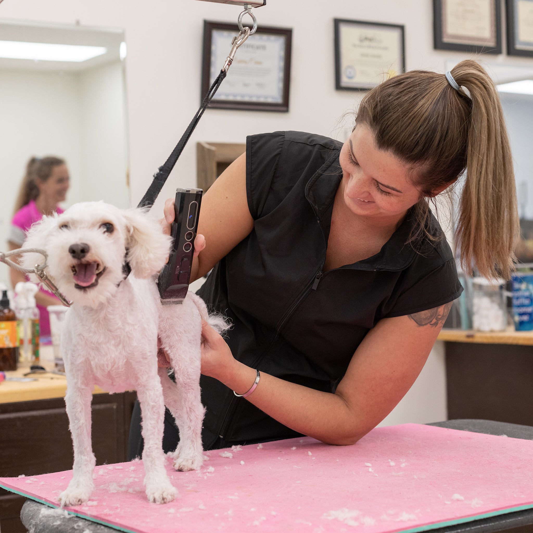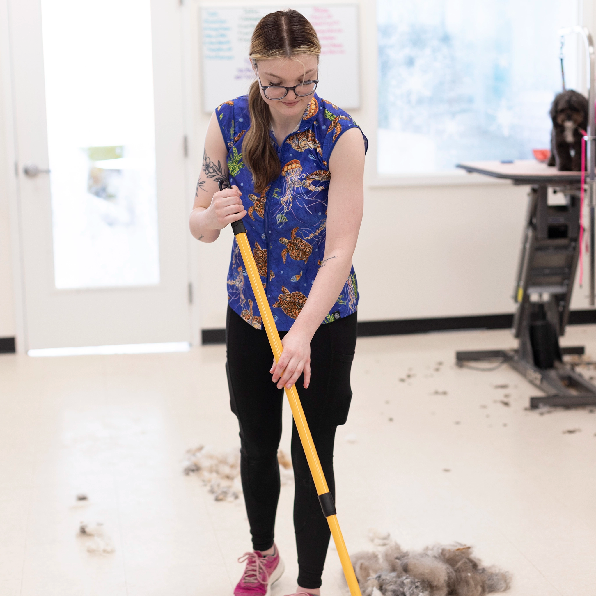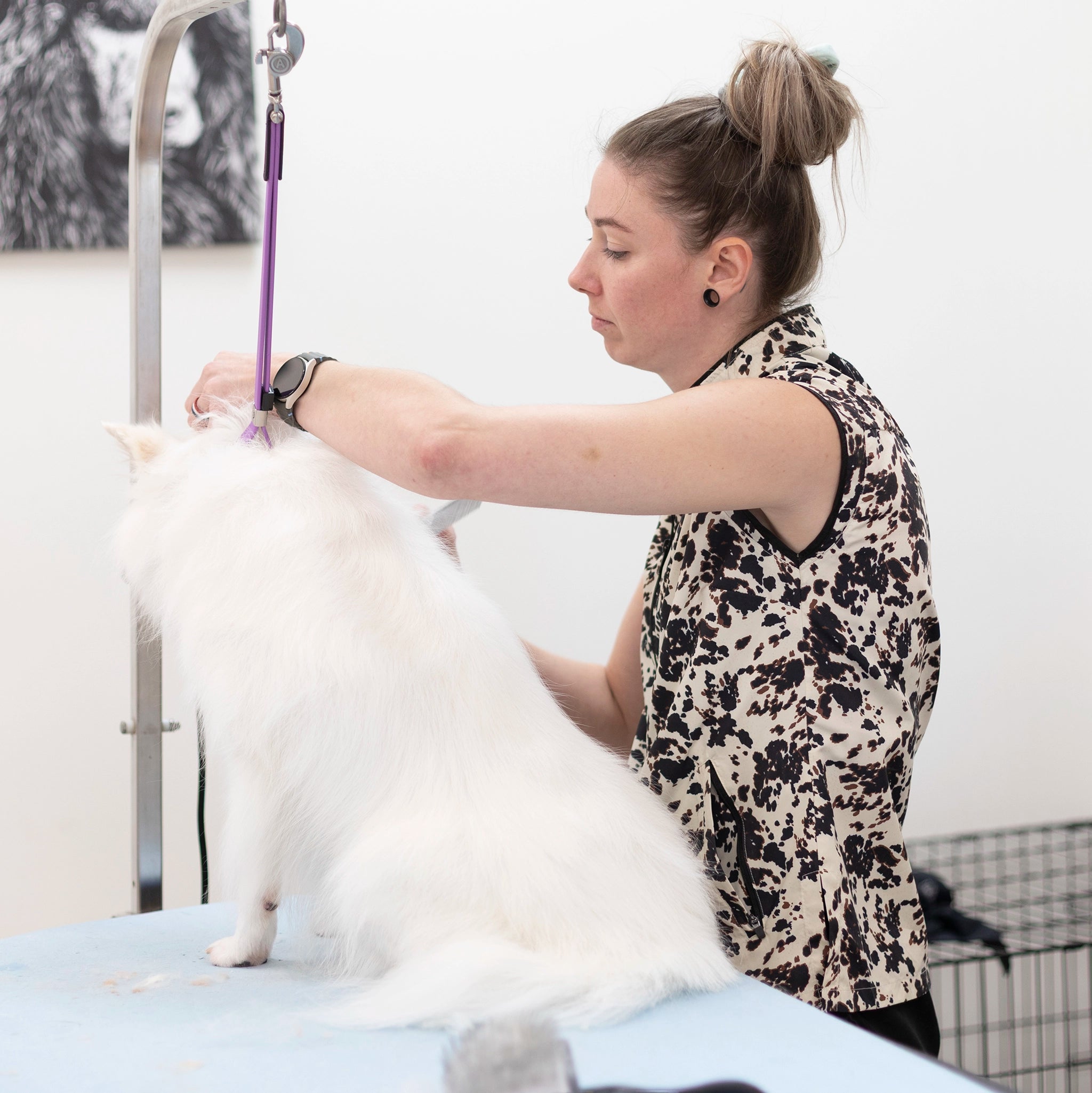 - Breathable fabric helps prevent overheating during long grooming sessions