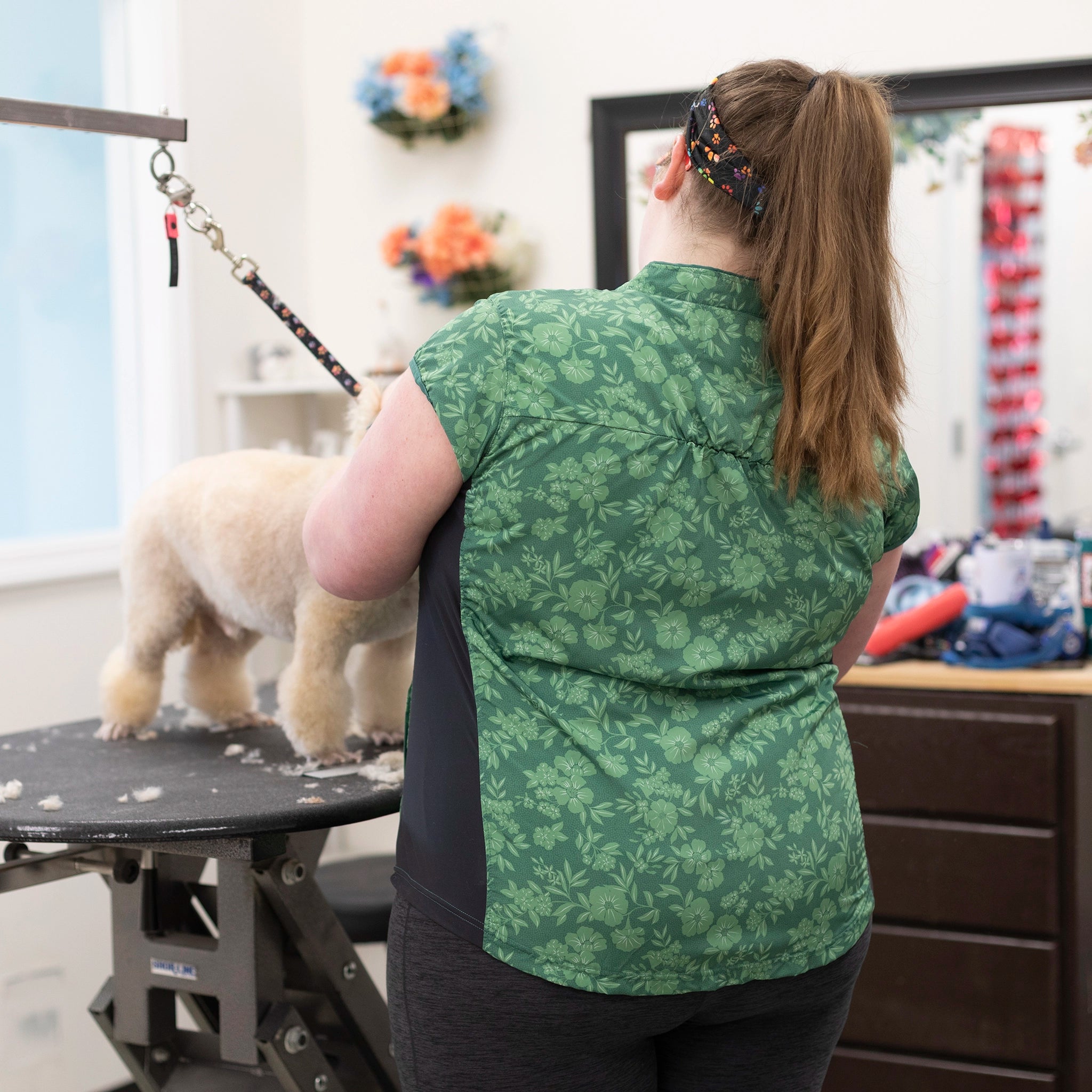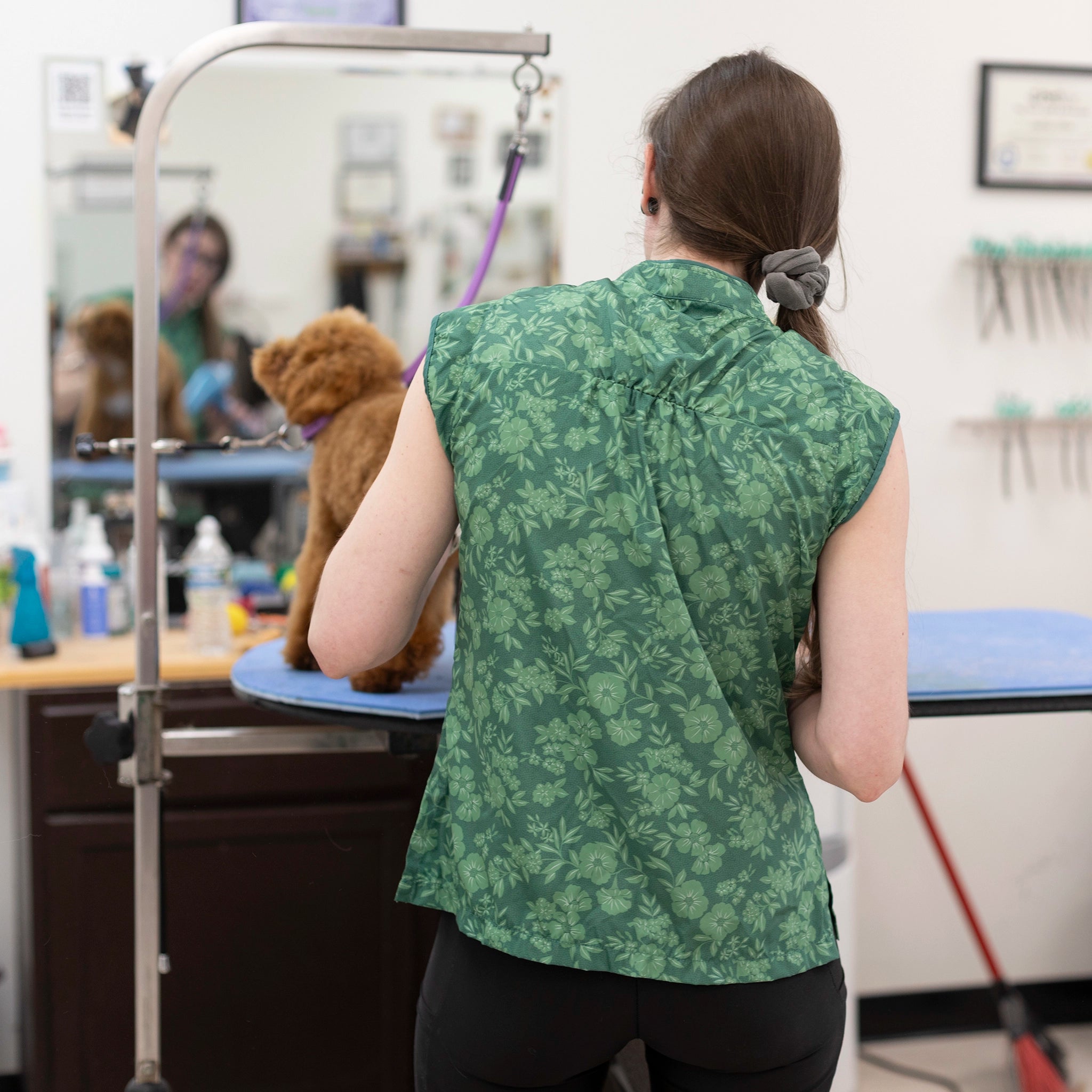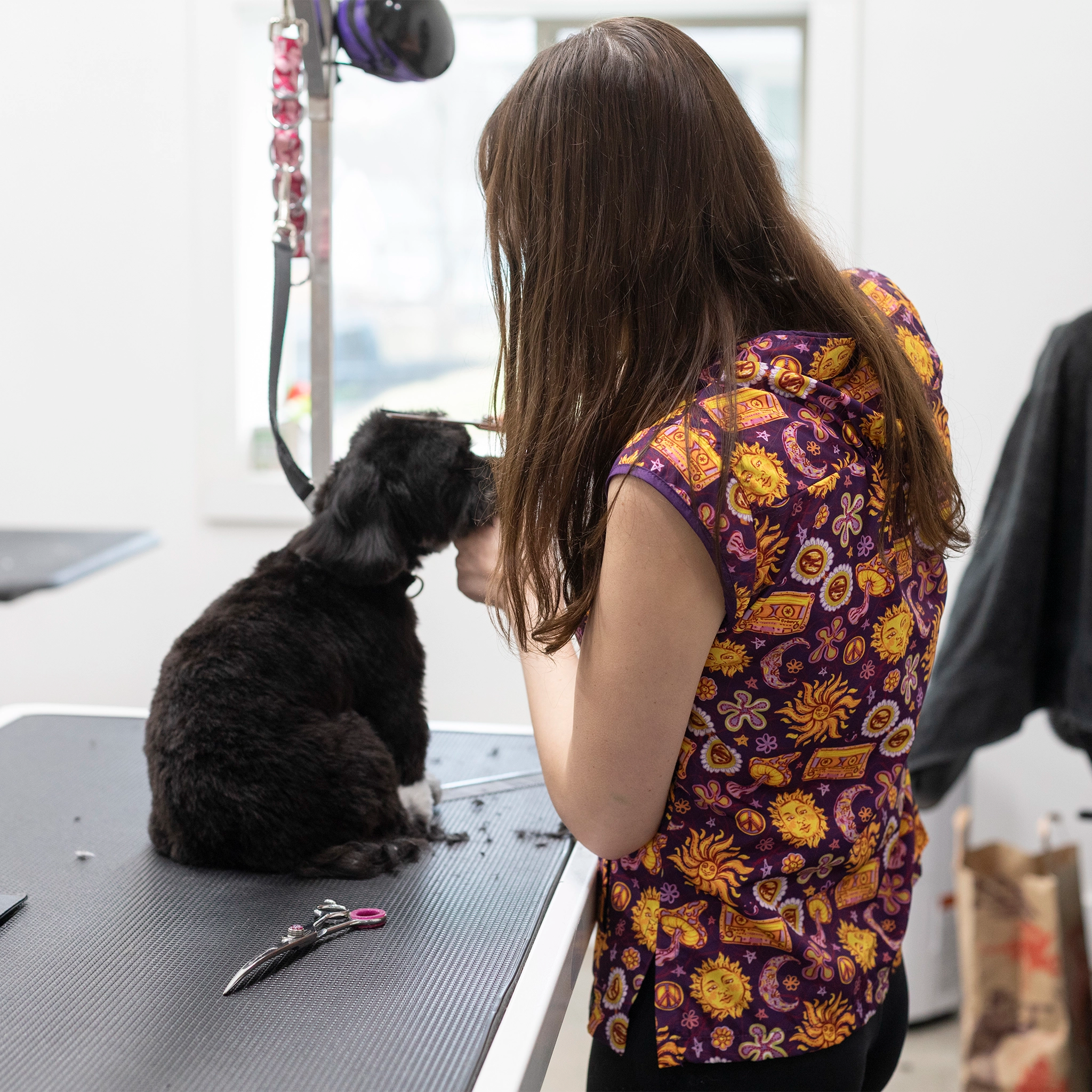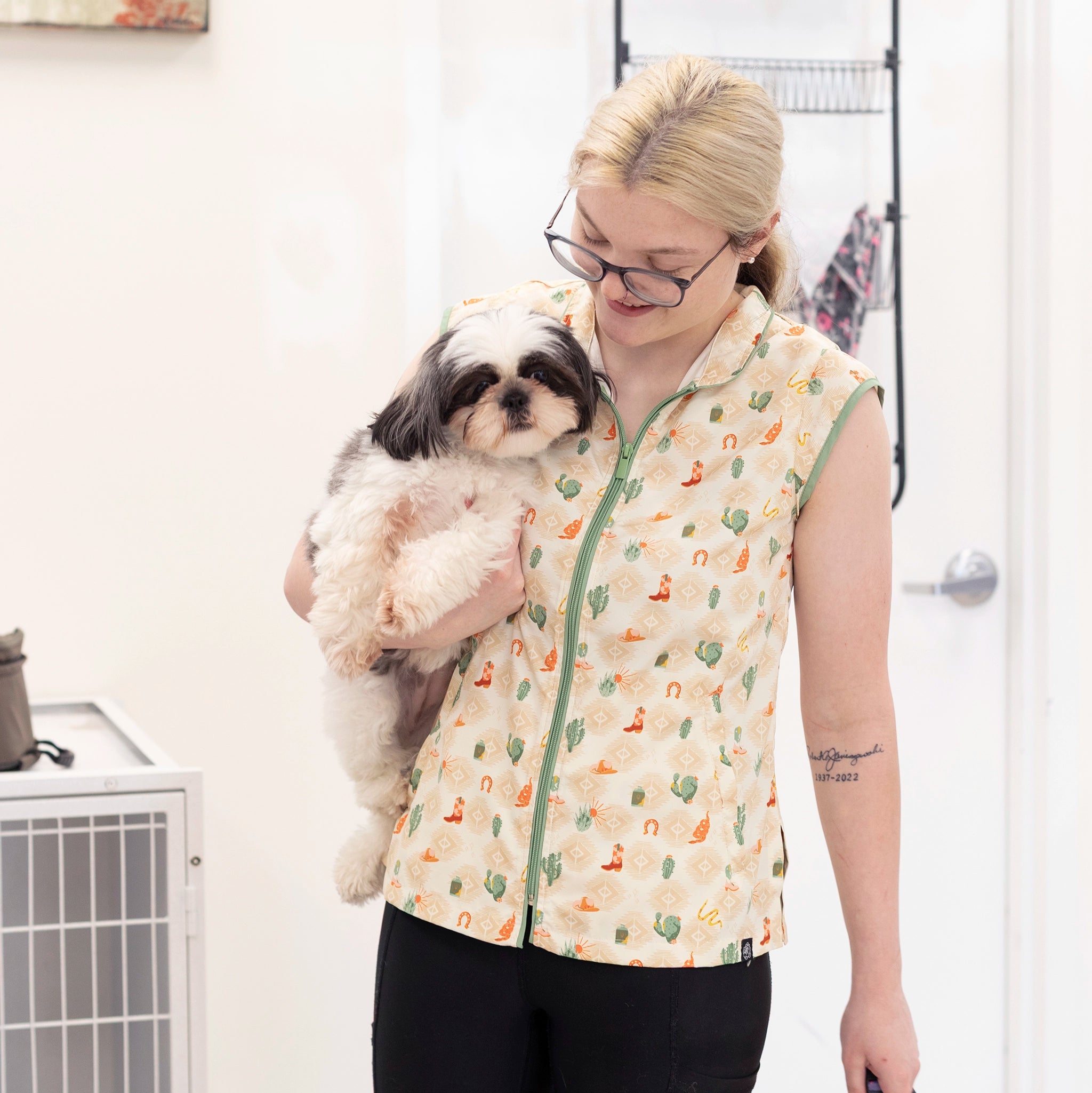 Today, Retro designs are shaped by real grooming experience. From breathable fabrics and secure zippered pockets to designs that allow for movement and all-day comfort, every detail is thoughtfully developed with working groomers in mind.
