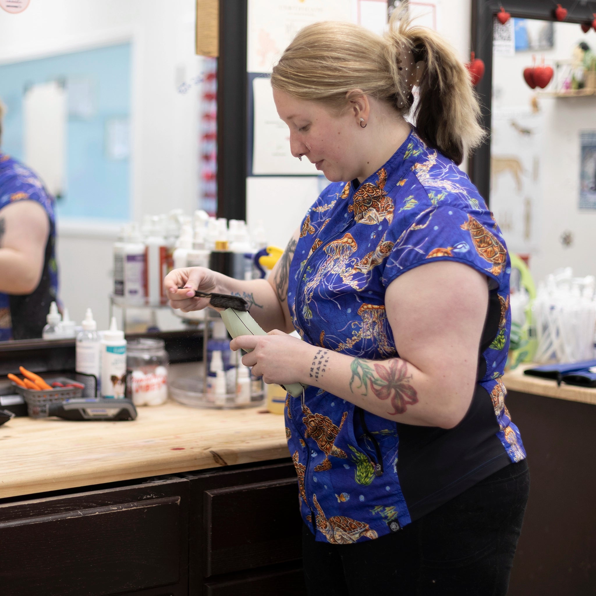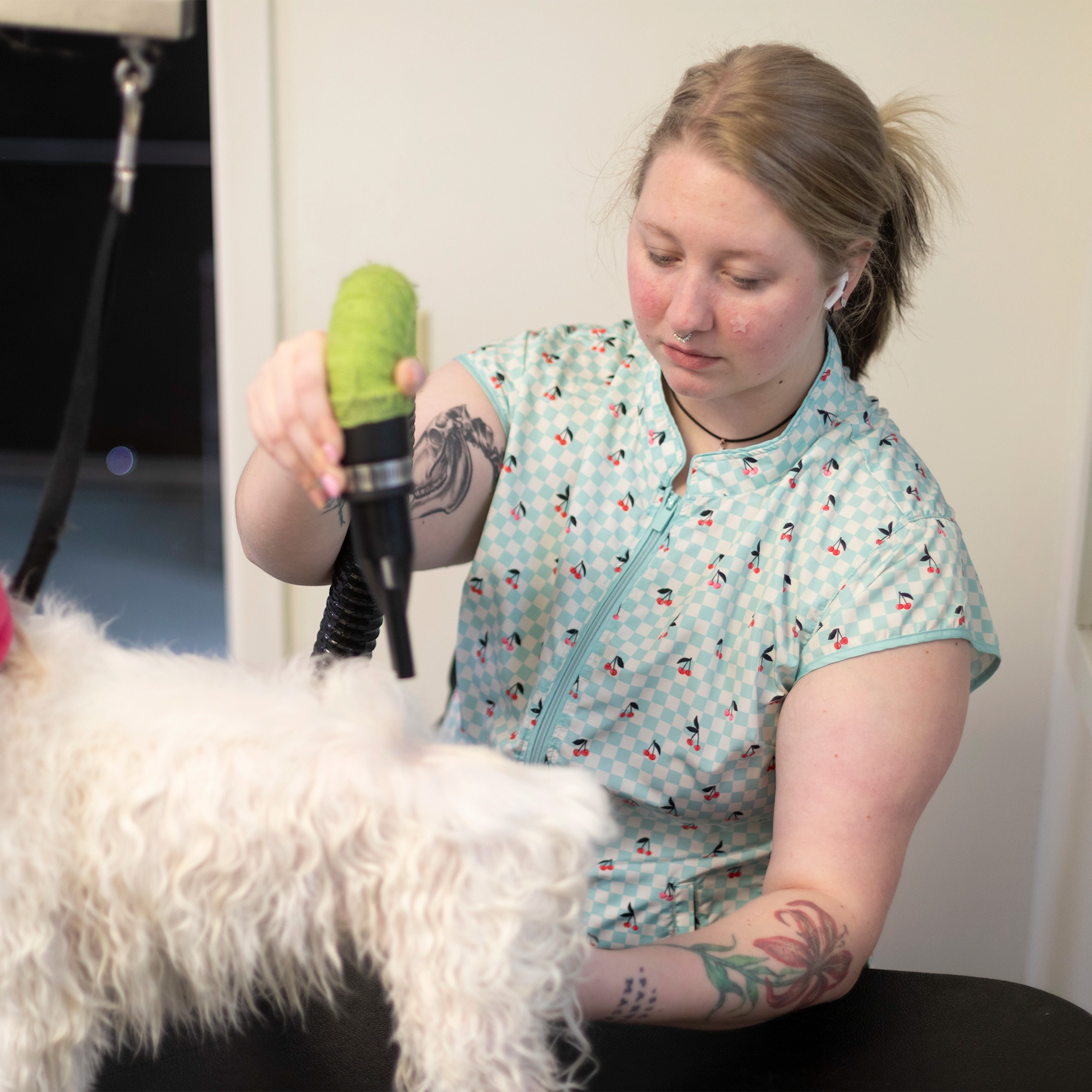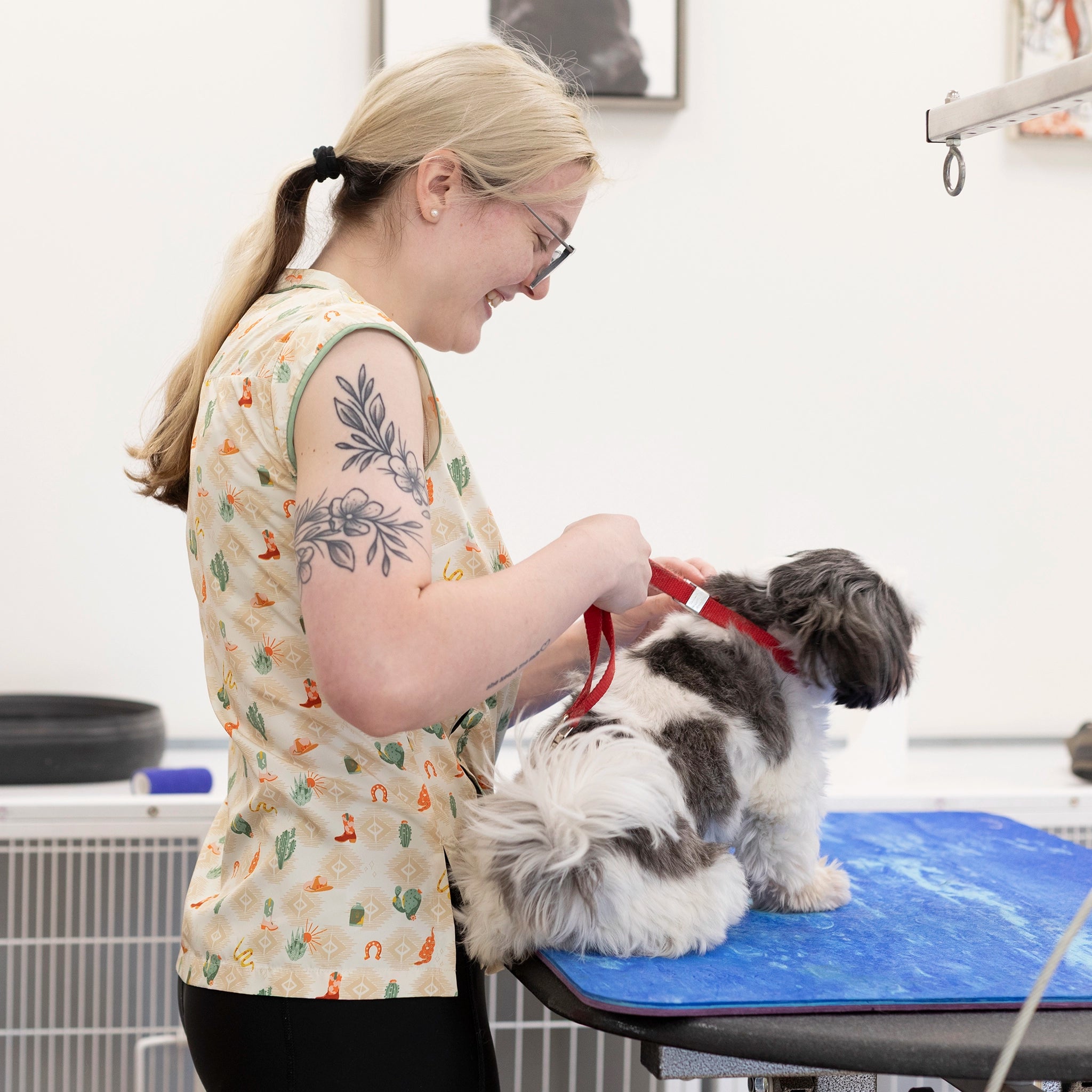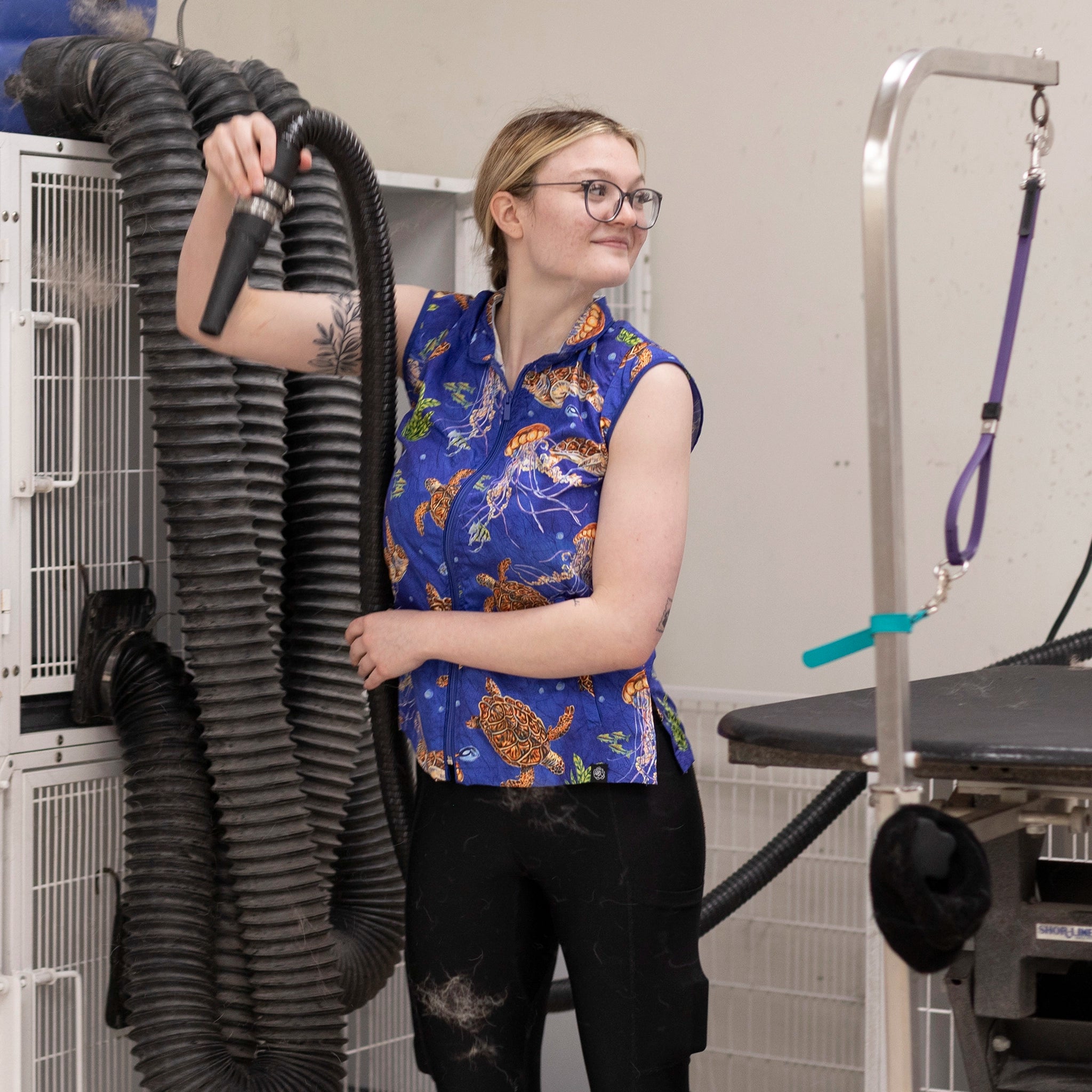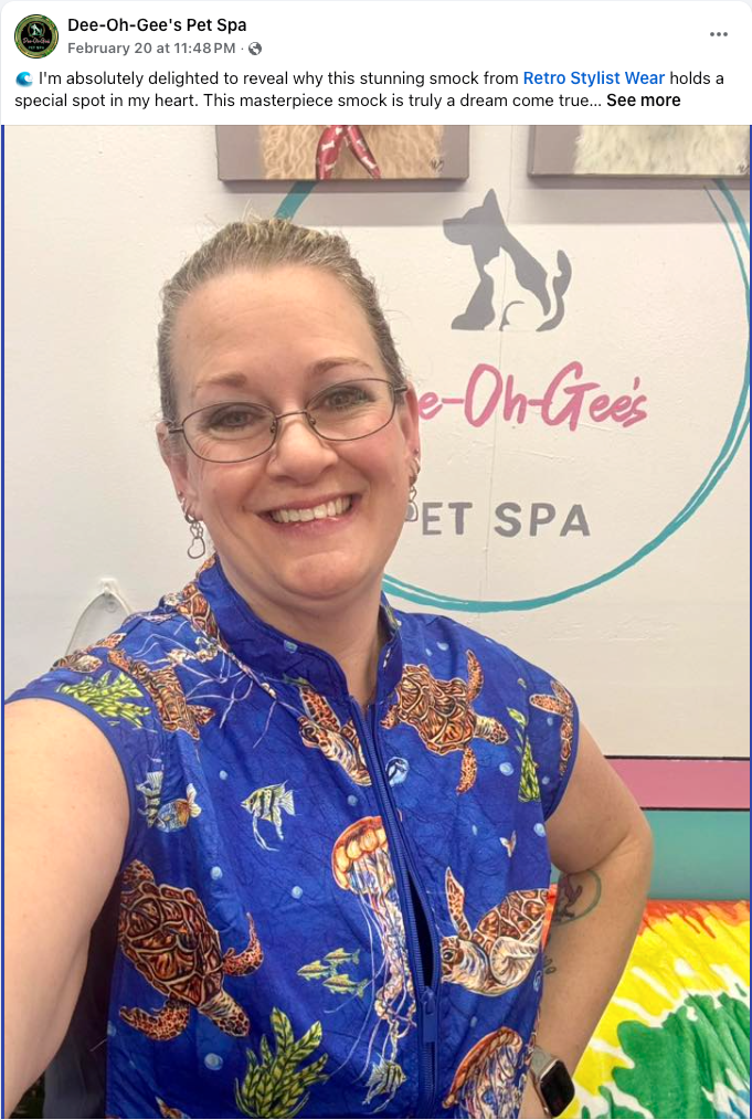 Today, Retro designs are shaped by real grooming experience. From breathable fabrics and secure zippered pockets to designs that allow for movement and all-day comfort, every detail is thoughtfully developed with working groomers in mind.