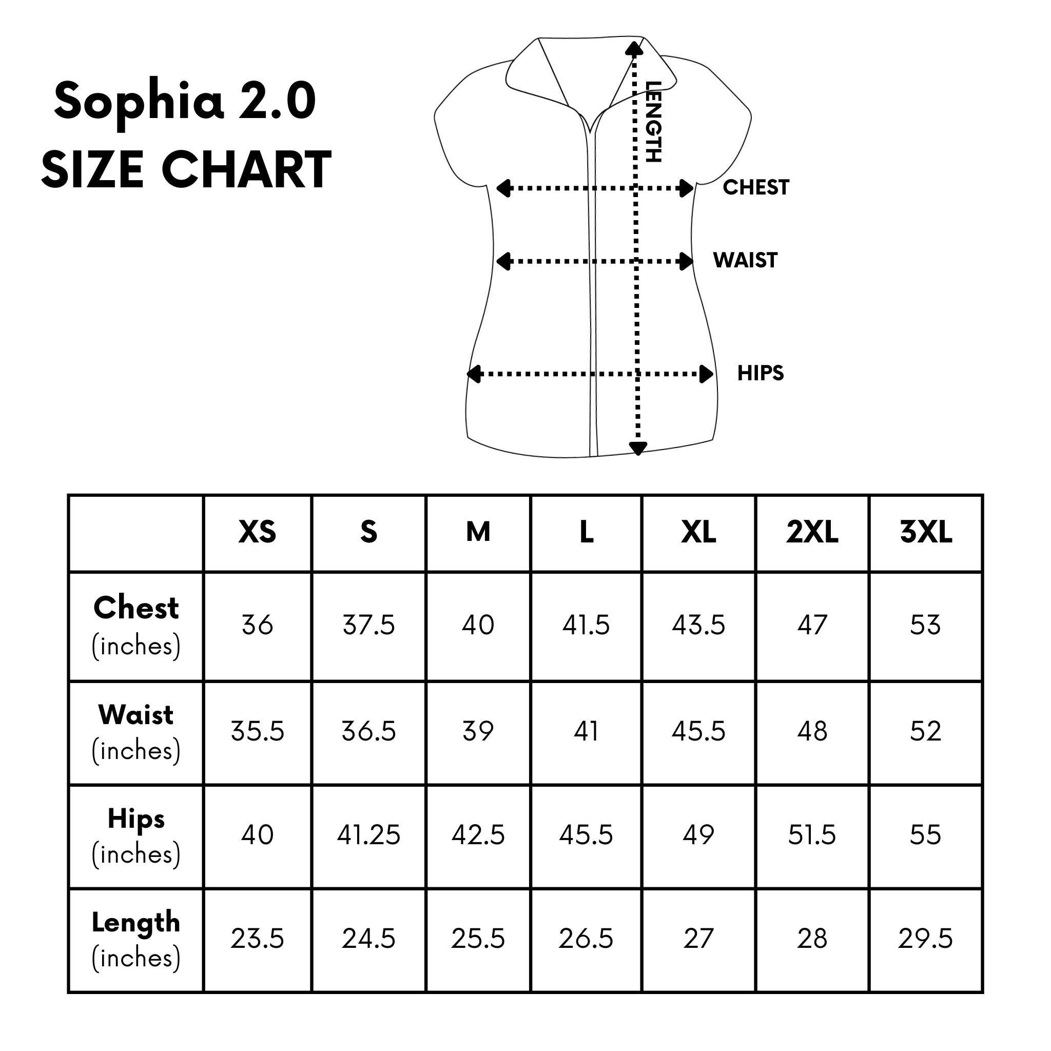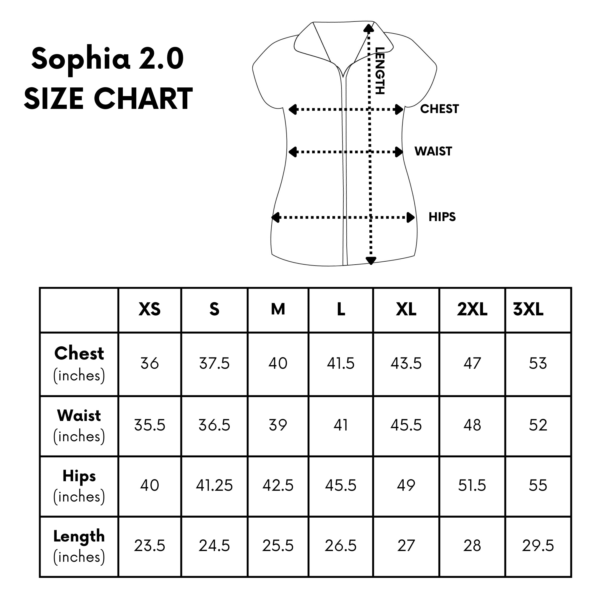The Sophia 2.0 smock has a slim fit and runs slightly small. If you're trying to decide between a M or L, we would suggest a Large. Please check your body measurements against our size chart before purchasing.