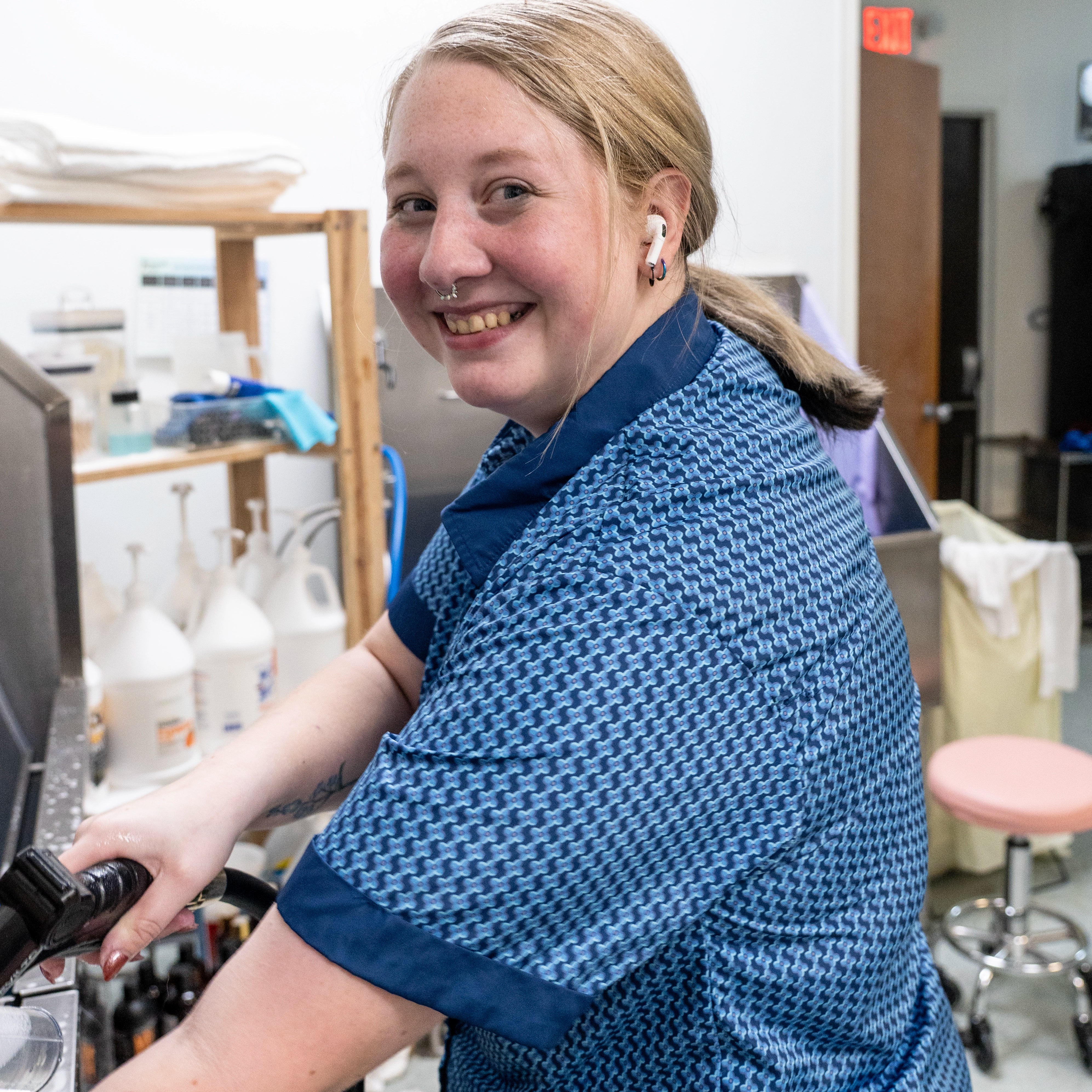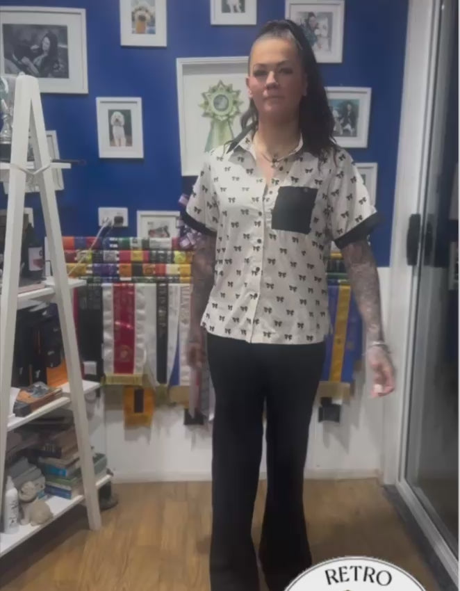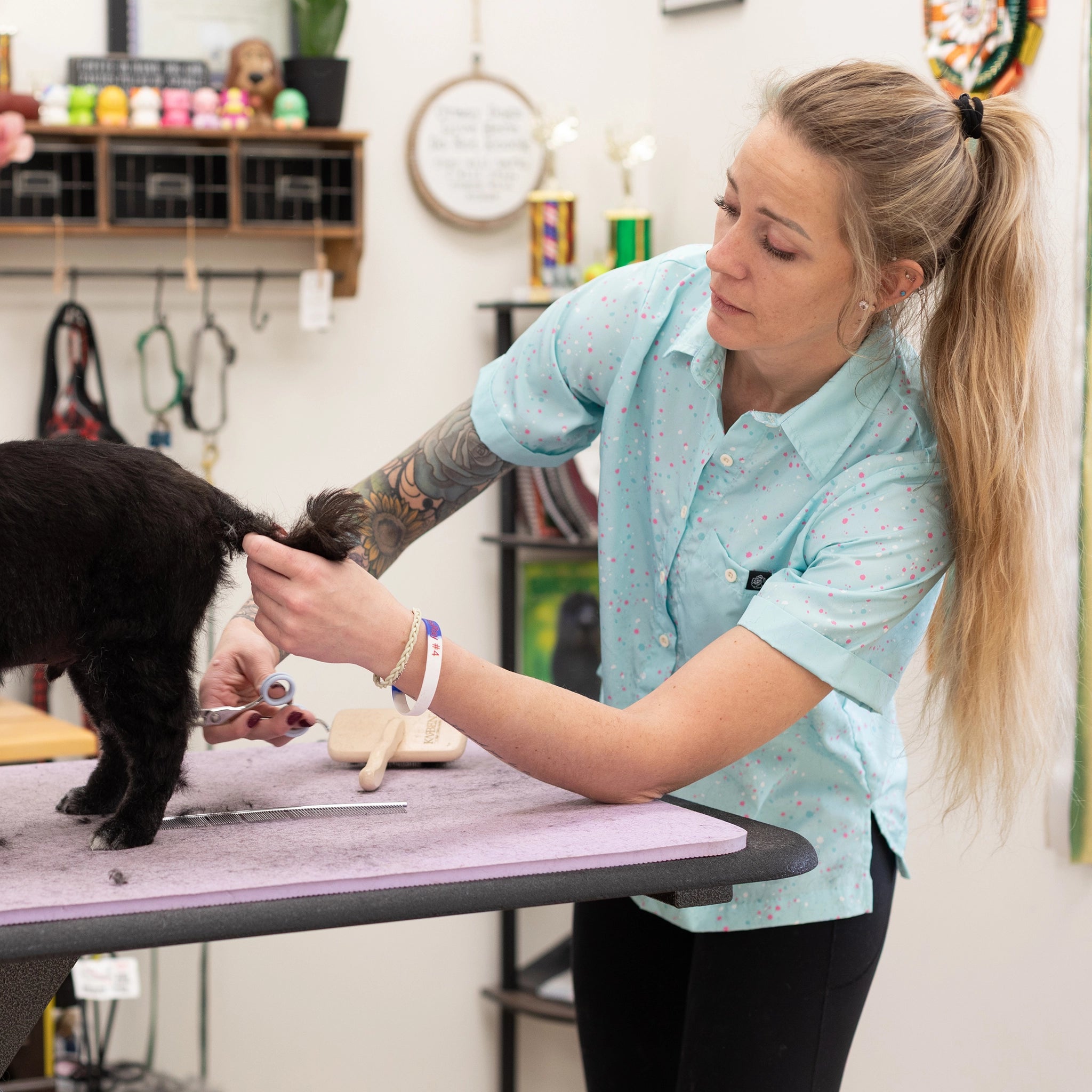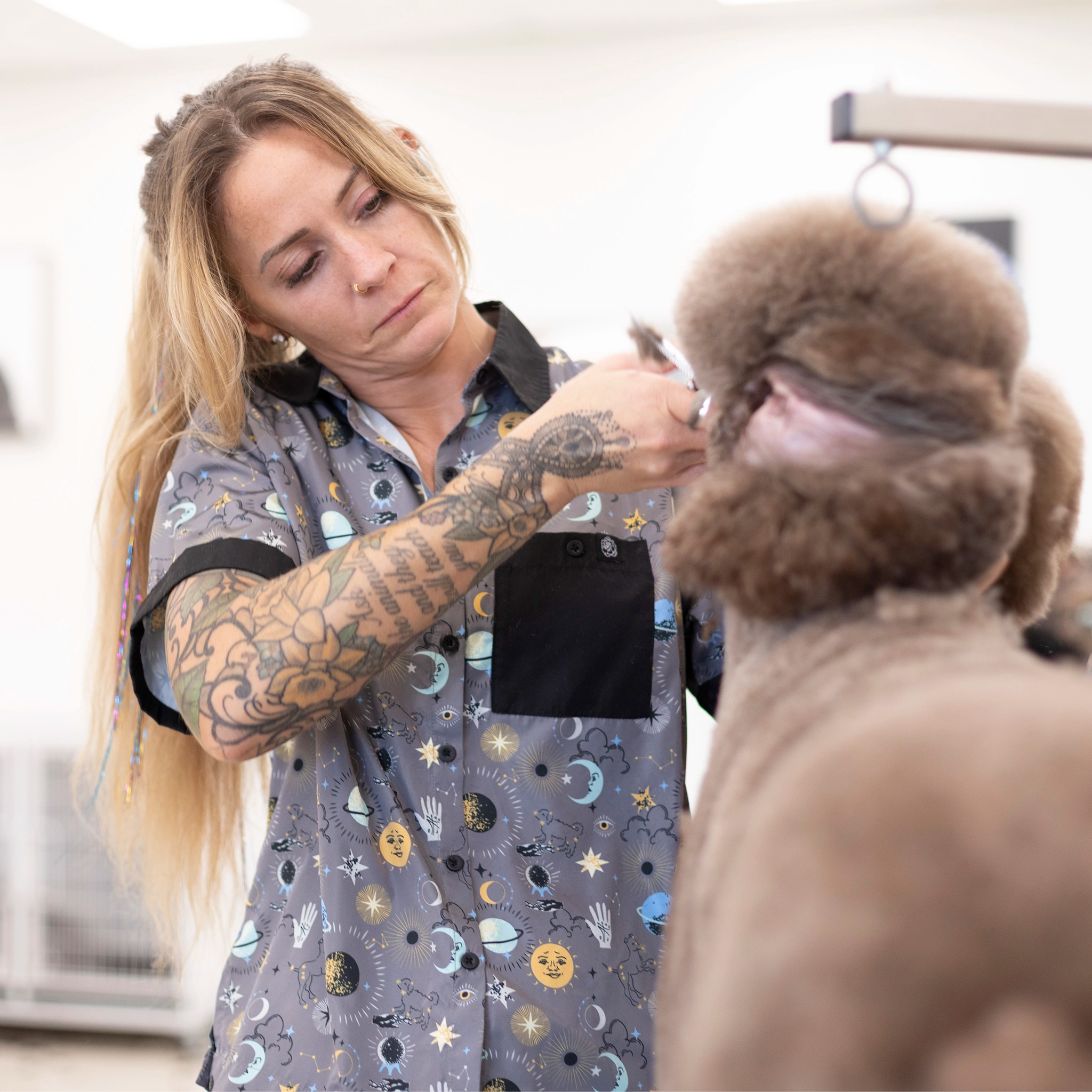 Today, Retro designs are shaped by real grooming experience. From breathable fabrics and secure zippered pockets to designs that allow for movement and all-day comfort, every detail is thoughtfully developed with working groomers in mind.