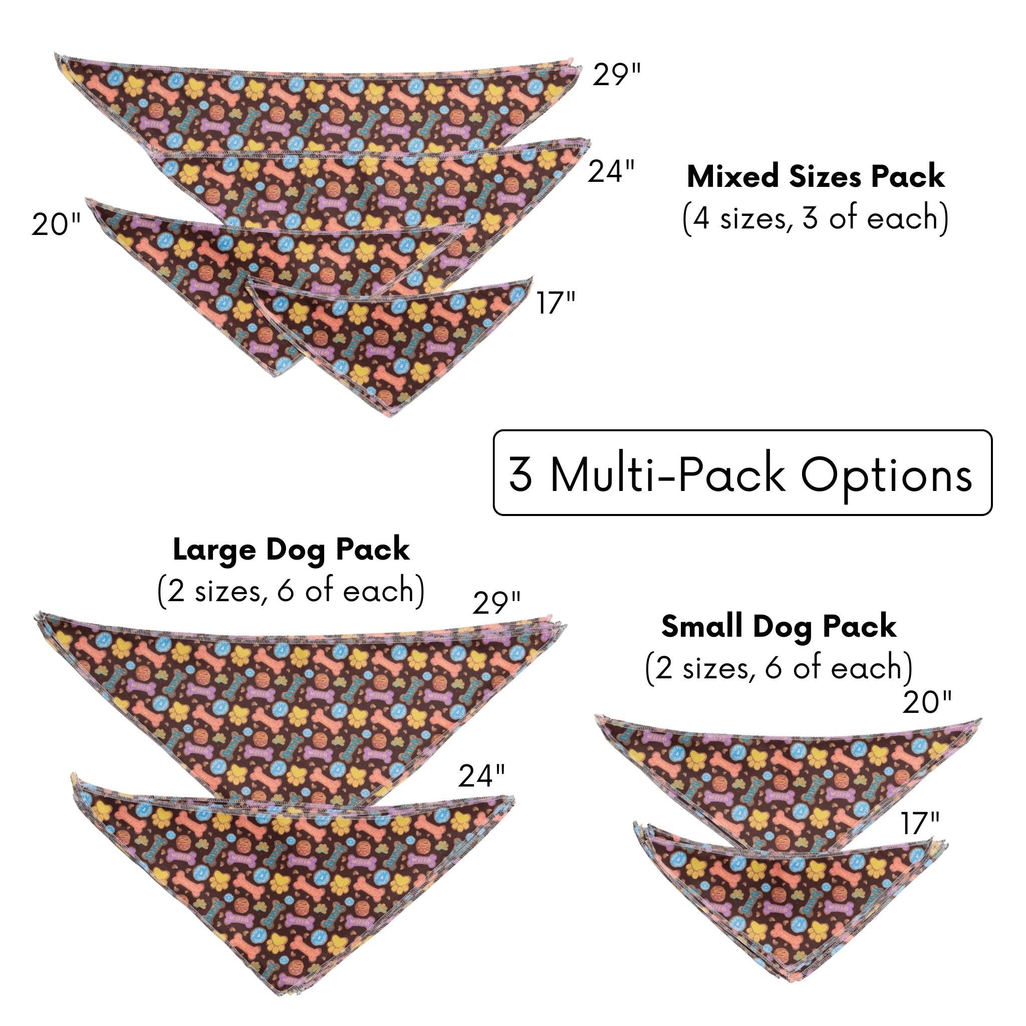 Each multipack contains 12 bandanas, pre-cut in sizes 17", 20", 24", and 29". A finished hem adds durability, prevents fraying, and ensures a clean, tailored look.