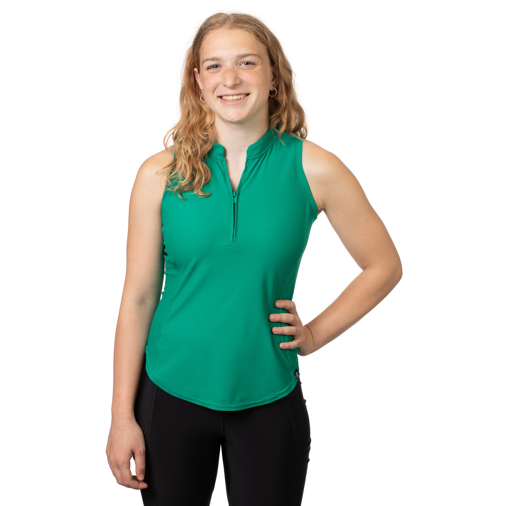 With an athletic sleeveless cut, a curved hem, and a short, fashionable collar, this grooming top offers a modern, fitted silhouette that flatters your professional look. The hidden quarter-zip with a sleek pull adds a polished touch while keeping stray hairs out, blending practicality with effortless style.