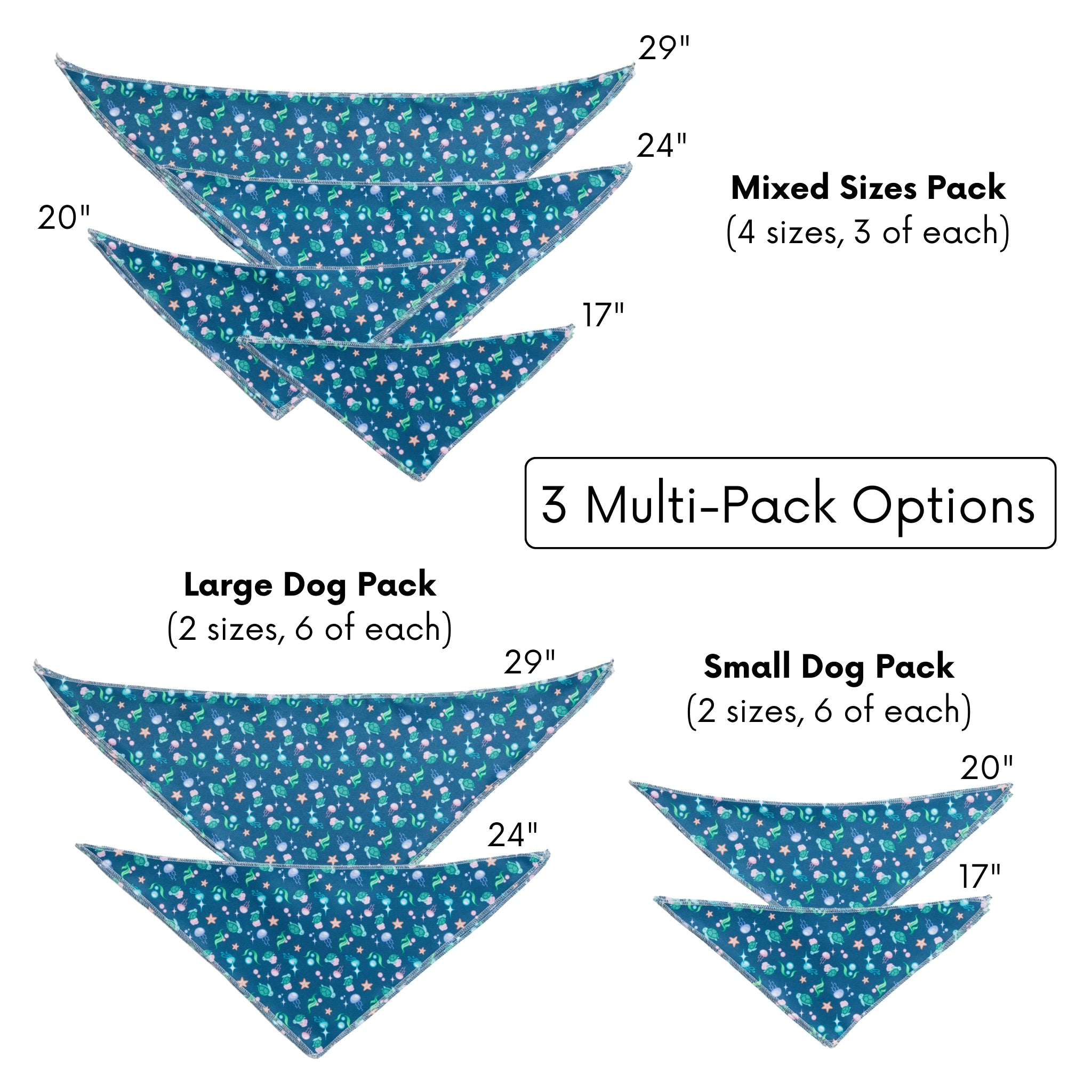- Large Dogs Pack: 24" and 29" sizes (6 per size)