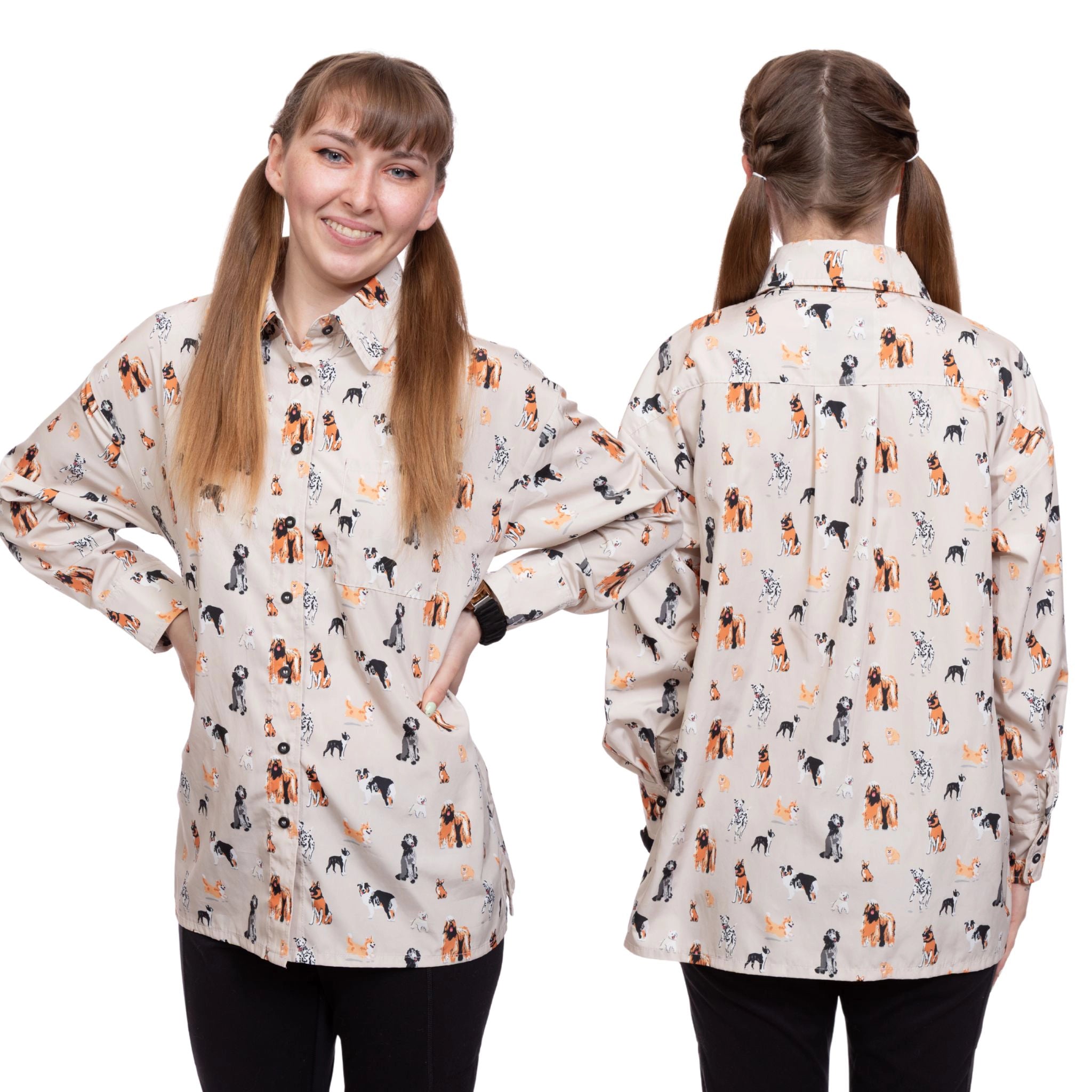 The Dorian smock’s relaxed, oversized design suits all body types, providing ample room for movement during long grooming sessions. Stay comfortable and confident, whether you’re grooming small breeds or large dogs.
