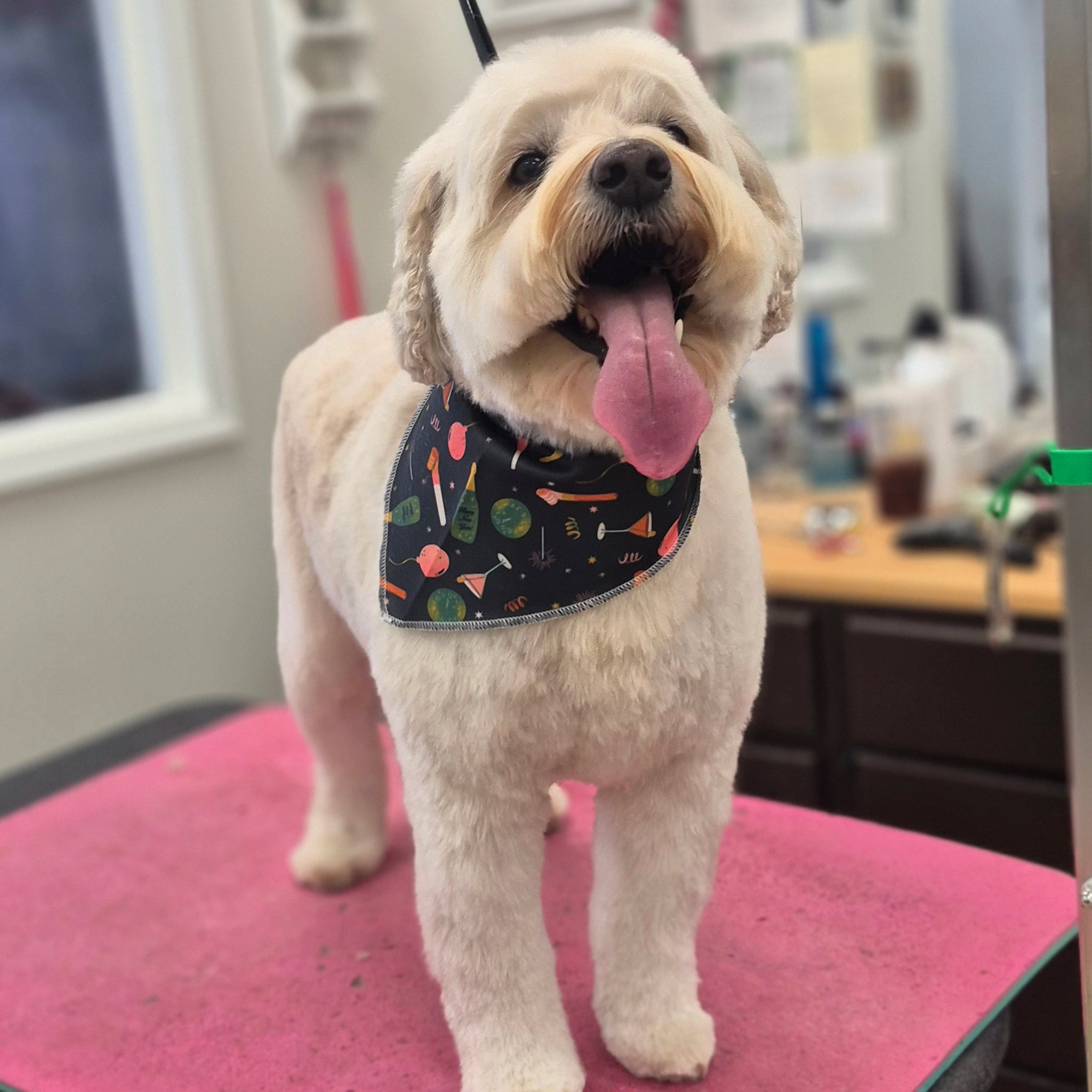 I bought my first retro smock at All American earlier this year… since then I’ve placed three more orders… I no longer have any self control. I absolutely LOVE these smocks… not to mention, the MATCHING bandannas! My clients think it’s the coolest thing! My only regret is only buying one Christmas smock lol…