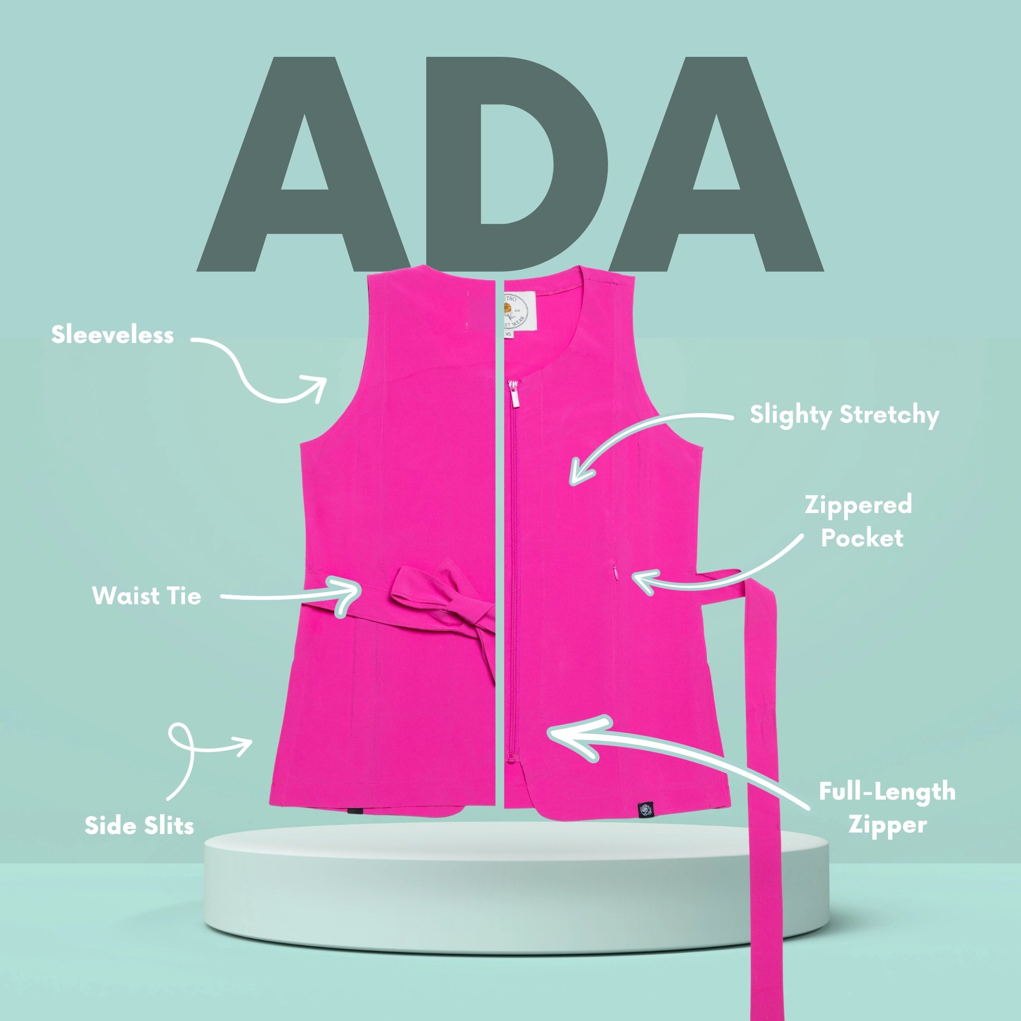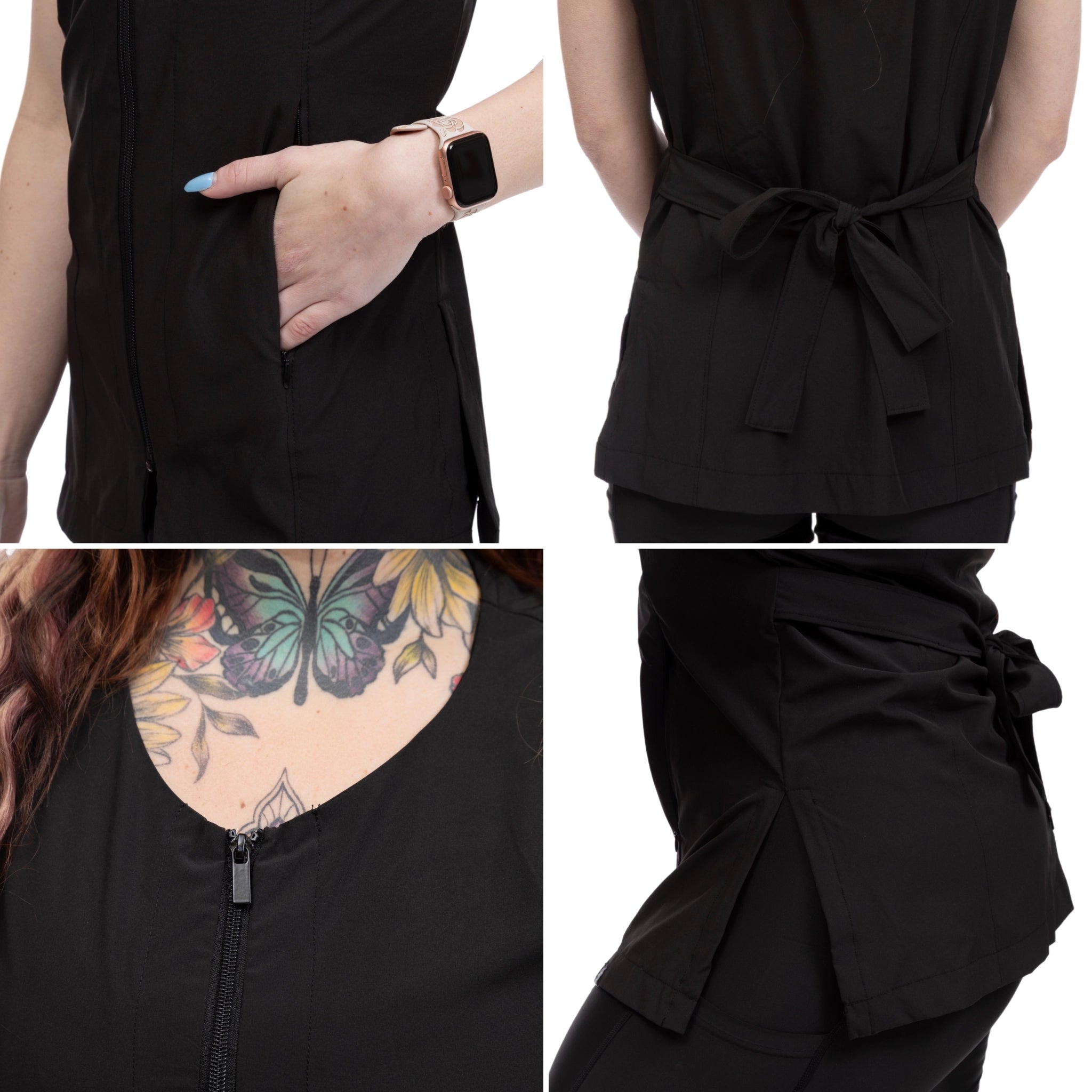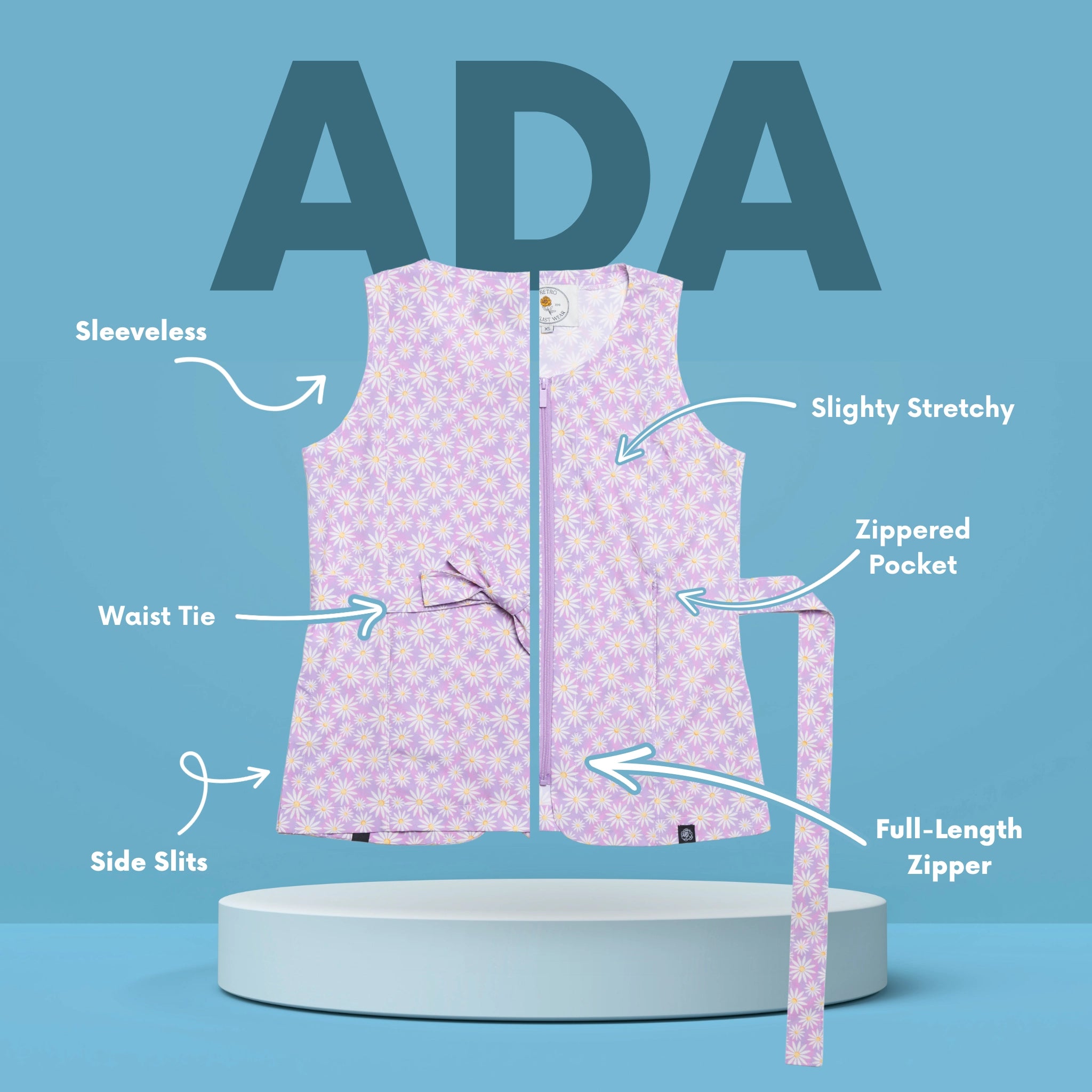 The Ada sleeveless smock is thoughtfully designed for women who want a polished, feminine silhouette without sacrificing performance. Its fitted design is paired with an adjustable waist tie, allowing you to customize the fit for definition and all-day comfort.