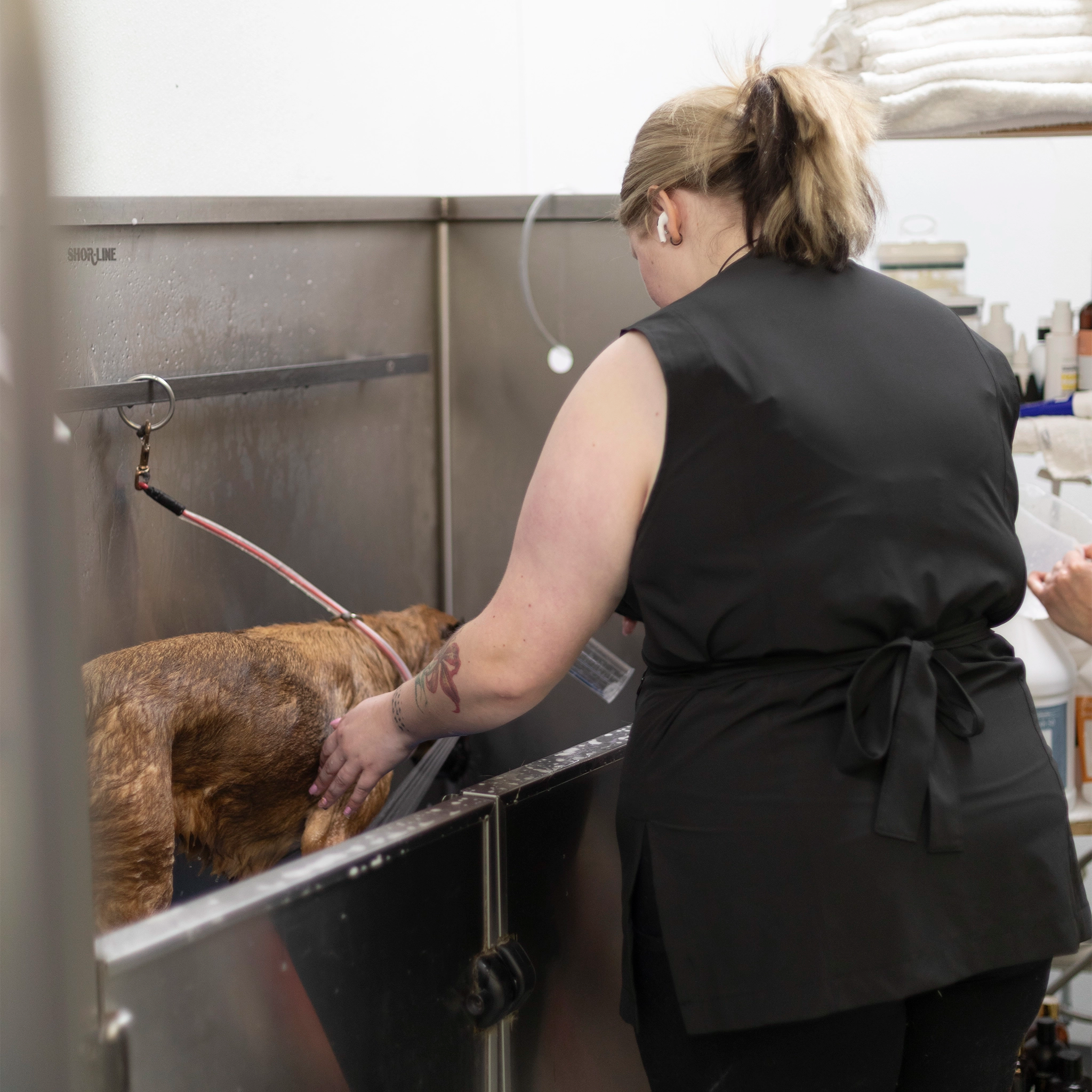 Designed for real salon conditions, ElastiCORE offers reliable water resistance and quick-drying performance, keeping you comfortable and presentable through baths, blow drying, and busy grooming days.