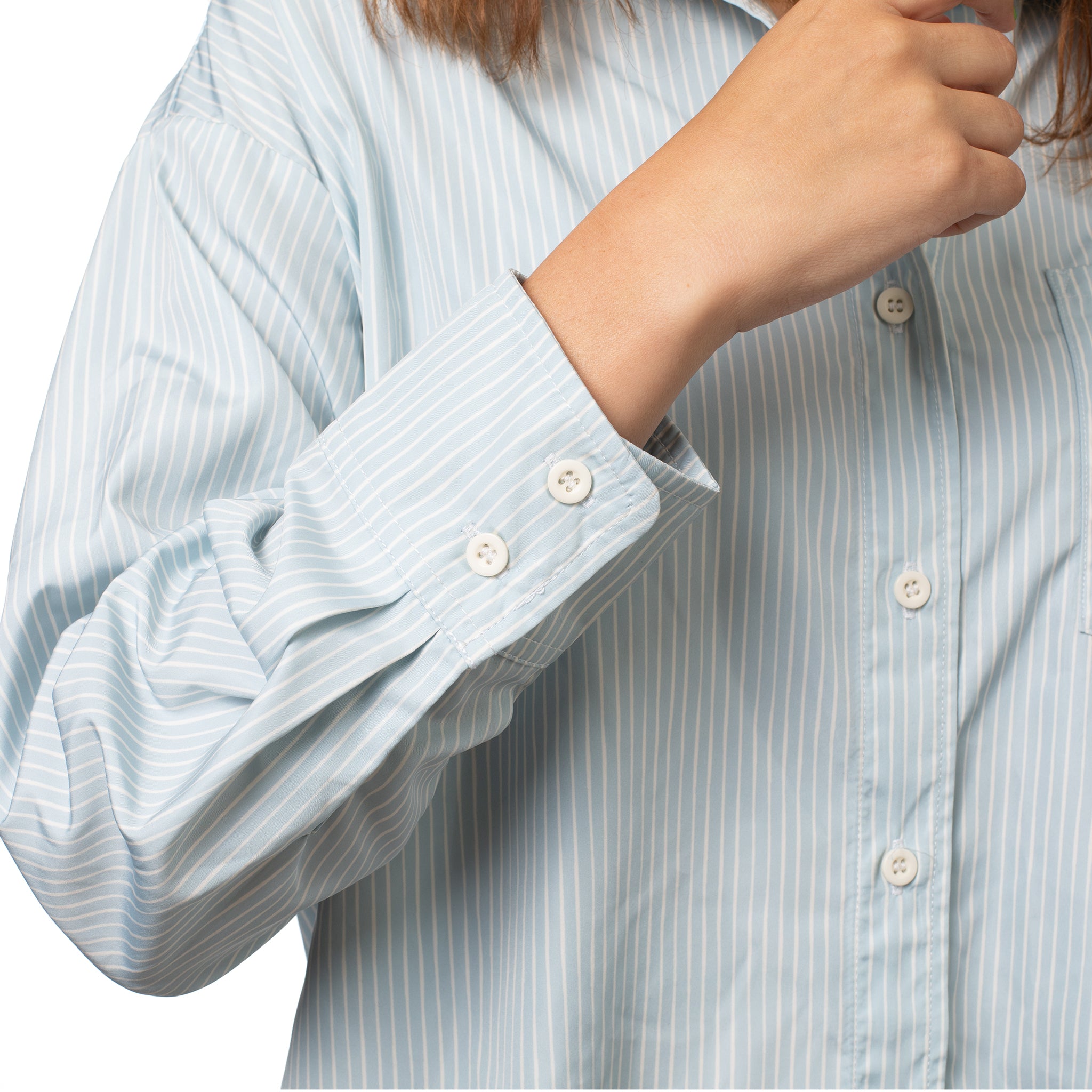 The Dorian smock features a convenient chest pocket secured with a button, perfect for keeping small essentials like combs or notes within easy reach. Stay organized while maintaining a sleek, professional look.