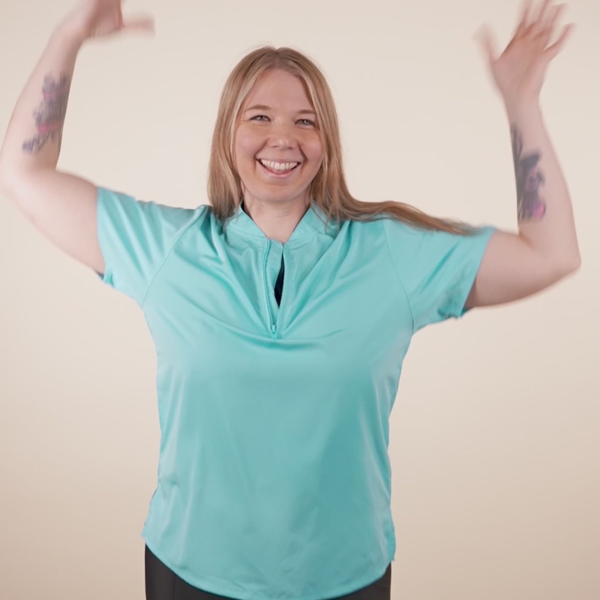 Short sleeves and side slits ensure ease of movement, while the sleek, practical design maintains a professional appearance. It’s the perfect balance between style and functionality.