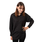 The Dorian smock by Retro Stylist Wear offers unmatched style and function. This trendy, oversized button-up smock features long sleeves and a high collar.