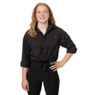 This one-of-a-kind smock combines functionality with flair. Wear it buttoned up for a formal, polished look, or roll up the sleeves and tie the front for a cute, casual appearance.