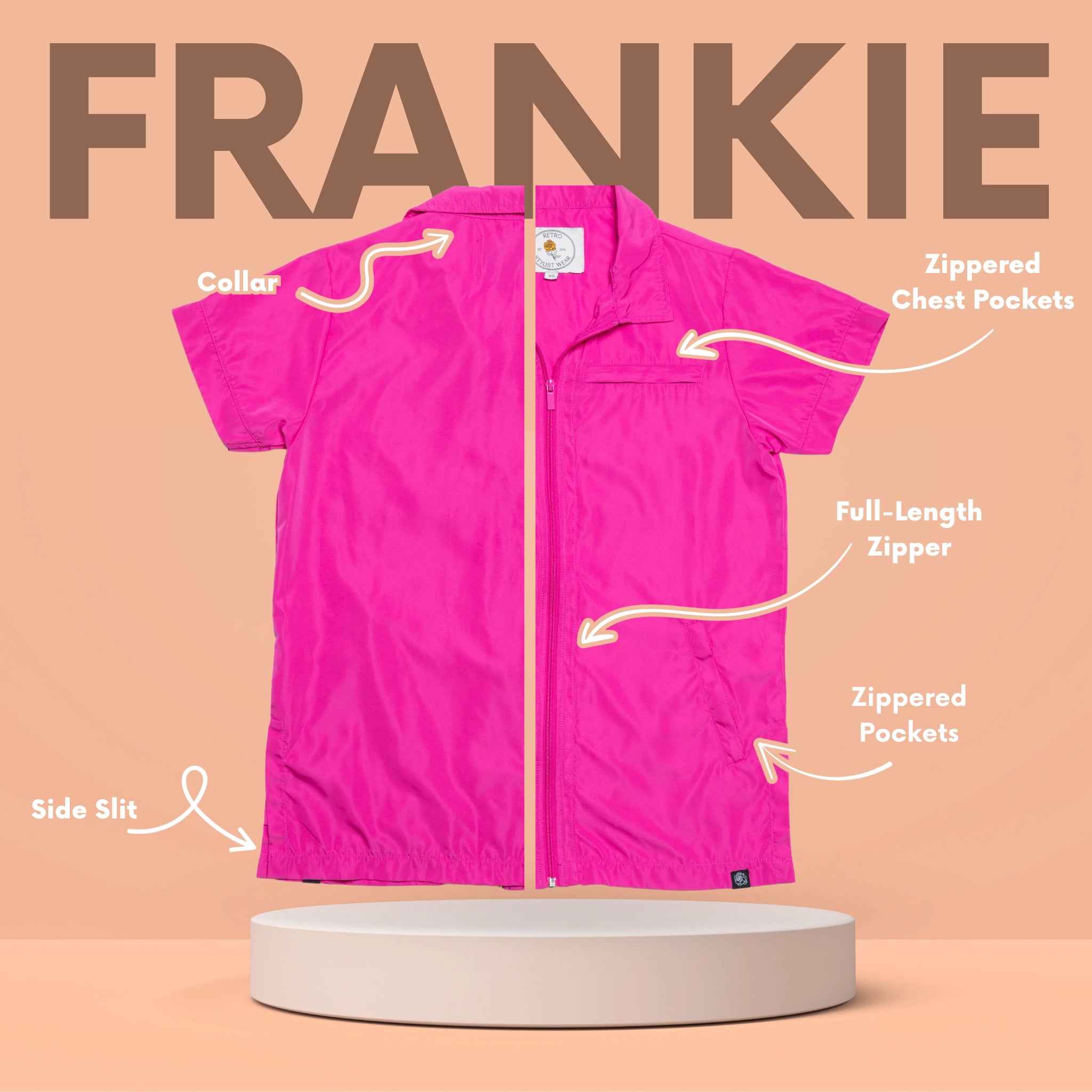 A relaxed, breathable fit gives you full freedom of movement—bend, stretch and reach without restriction. Whether you’re working a full day or squeezing in a few walk-ins, Frankie’s got you covered.