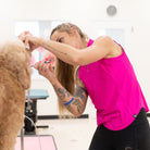 Step into the world of professional pet grooming with our innovative stretchy grooming top. Designed for both style and performance, this sleek garment blends athleticism with a feminine touch, ensuring you look and feel your best throughout the day.