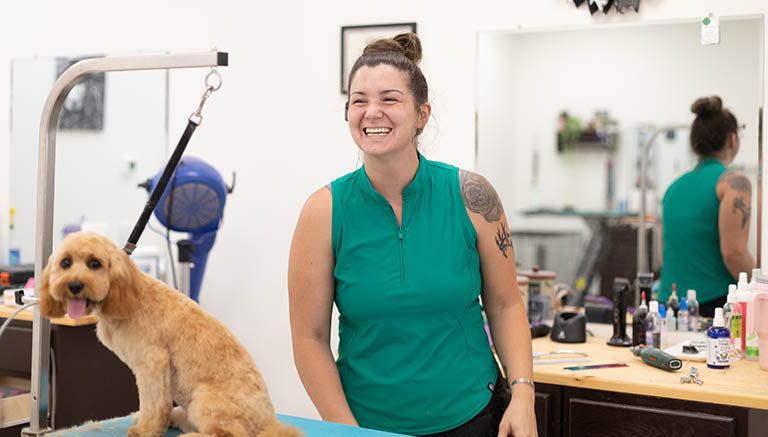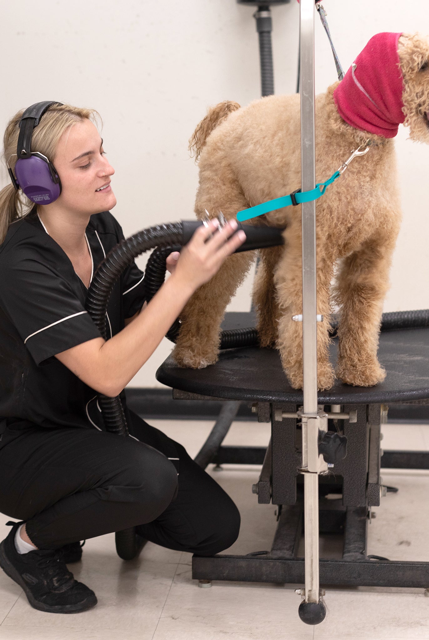 Crafted from a high-quality blend of polyester and spandex, this grooming top provides unrestricted movement. Bend, reach, and work with ease, knowing your clothing moves with you.