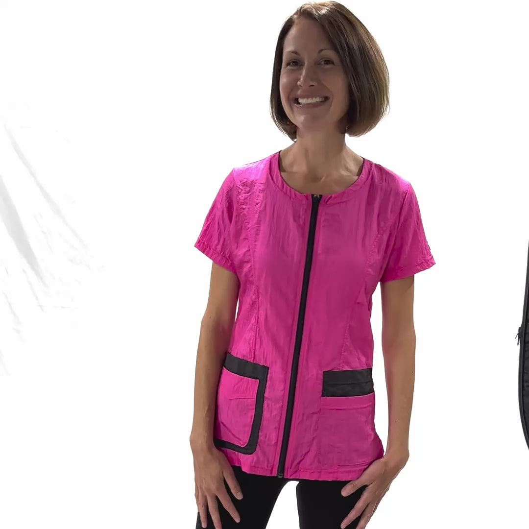 Outfit your entire salon with Jodi’s newest style. A size for everyone. This pet grooming top has double front pockets, comfortable short sleeves and side slits which comforts bending and sitting. Sizes range from XXS through 3X. Please check the size chart as Jodi’s various styles fit differently to accommodate various body shapes.