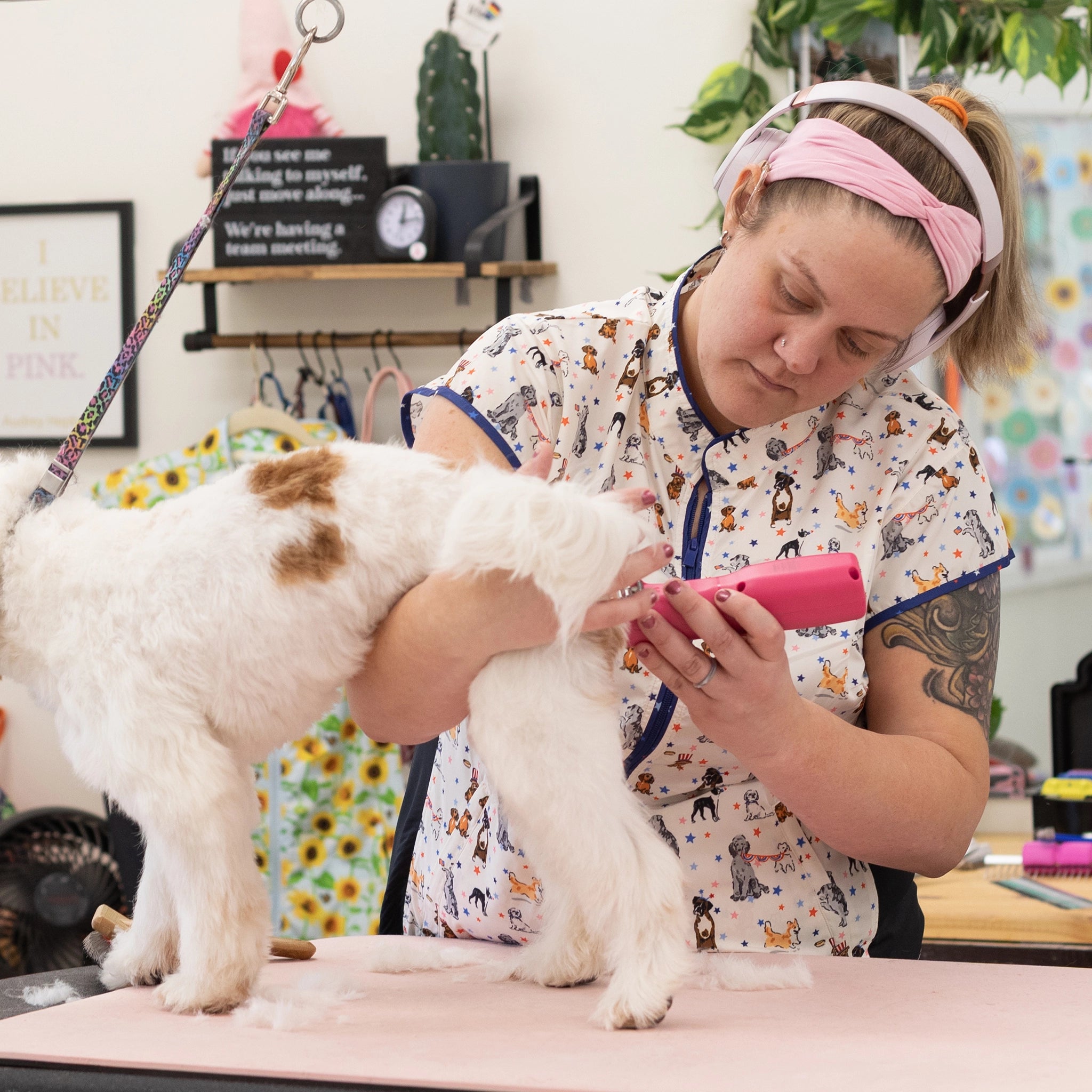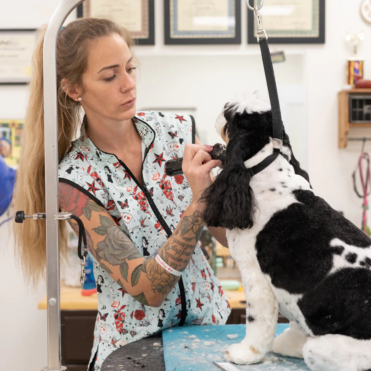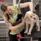 Ever notice most grooming smocks are meant to be hand-washed and air-dried? Not ours! Sophia is machine washable and dryer-safe for hassle-free cleaning.