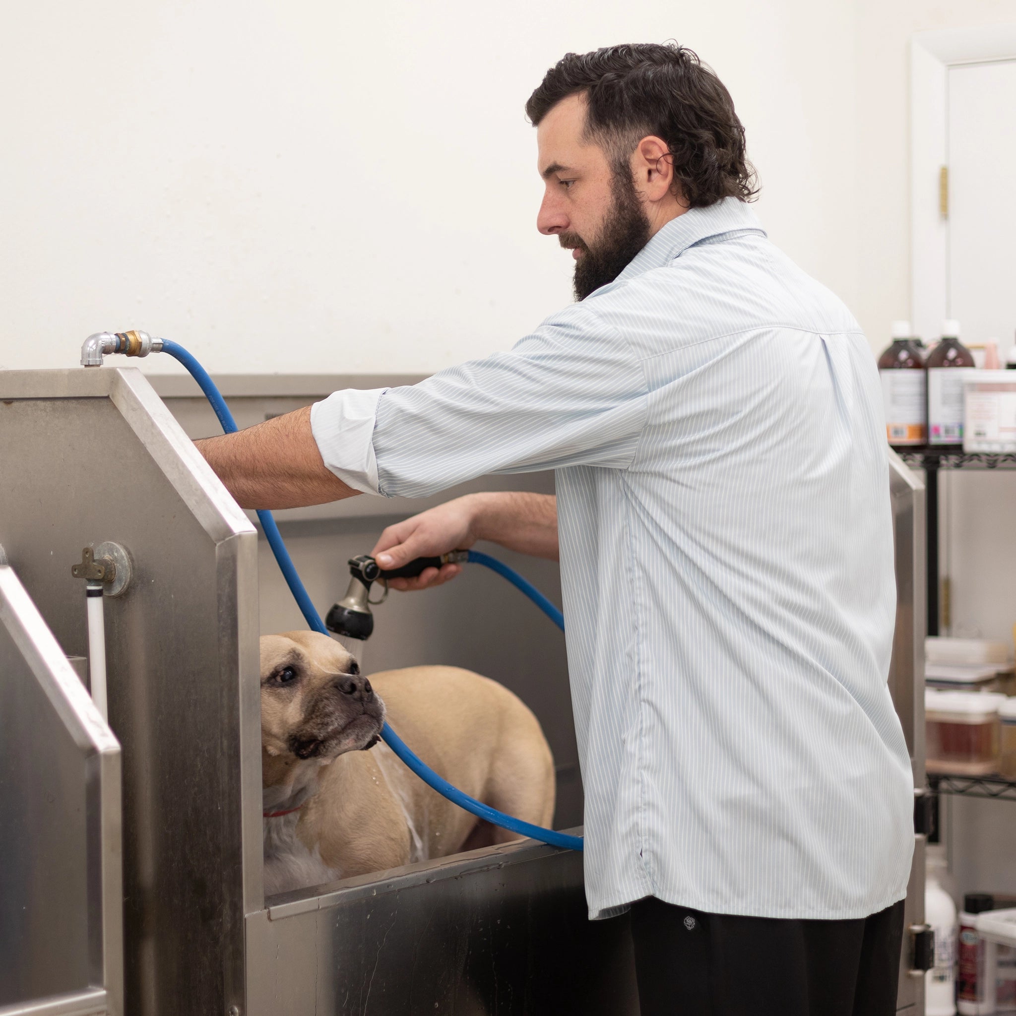 Designed for busy grooming environments, the Dorian smock’s water-resistant, quick-drying fabric keeps you comfortable even during bath-heavy days. Stay dry and focused, no matter the mess.