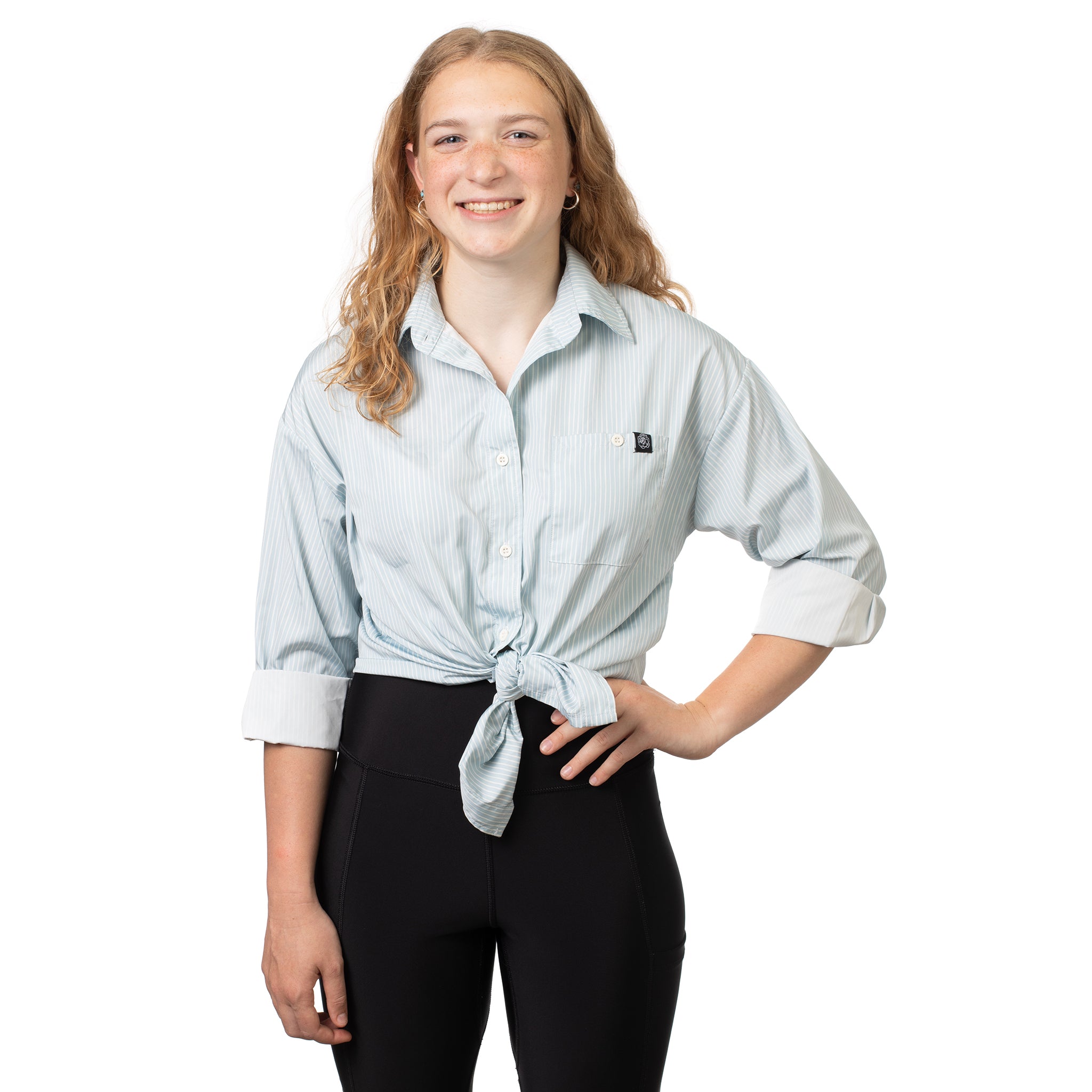 This one-of-a-kind smock combines functionality with flair. Wear it buttoned up for a formal, polished look, or roll up the sleeves and tie the front for a cute, casual appearance.