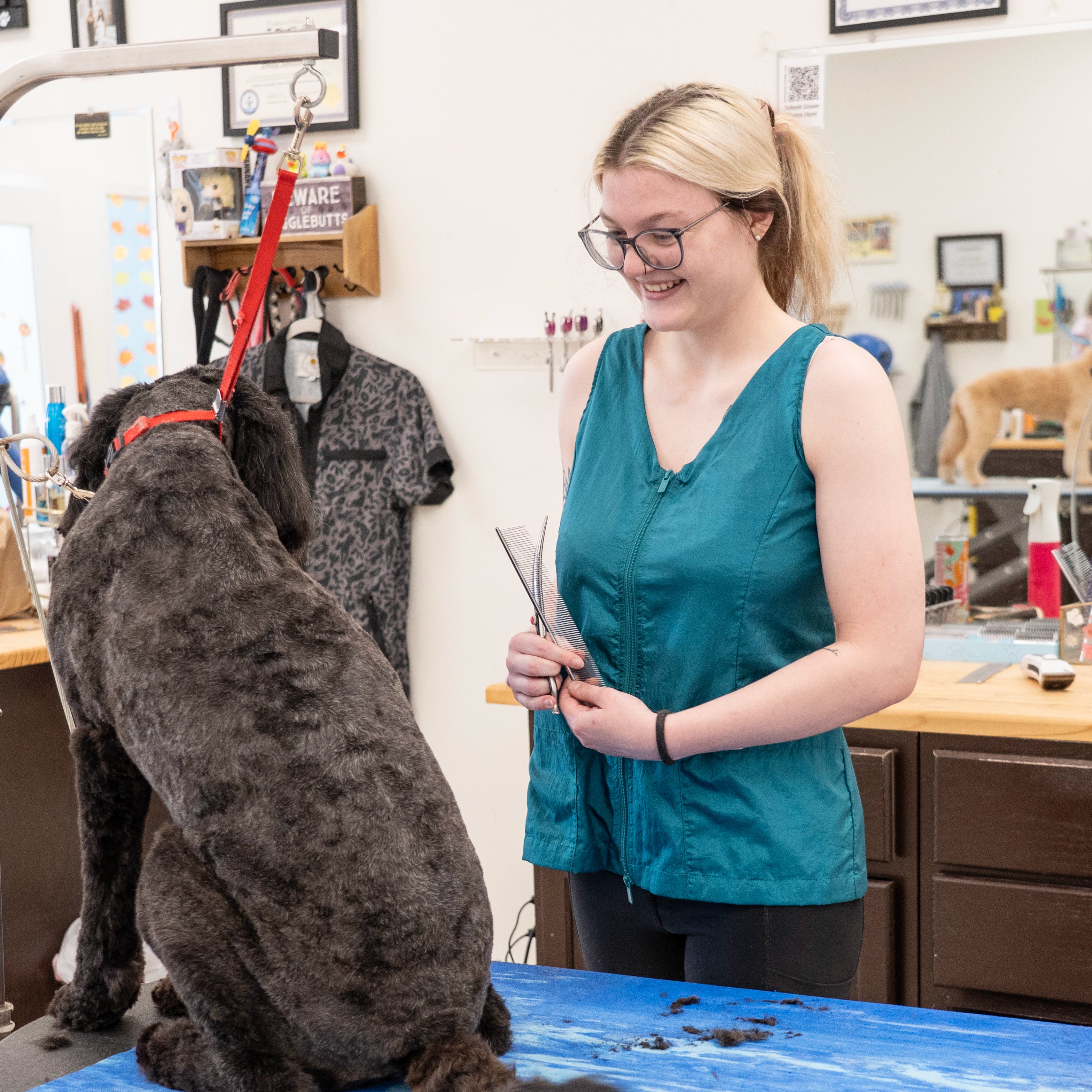 This lightweight, sleeveless grooming vest is designed for all-day comfort and effortless style. The flattering V-neck, full-length zipper, and tailored silhouette create a polished, slimming fit that moves with you, never against you. Whether you’re grooming, teaching, or running errands between clients, this vest keeps you looking sharp and feeling cool.
