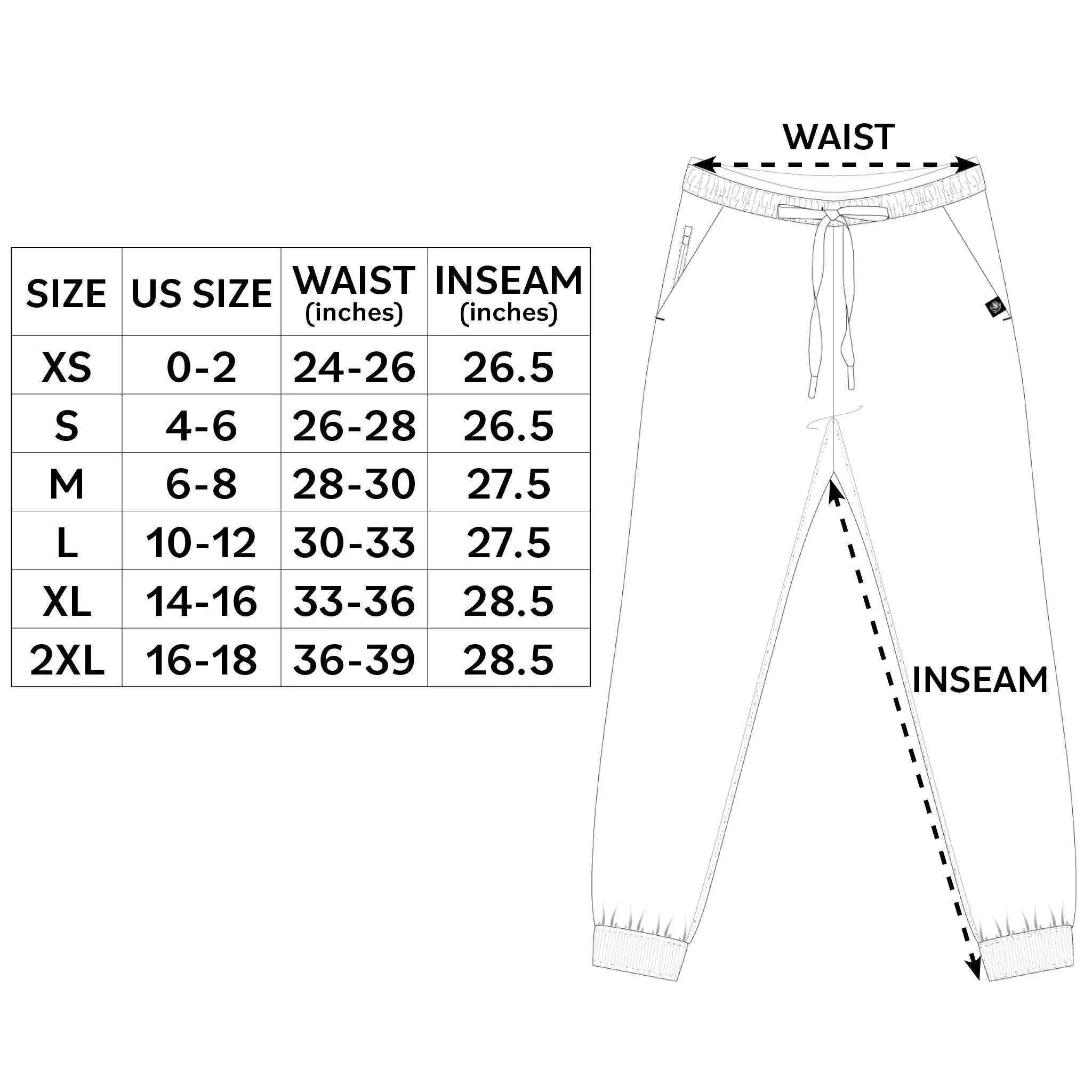 Our jogger grooming pants run true to size. Please refer to our size chart for waist and inseam measurements. If you feel you are in between sizes, we suggest sizing up.