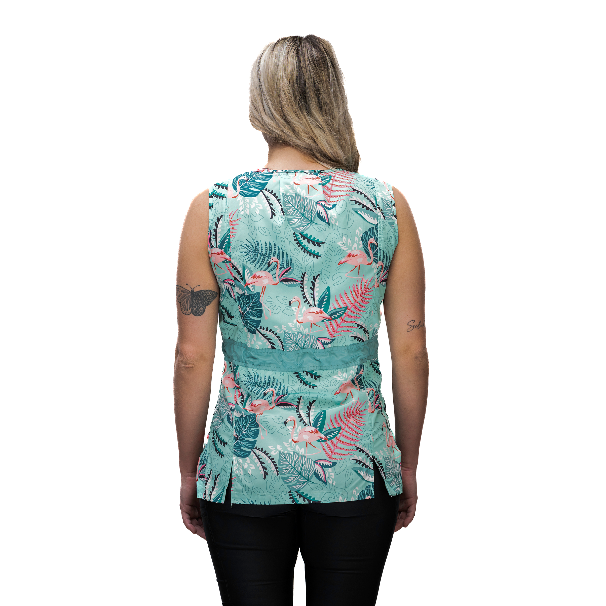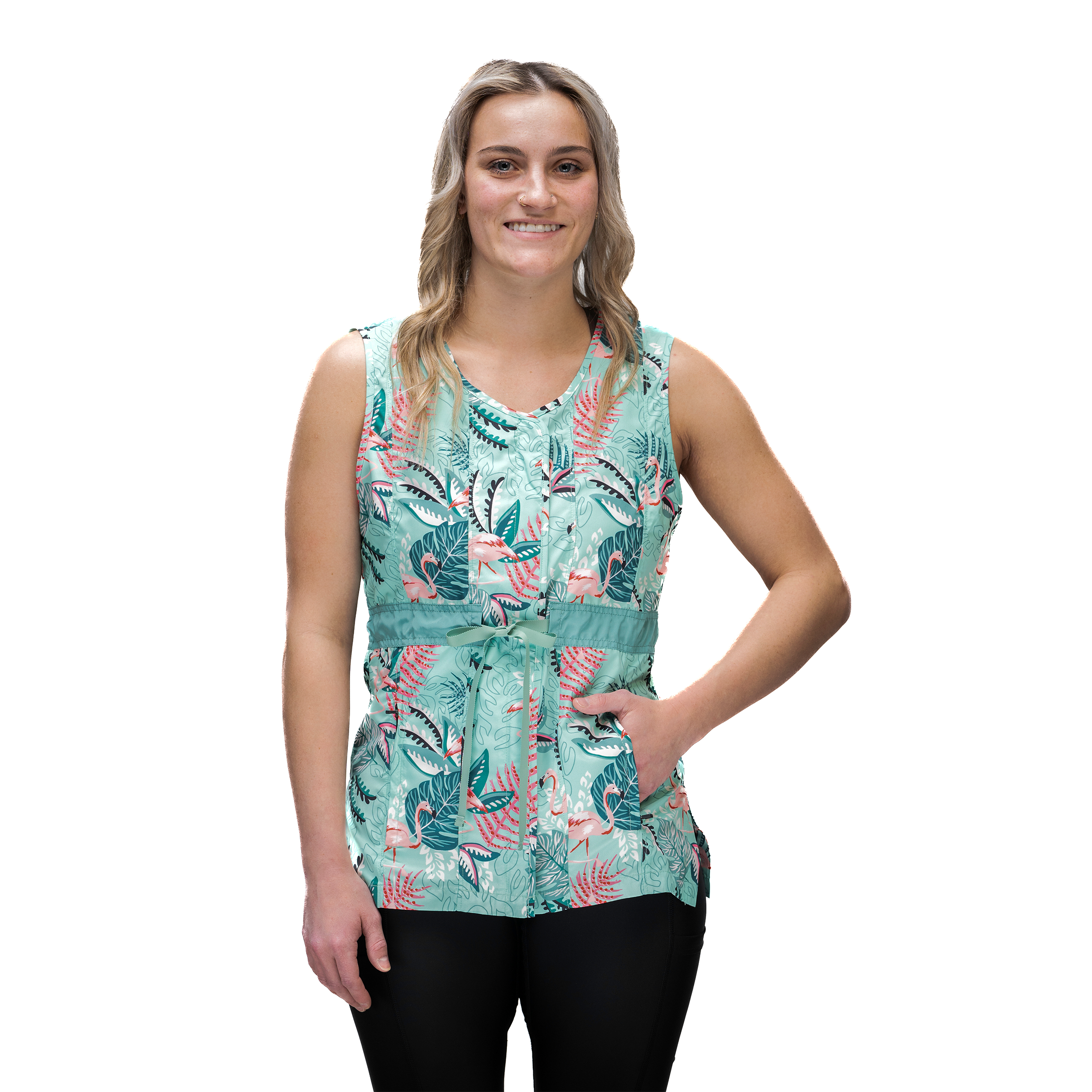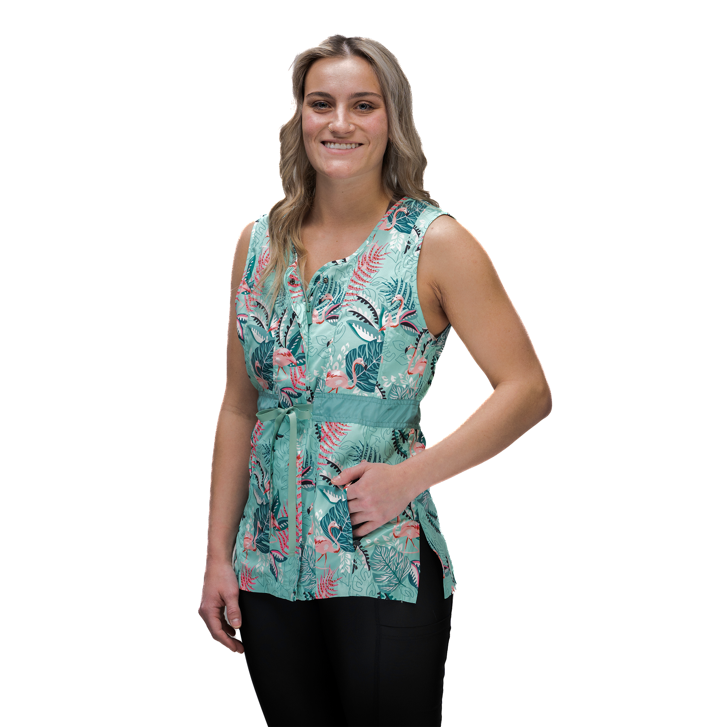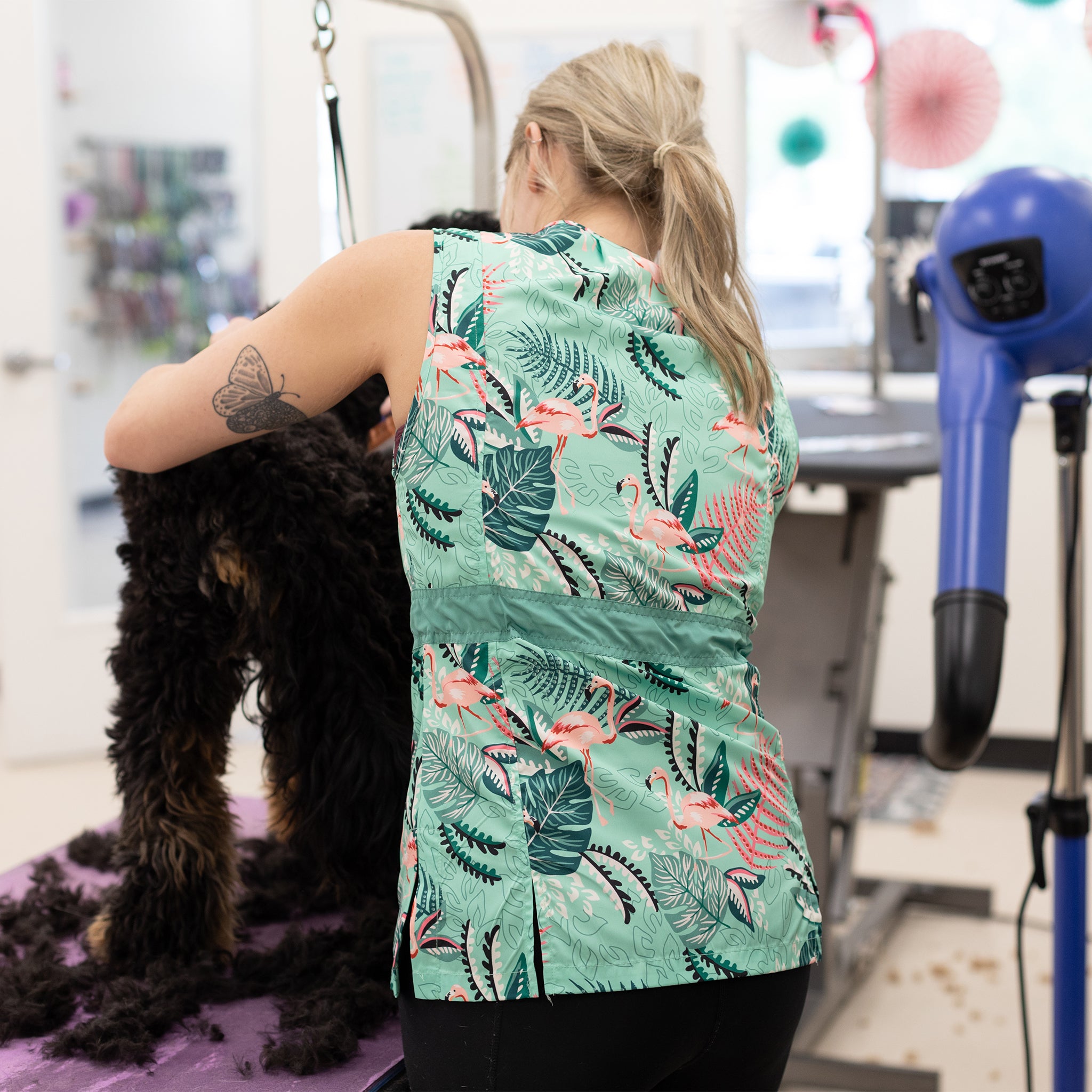 The Charlotte sleeveless smock is designed to keep groomers comfortable and stylish throughout the workday. With its water-resistant fabric, hair-repelling properties and flattering cinch tie waist, this smock is both functional and fashionable.