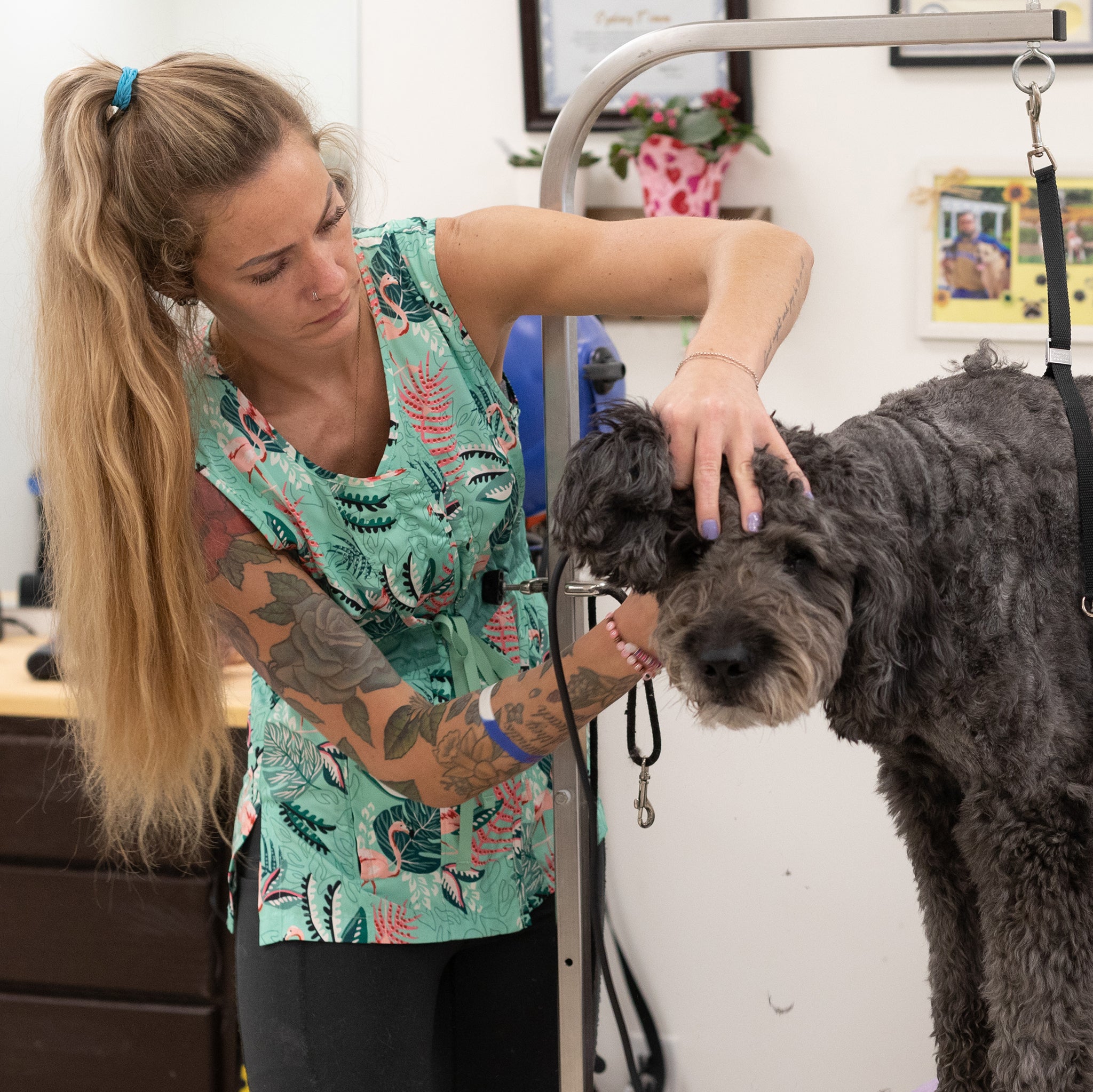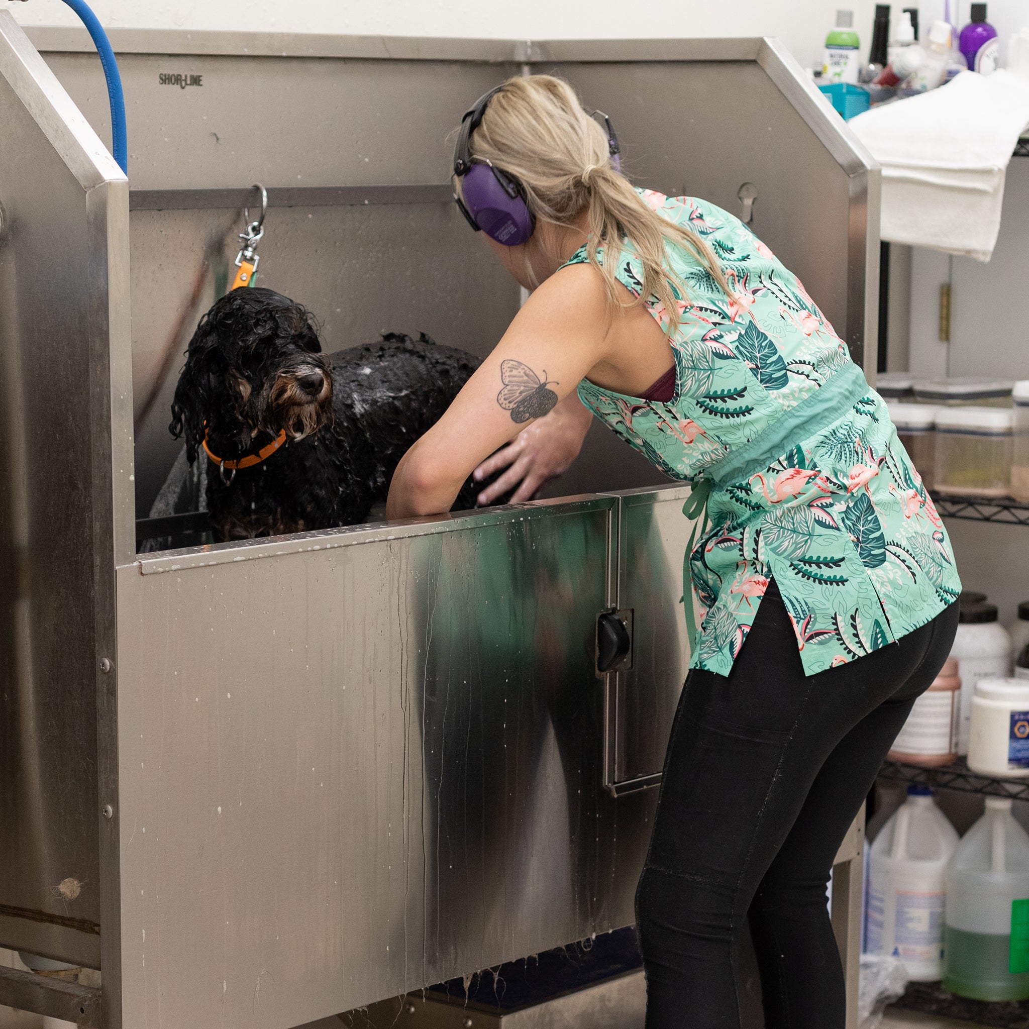 Made with quick-drying, water-resistant fabric, this smock ensures you stay dry and comfortable during bath-heavy grooming sessions. The specialized material also repels hair and fur, keeping your appearance neat and professional.