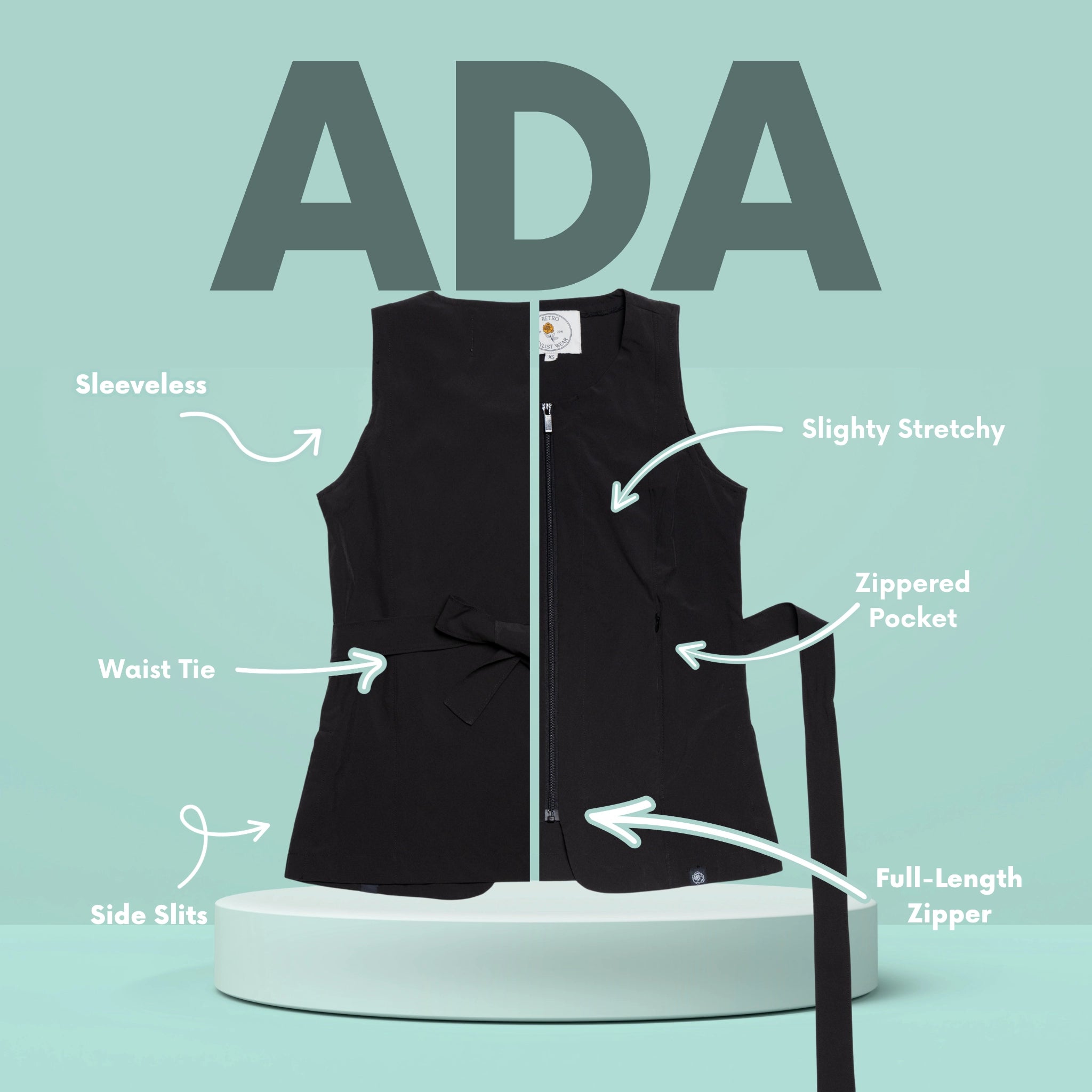 The Ada delivers a refined, feminine aesthetic that feels confident and professional from open to close. It’s a sleeveless smock designed to work hard while looking effortlessly put together.