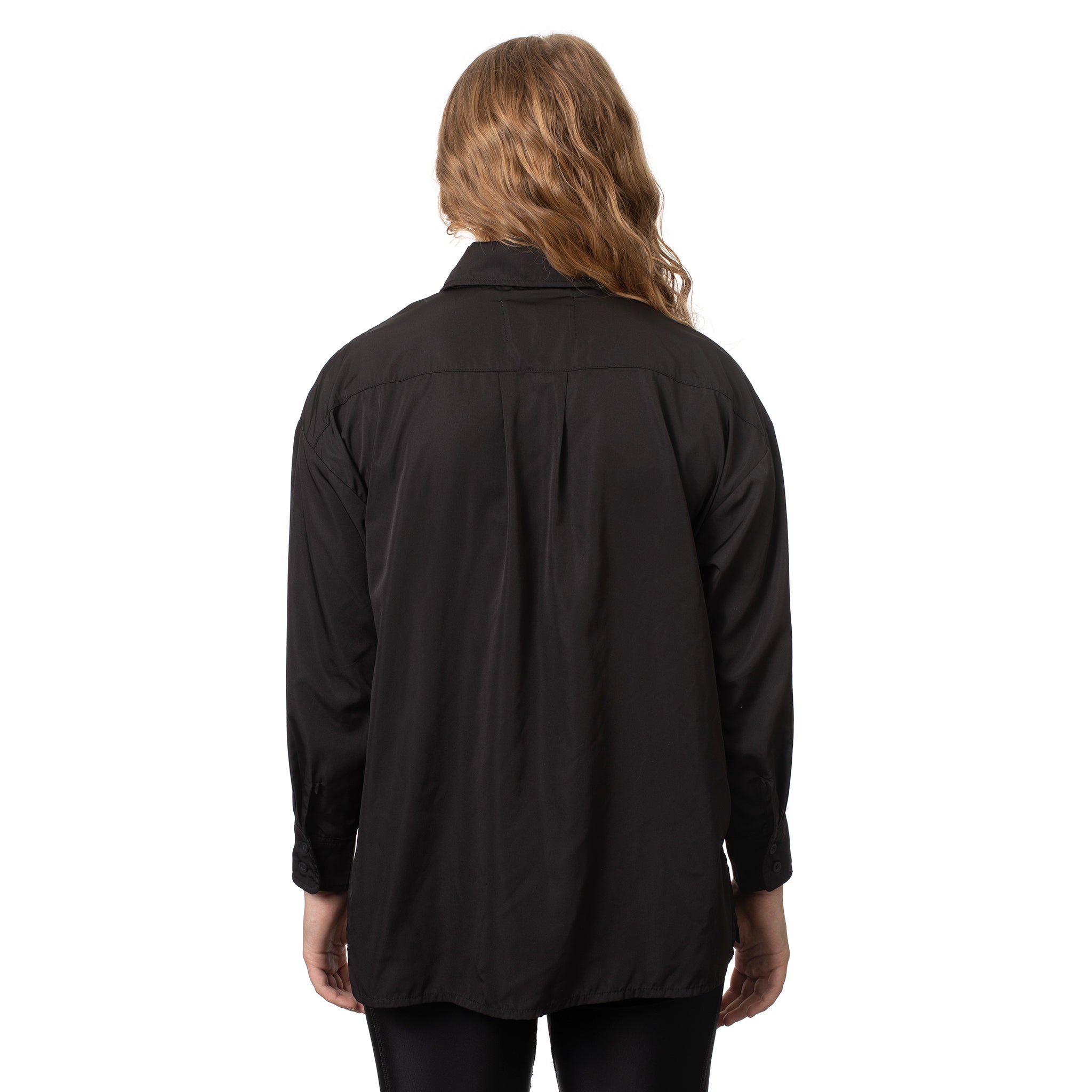 The Dorian smock by Retro Stylist Wear offers unmatched style and function. This trendy, oversized button-up smock features long sleeves and a high collar.