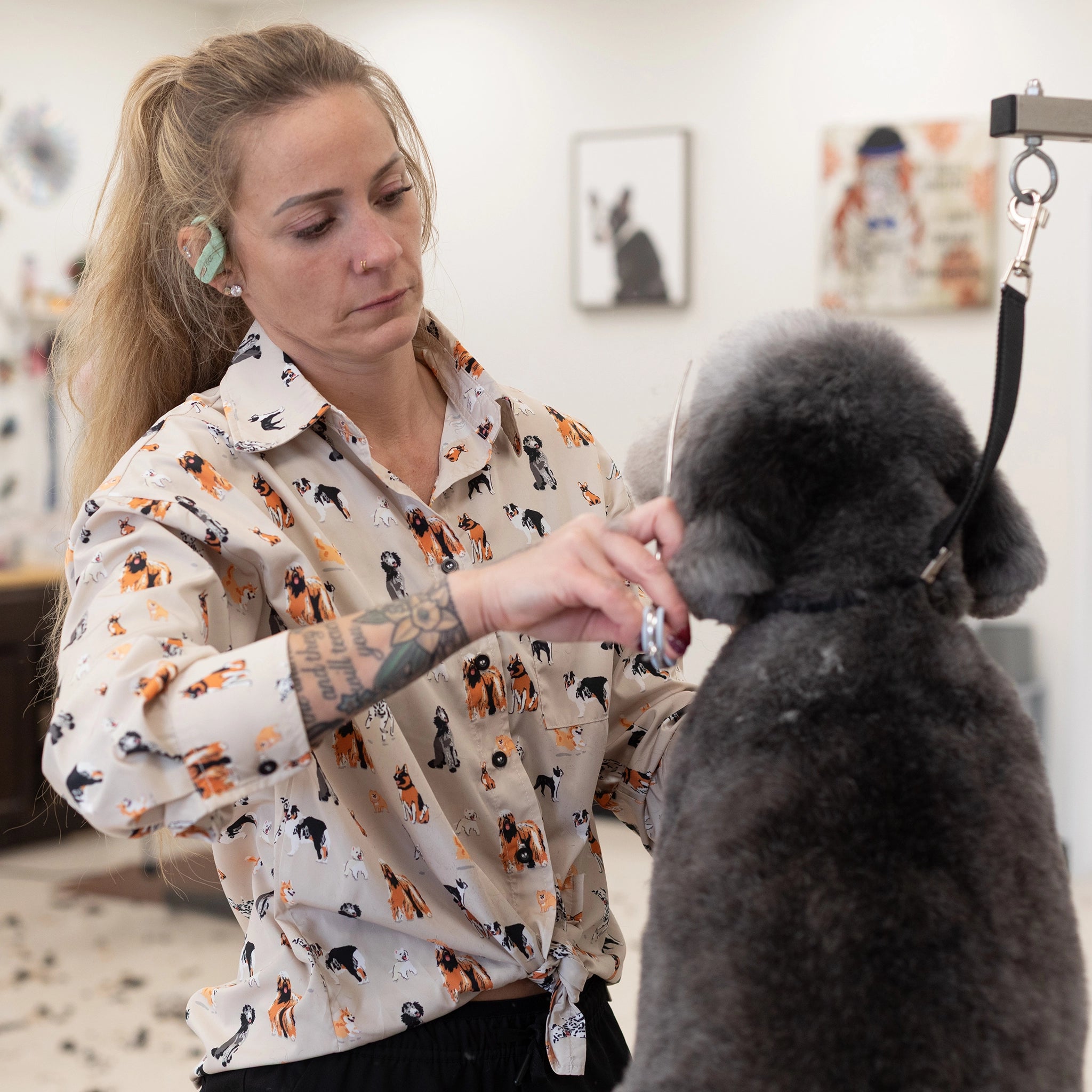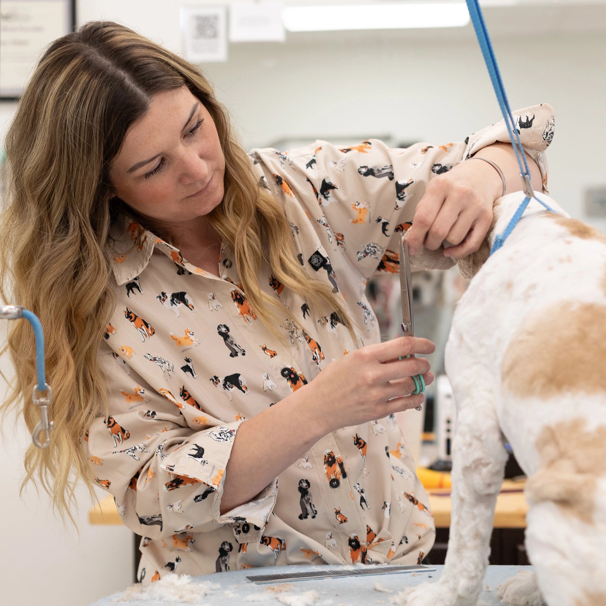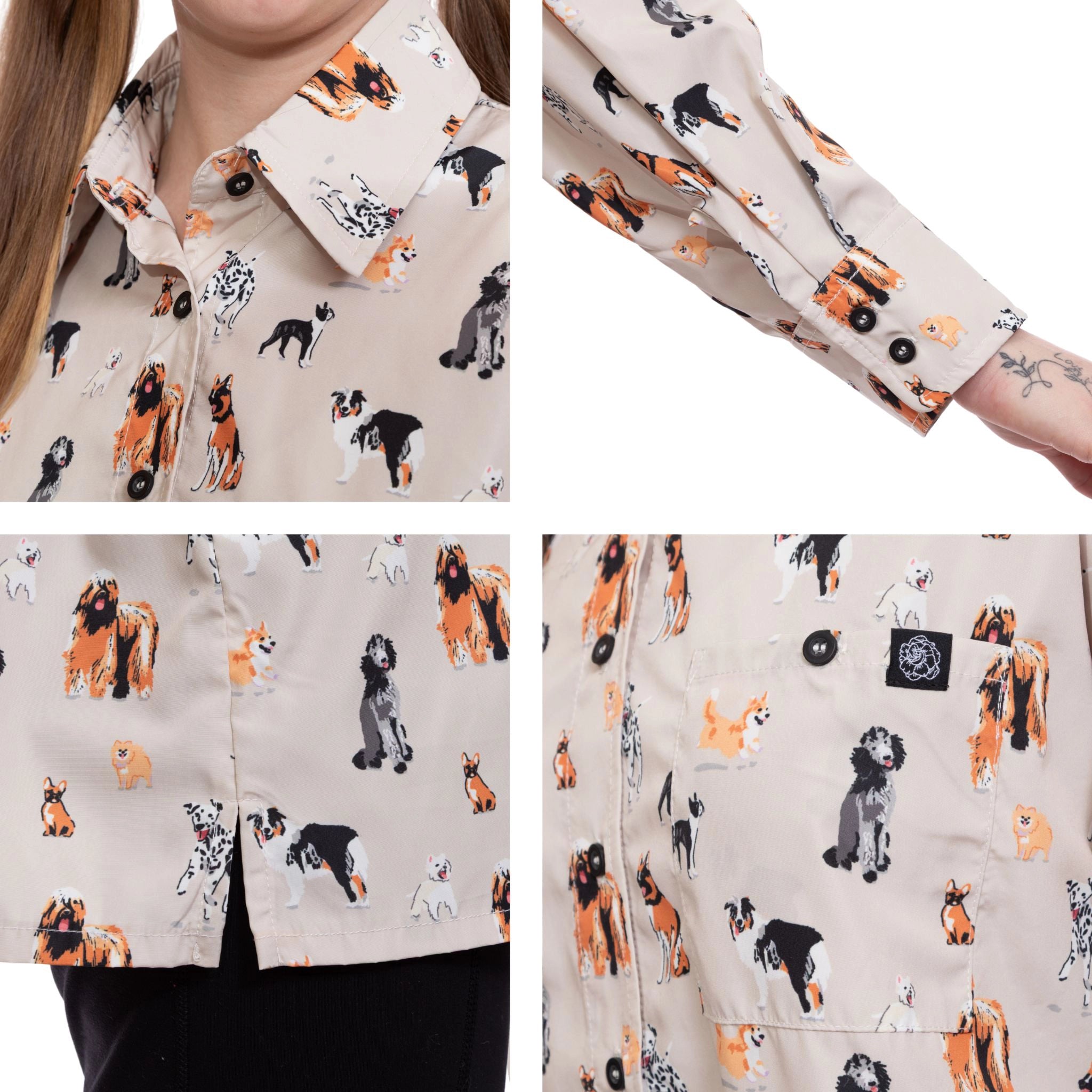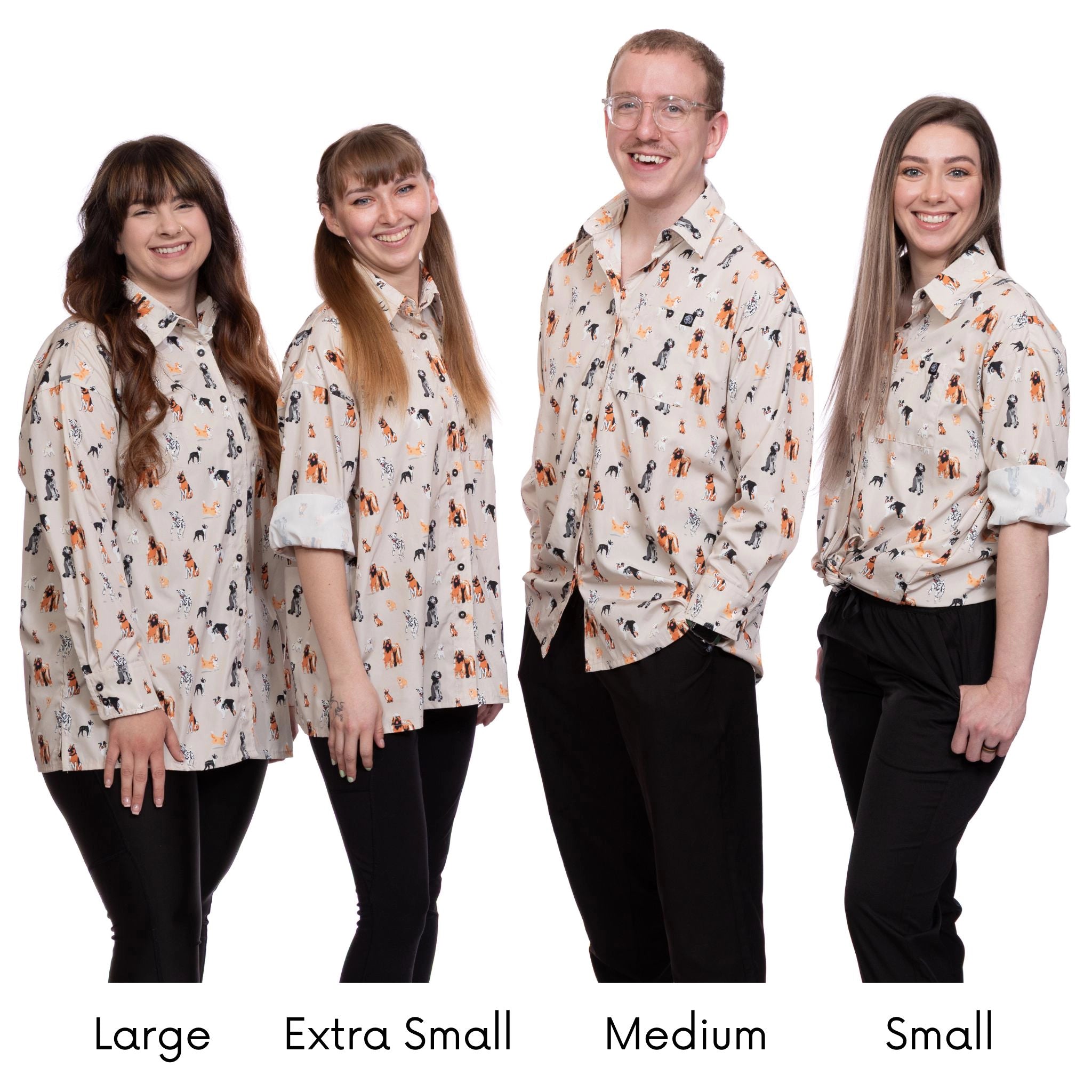 Tailored to fit both male and female groomers, this unisex smock ranges from extra small to plus sizes, offering a comfortable and stylish option for everyone.
