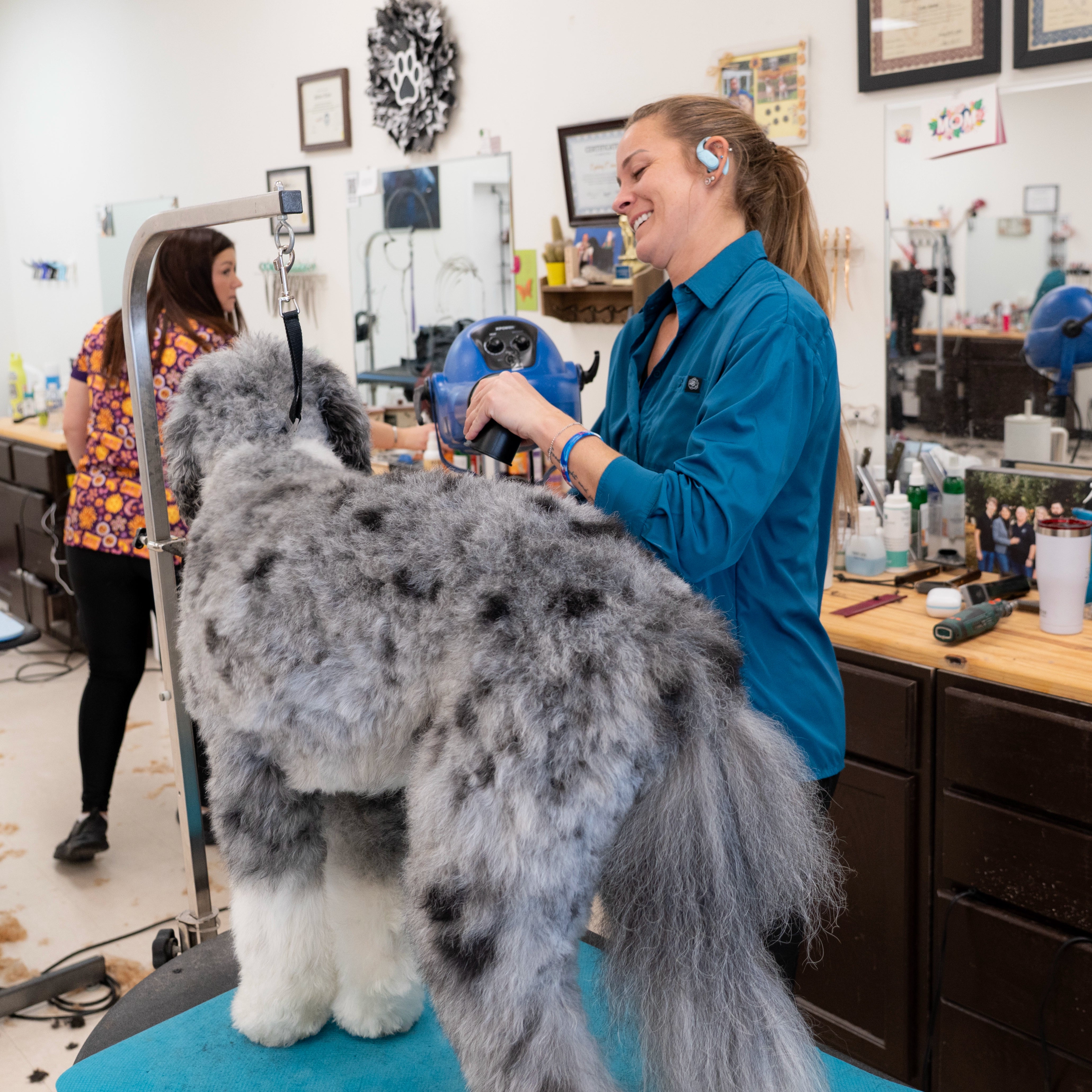 Designed for busy grooming environments, the Dorian smock’s water-resistant, quick-drying fabric keeps you comfortable even during bath-heavy days. Stay dry and focused, no matter the mess.