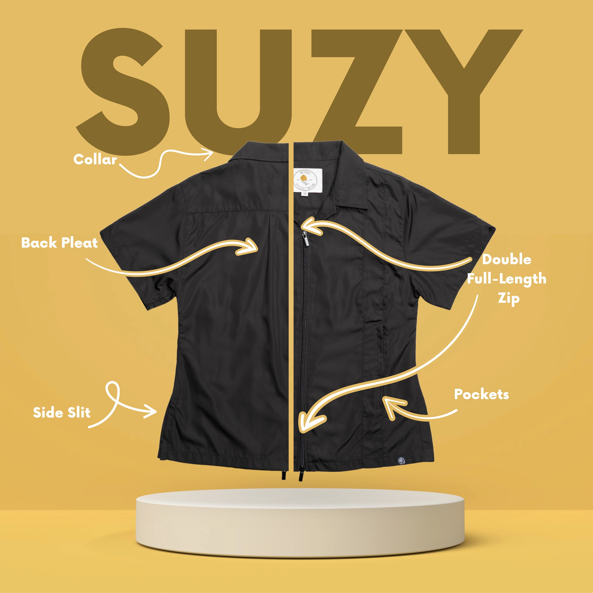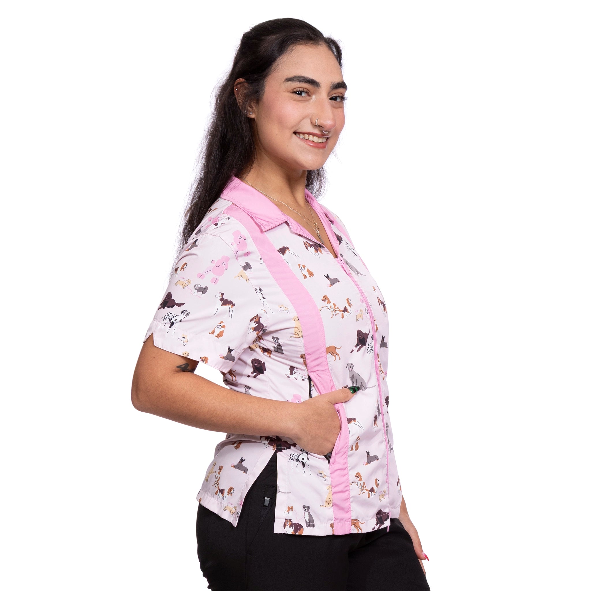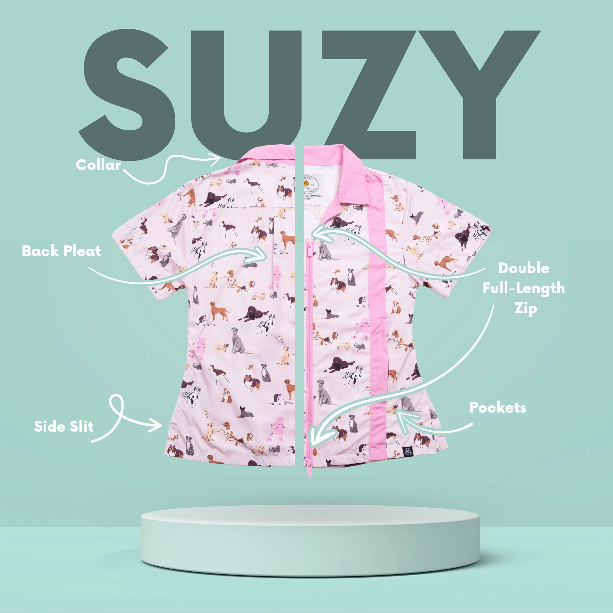 Keep comfortable and dry, even during messy grooming sessions, with our water-resistant and quick-drying Suzy smock. Designed to withstand splashes while maintaining a professional appearance.