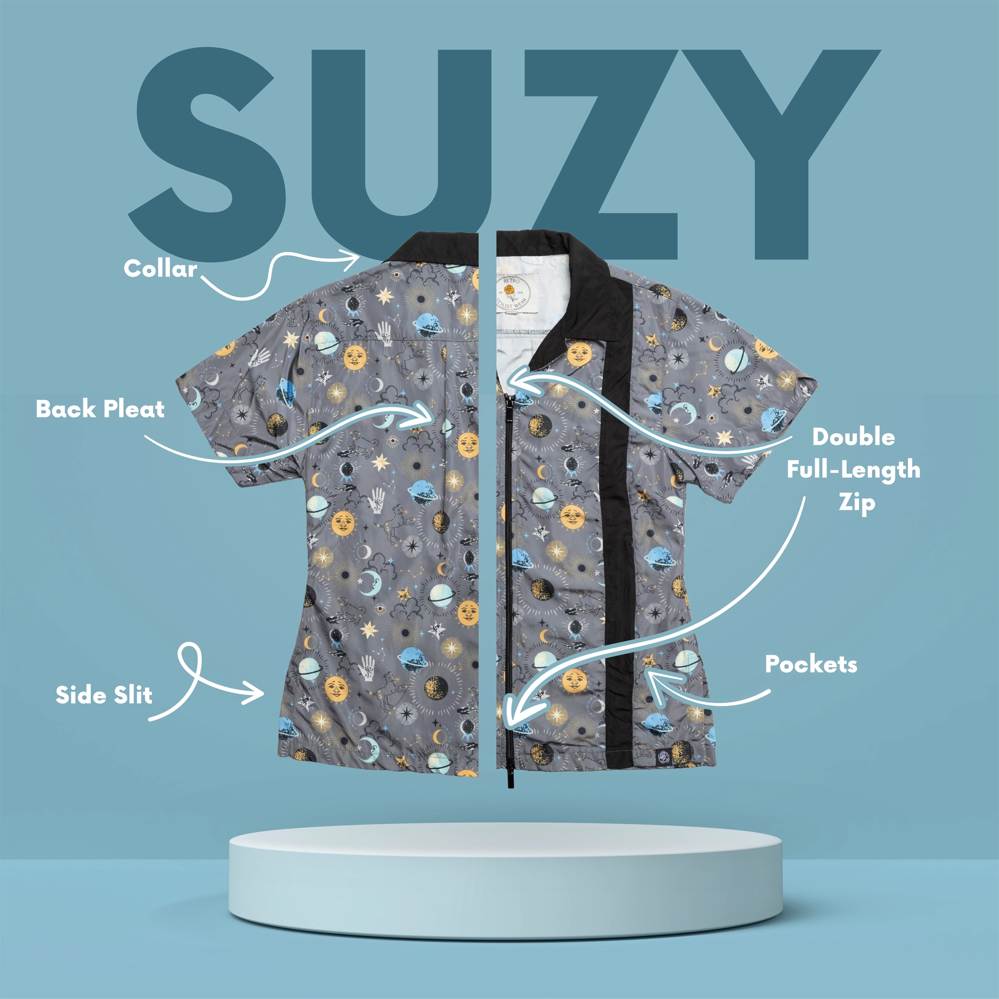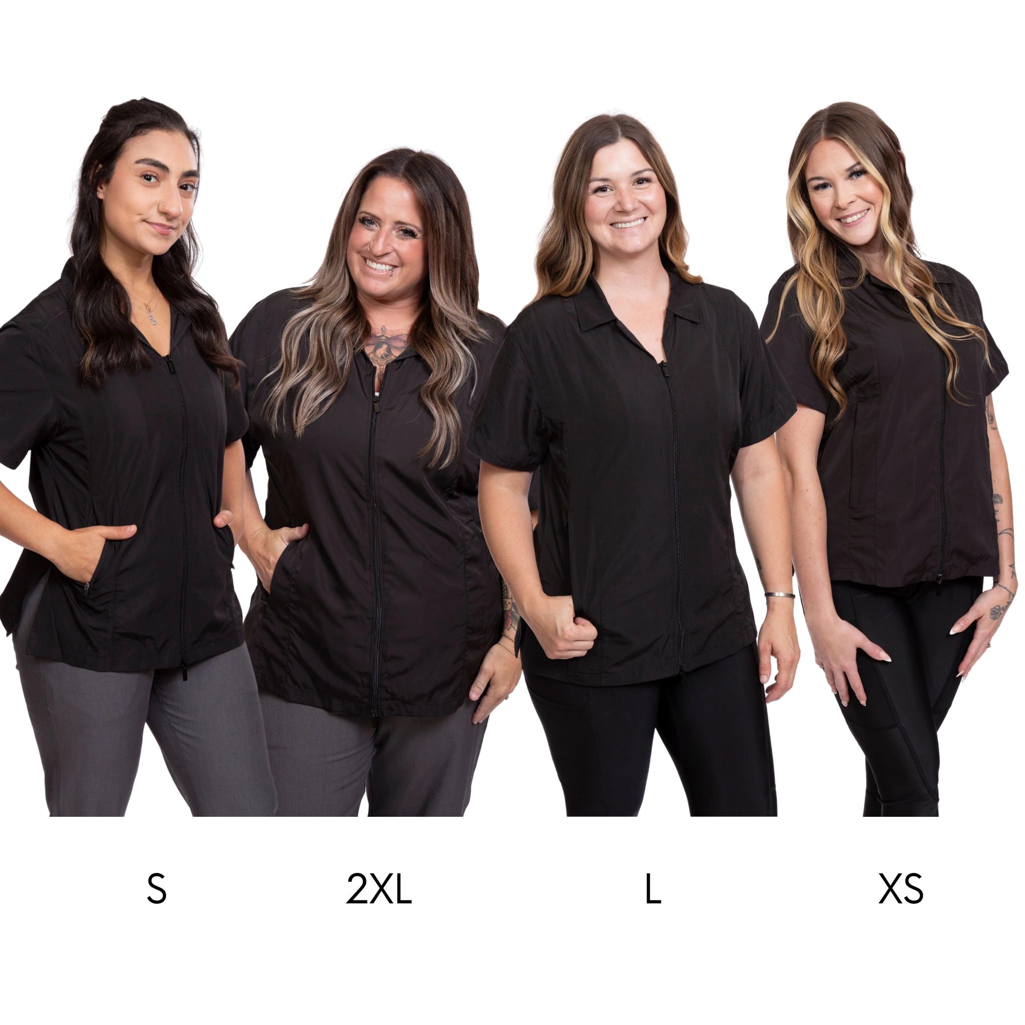 Featuring a relaxed, flattering fit with a chic collar, this smock combines comfort with style. The sleek double zipper not only keeps stray hairs out but also adds enhanced flexibility at the waist.