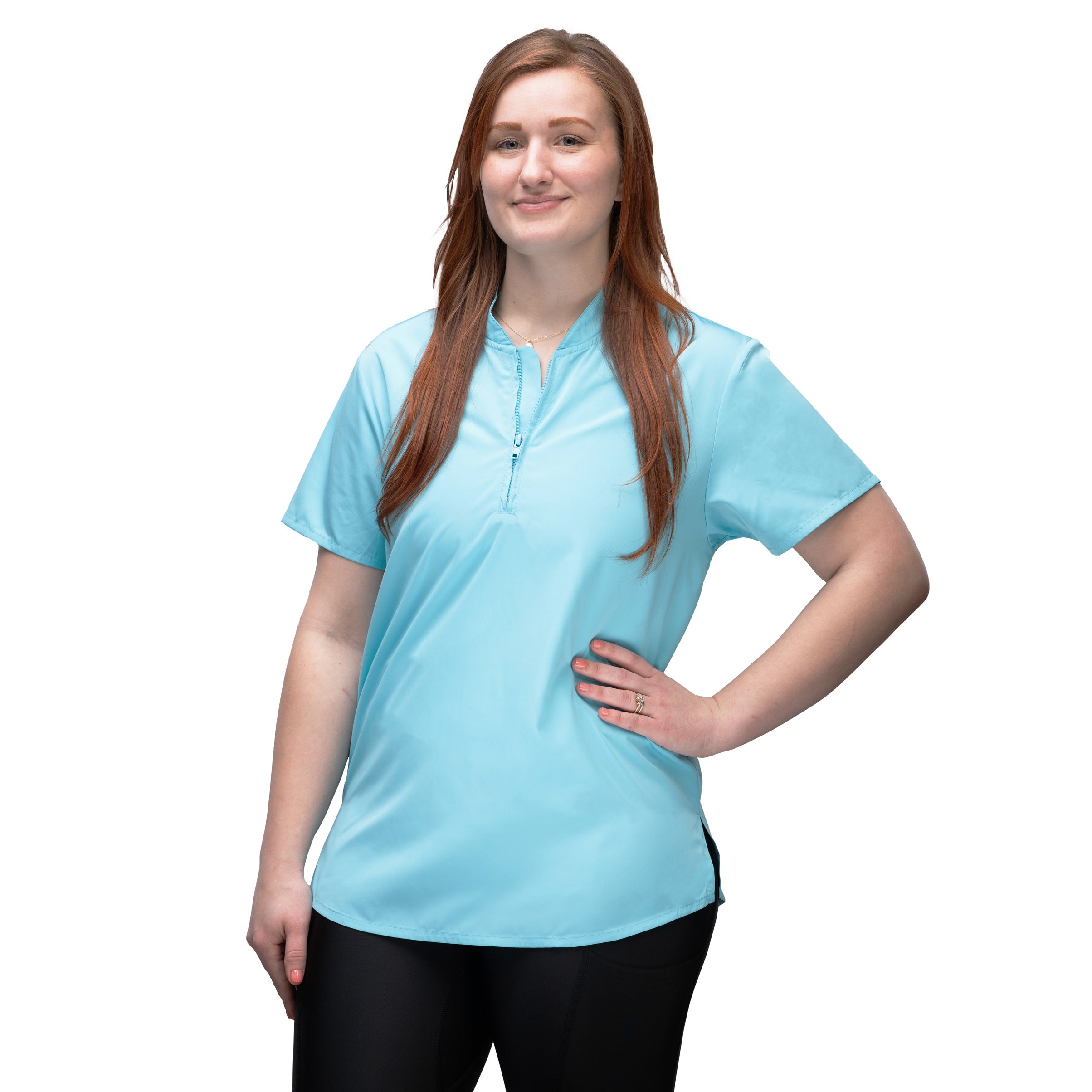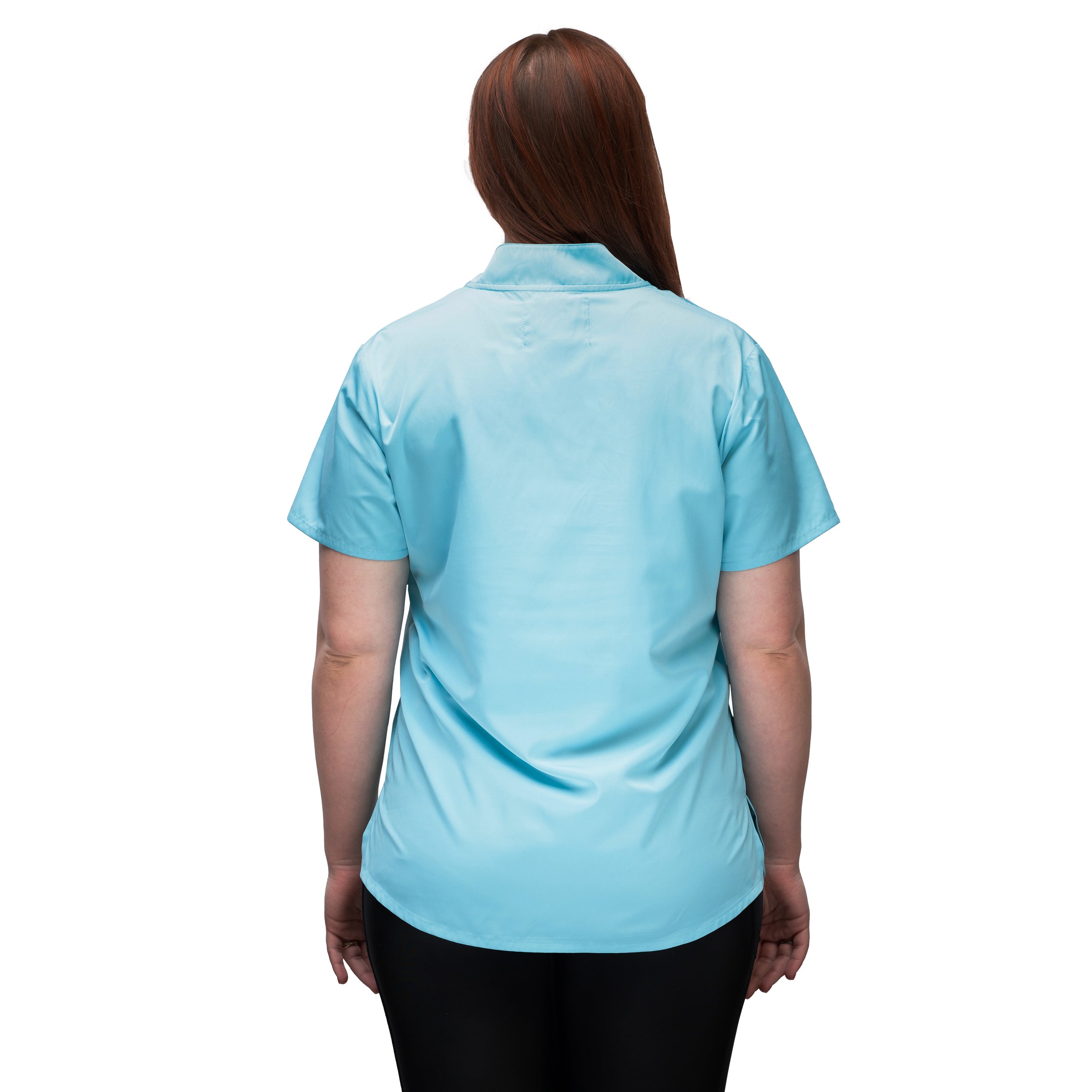 Short sleeves and side slits ensure ease of movement, while the sleek, practical design maintains a professional appearance. It’s the perfect balance between style and functionality.
