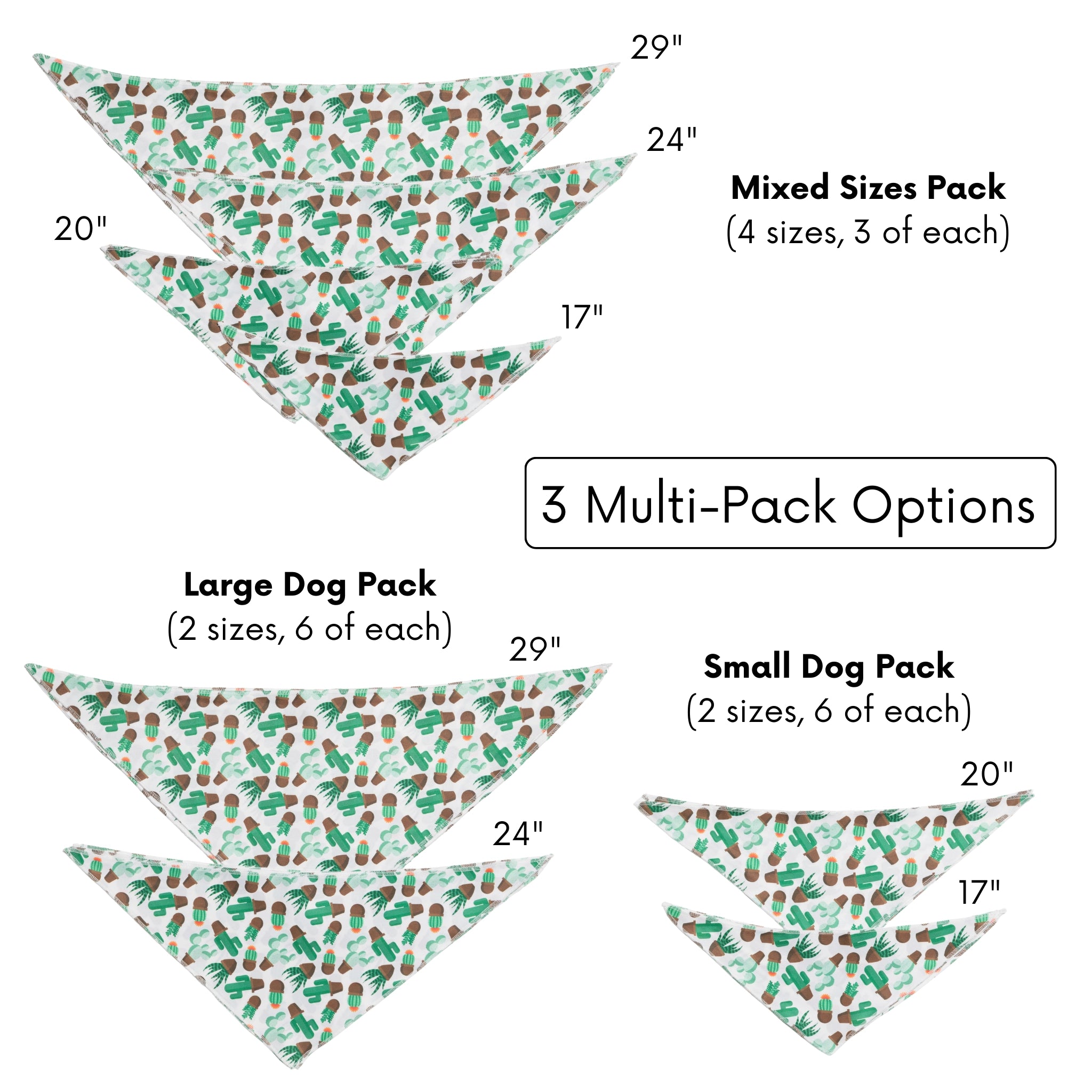 Each pack includes 12 bandanas, pre-cut in sizes 17", 20", 24", and 29". Finished hems help prevent fraying while maintaining a neat, professional look over time.