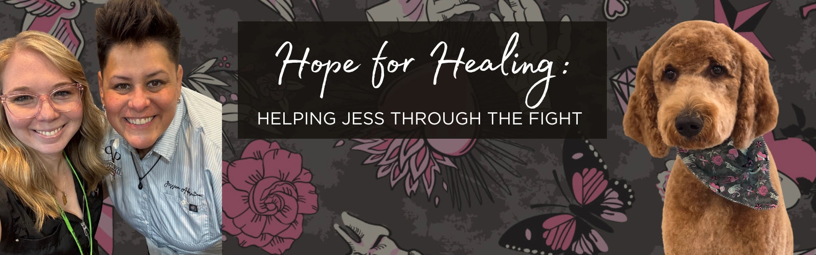 Retro Stylist Wear's Elli Bultemeier sat down with Jess Adorno, a beloved member of the grooming community, to talk about how they met, their physical struggles, and the new Jess-inspired Hope for Healing bandana.