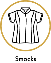 - Joan and Jacqueline: Crafted from athletic material with added stretch, these smocks are true to size.